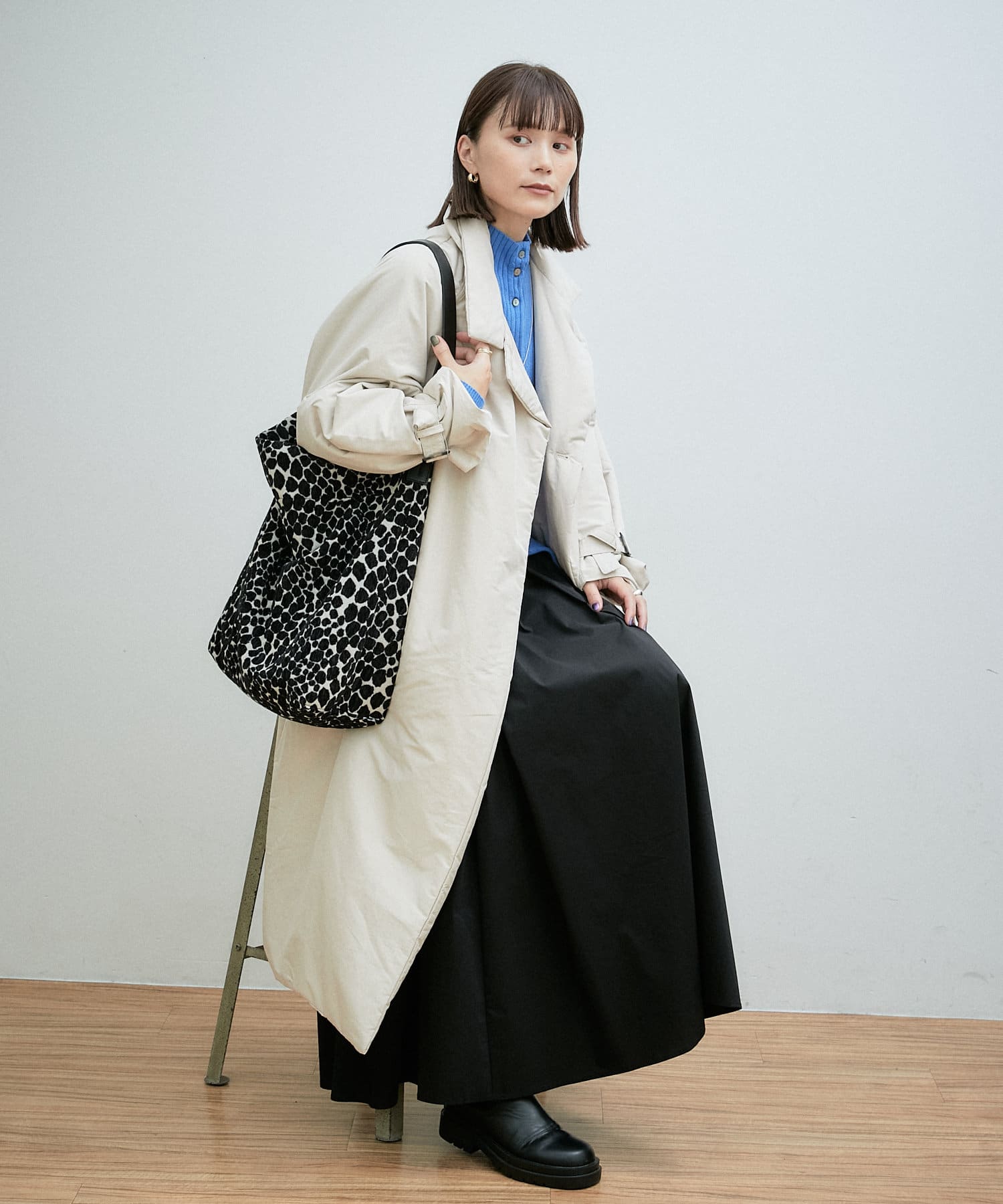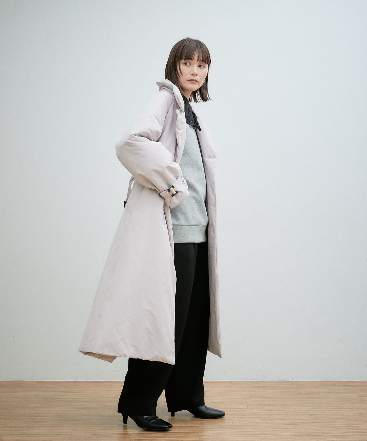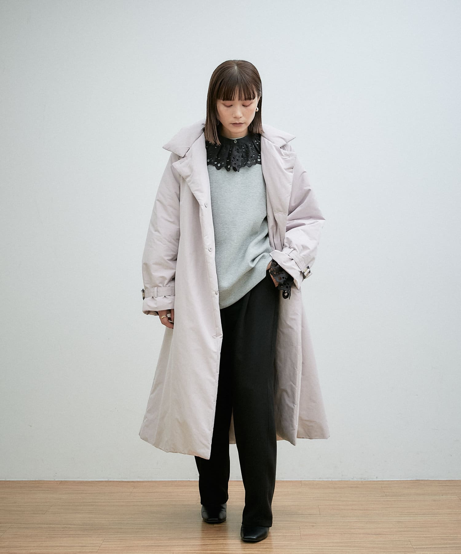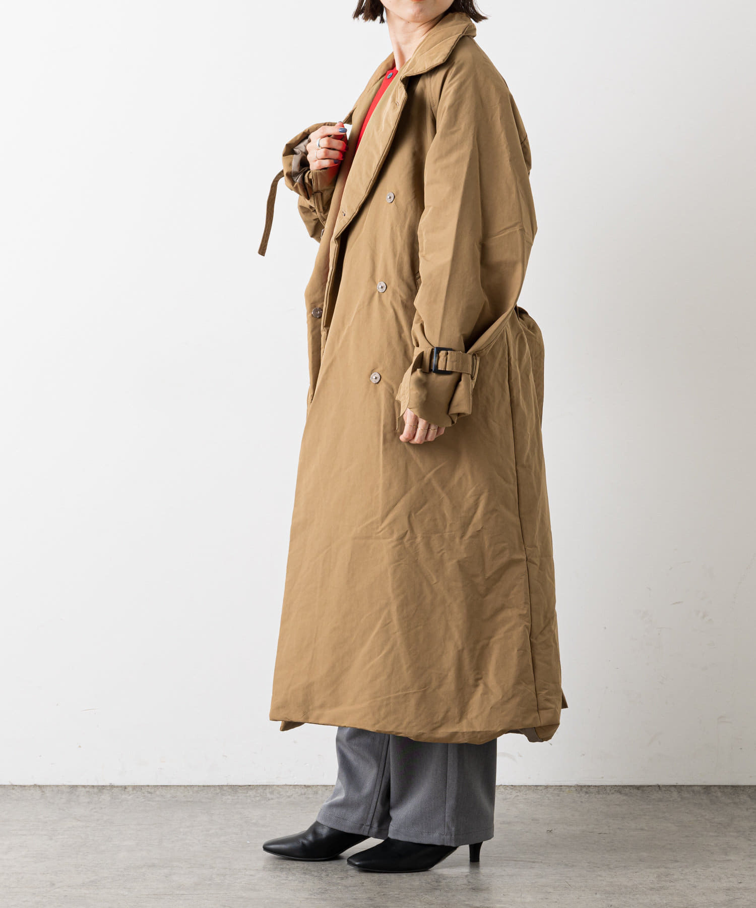 ・中綿を使用しているので保温性に優れ、しっかり暖かく冬まで着られるトレンチコートです。