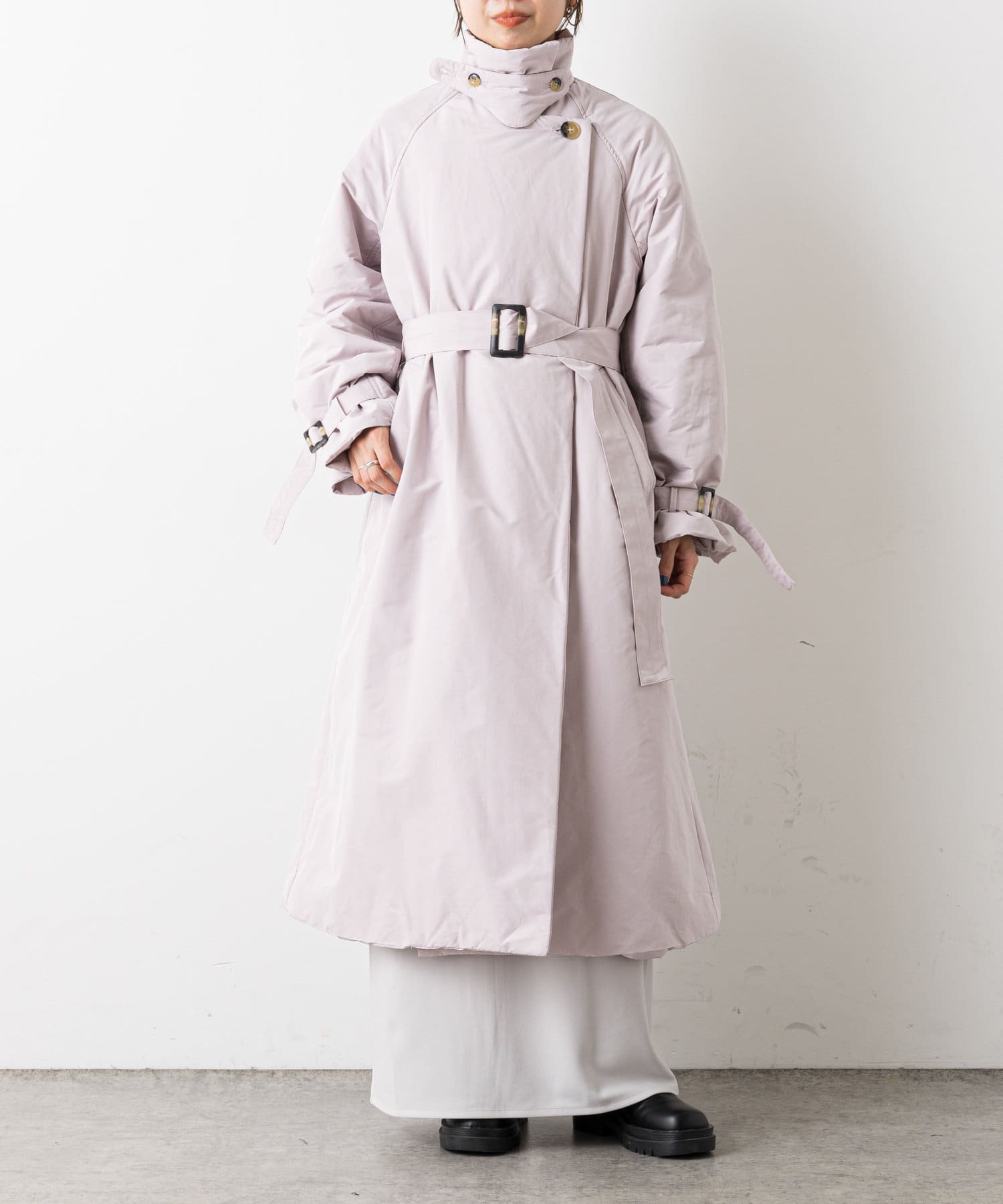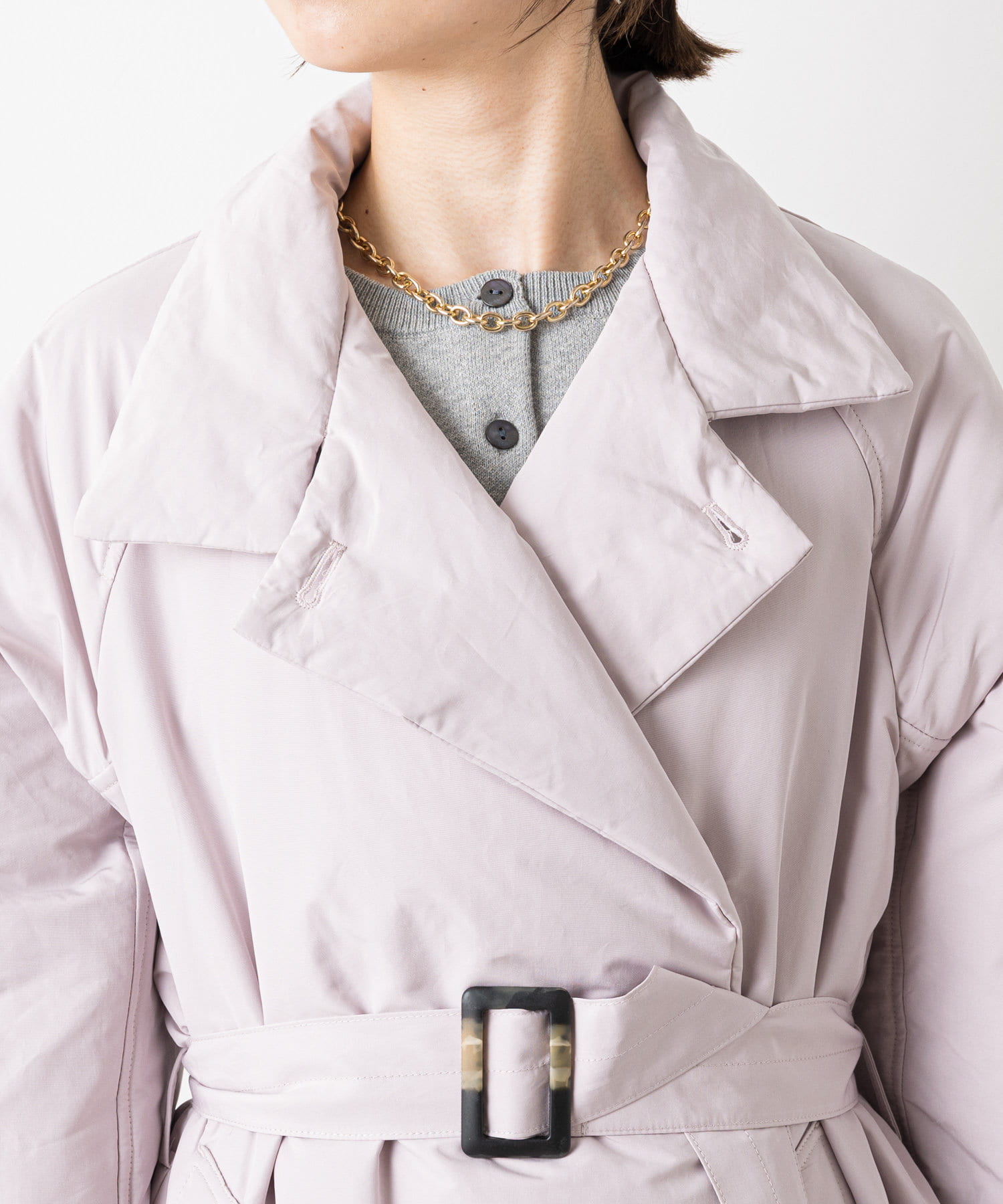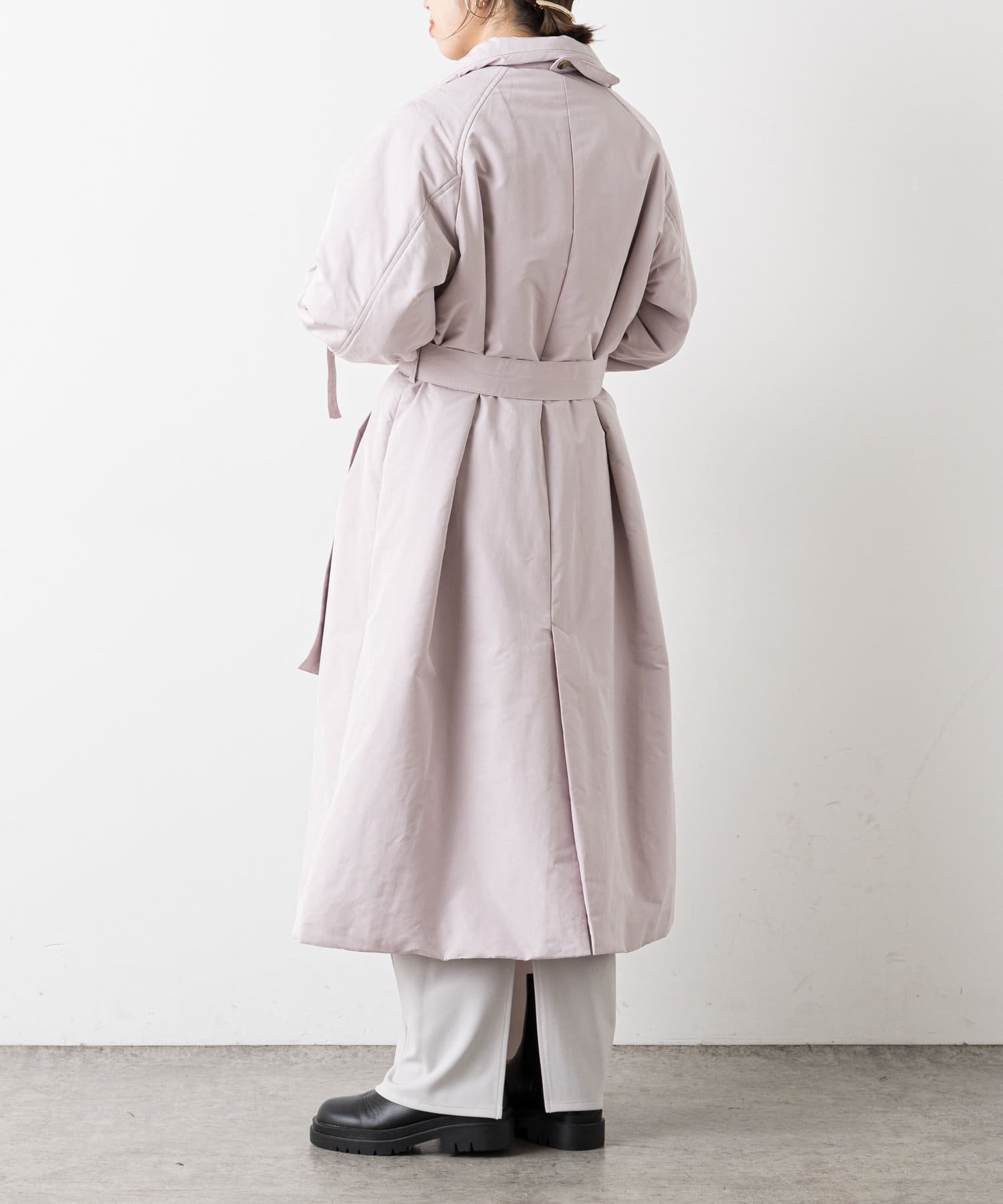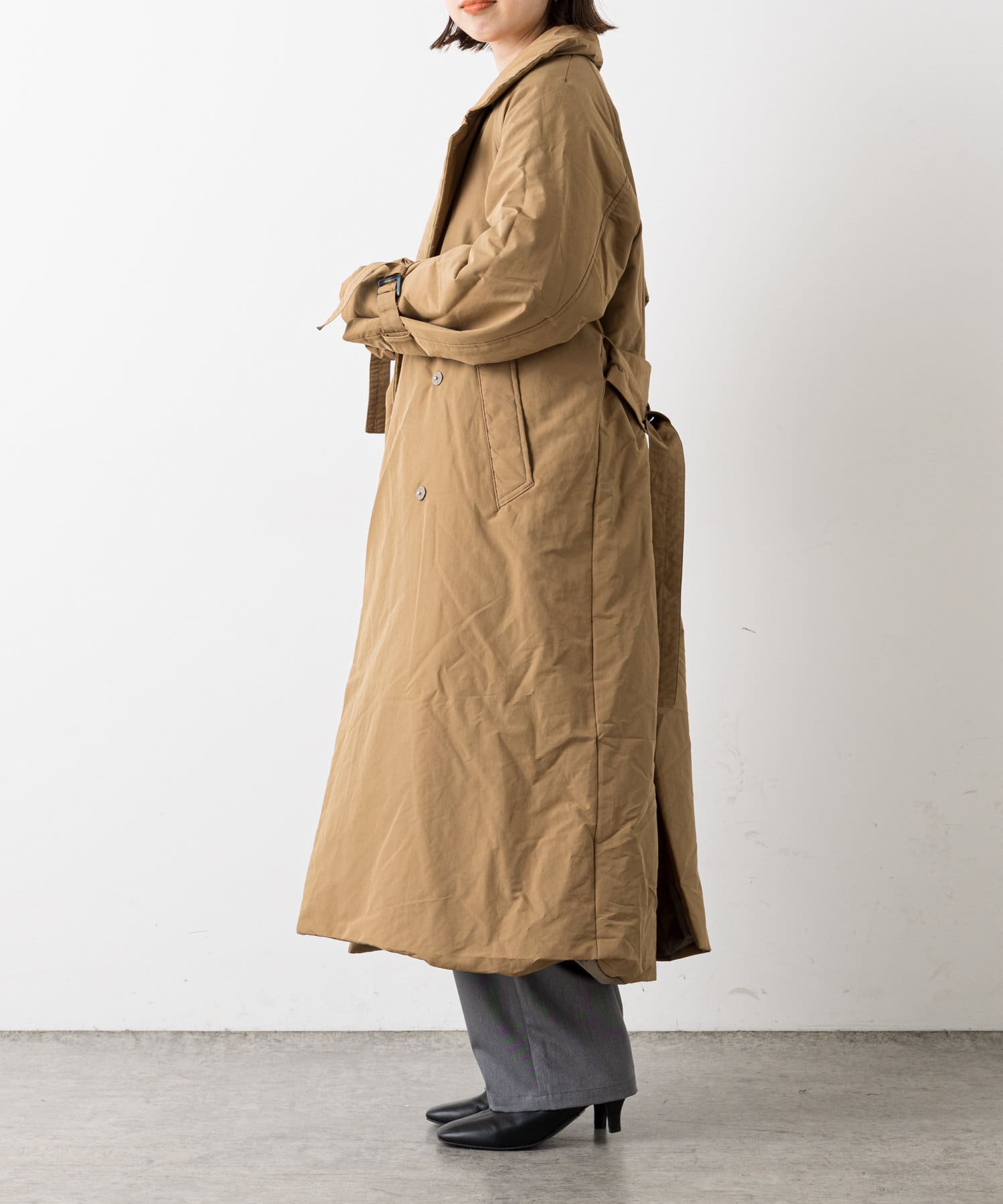 ・中綿を使用しているので保温性に優れ、しっかり暖かく冬まで着られるトレンチコートです。