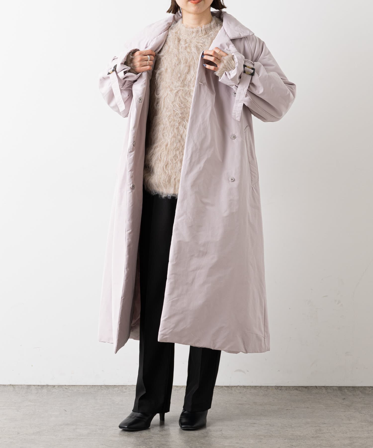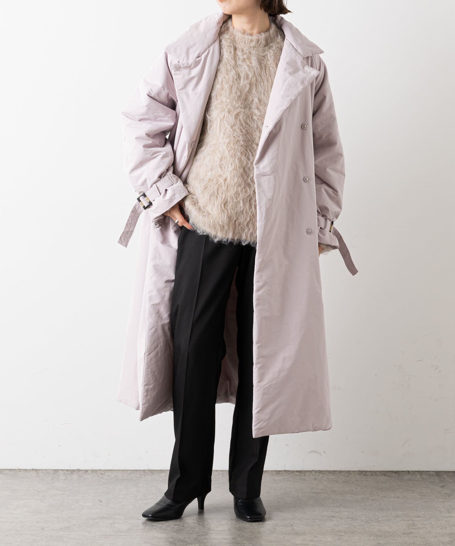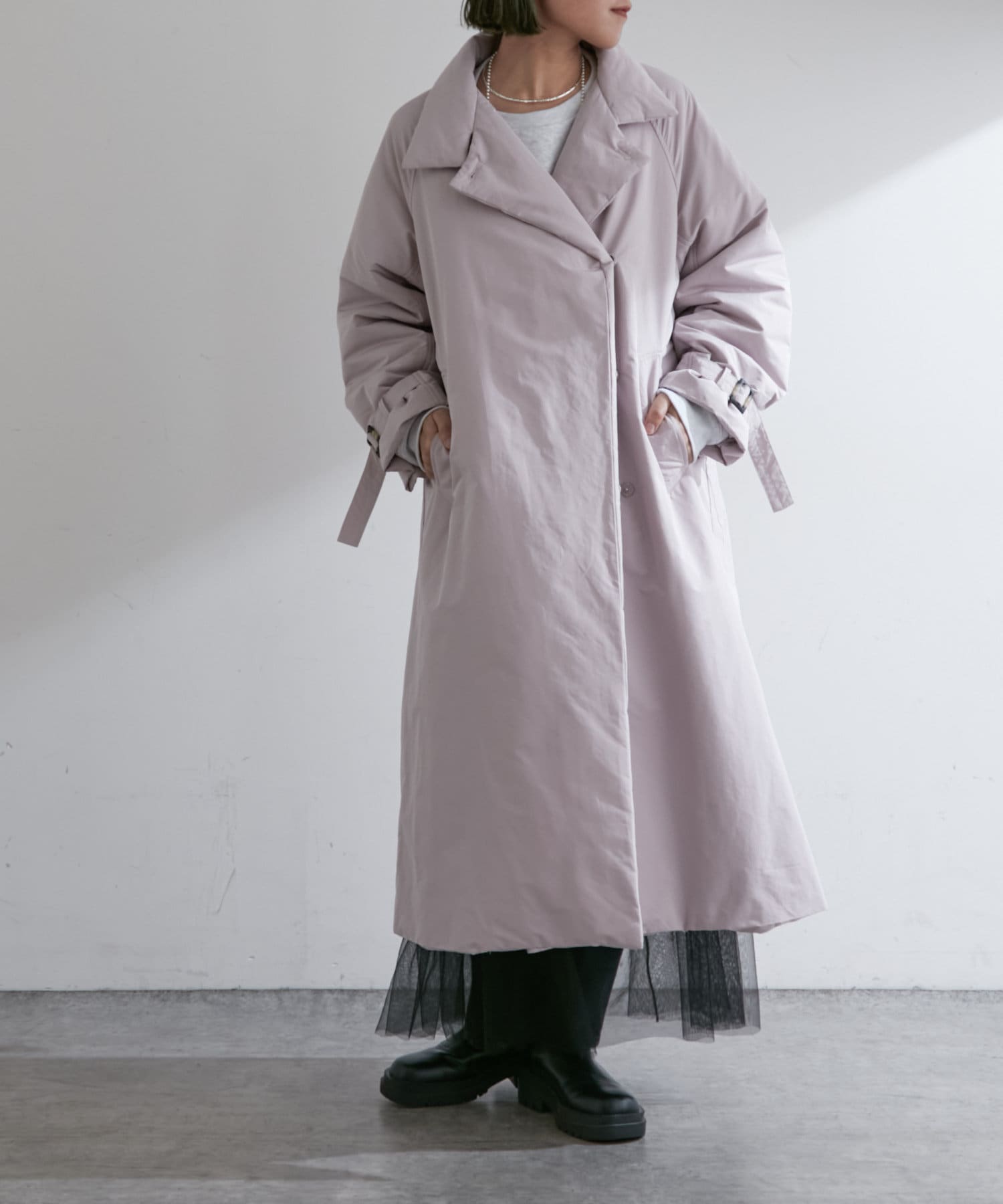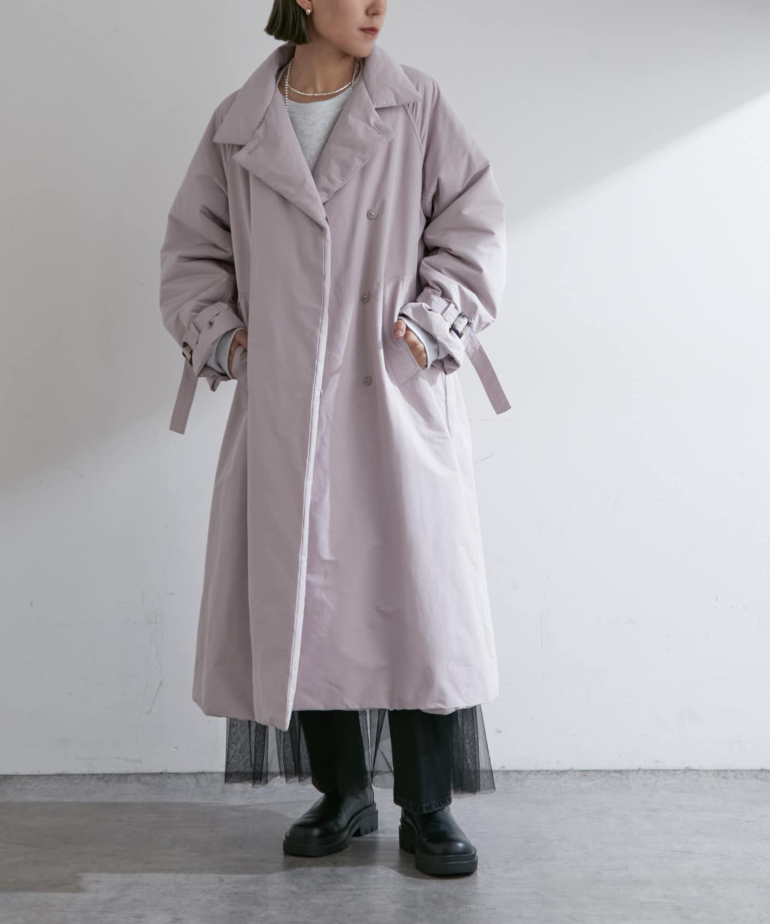 ・中綿を使用しているので保温性に優れ、しっかり暖かく冬まで着られるトレンチコートです。