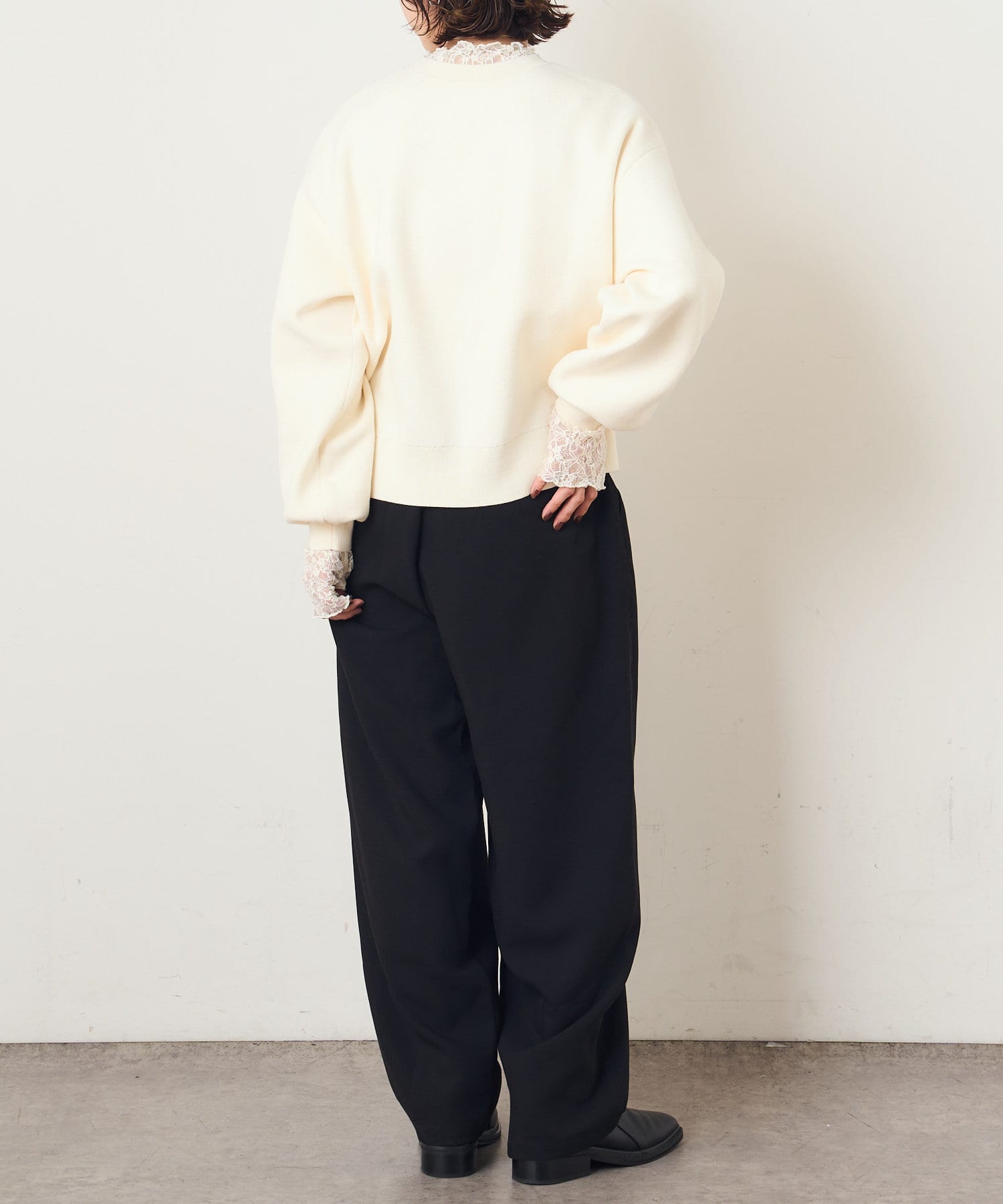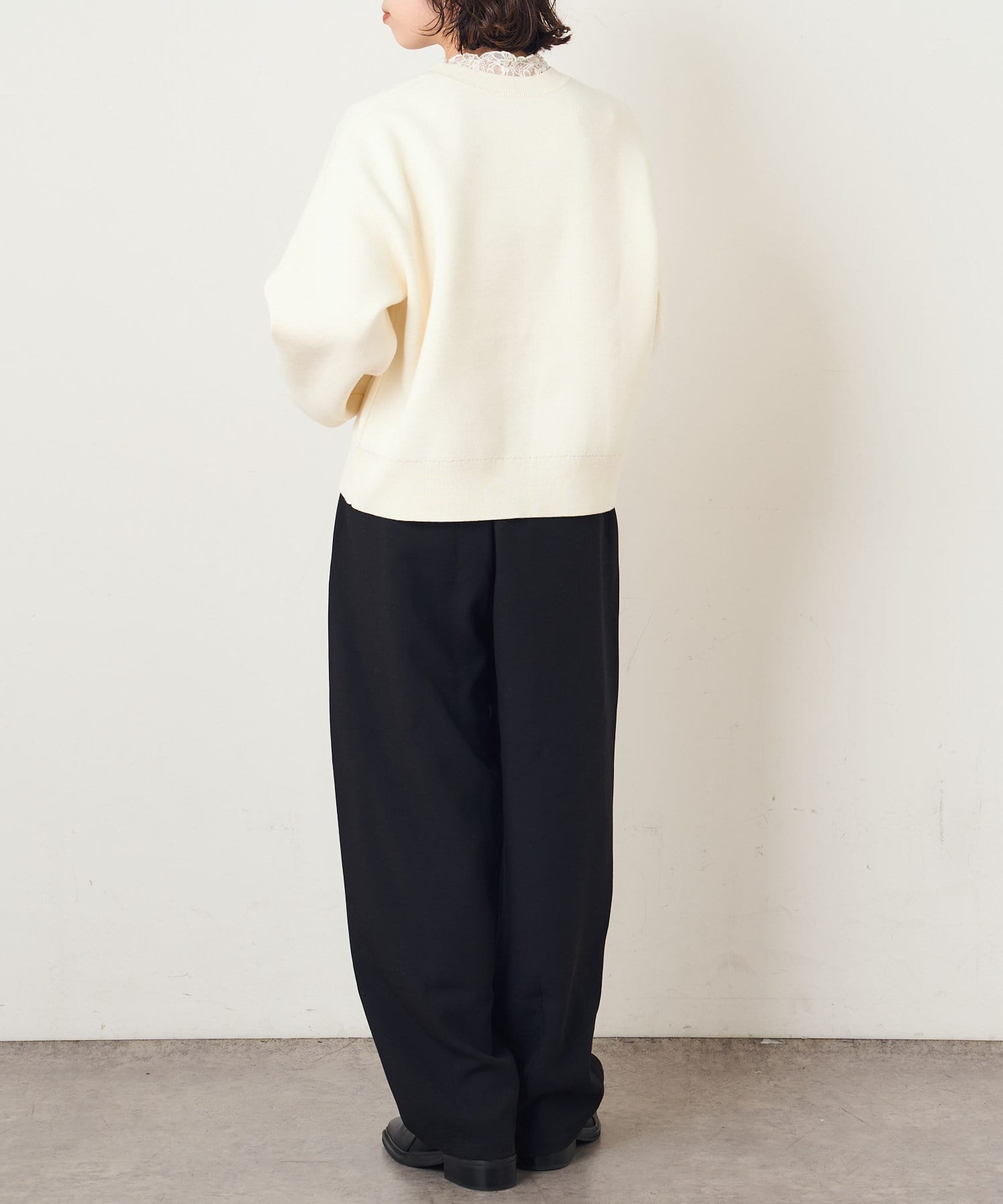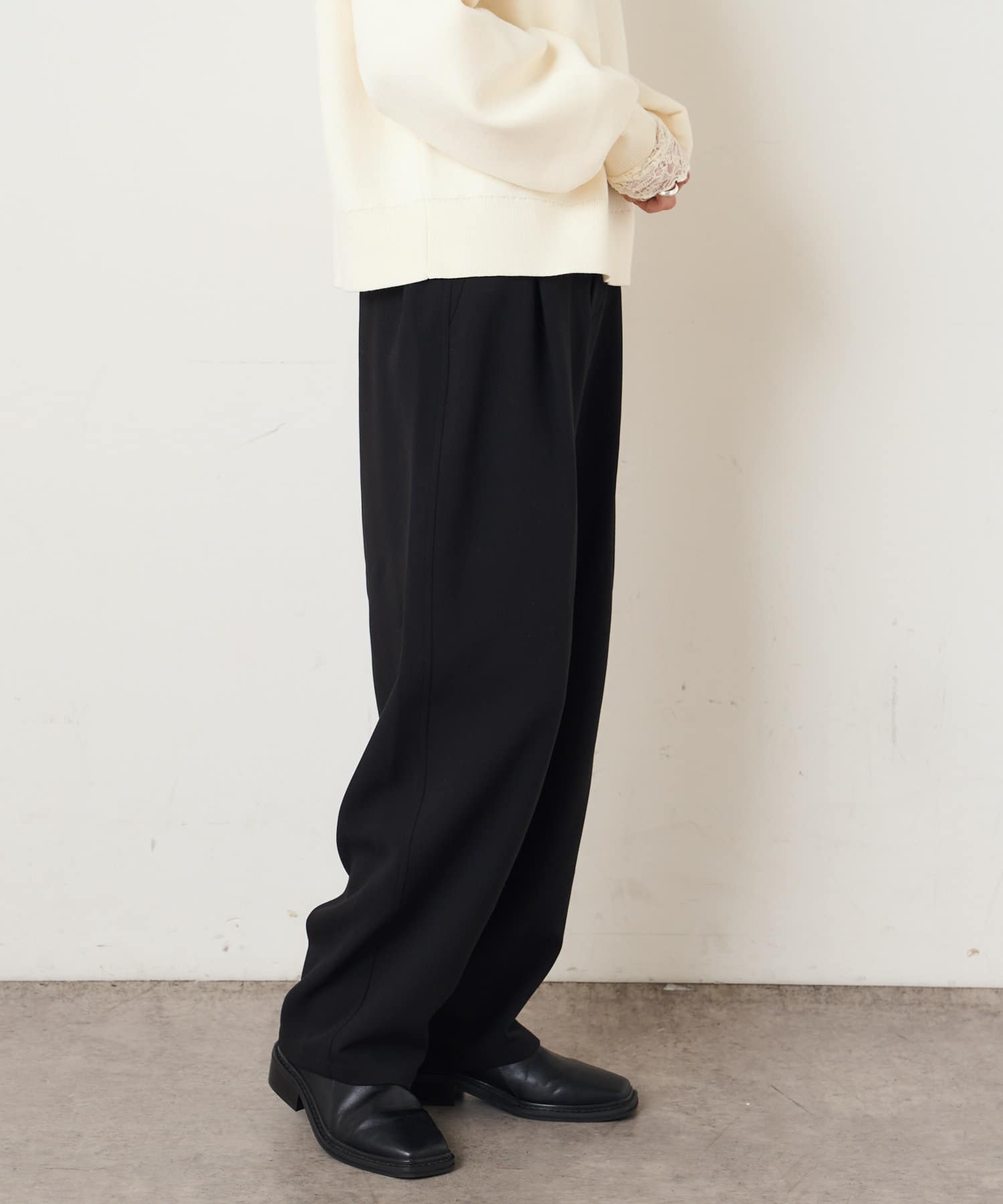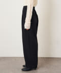 ・脚のラインを拾いずらいハリのある素材と、ゆったりシルエットが華奢見えしてくれるパンツです。