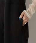 ・アクセサリーやパンプスで女性らしさをプラスするのがスタイリングのポイントです。