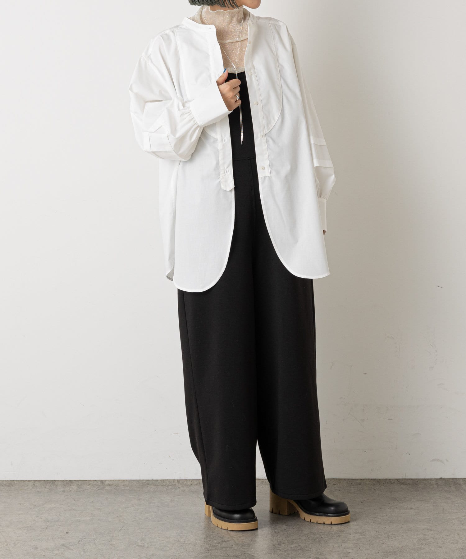 ・タートルネックやカットソー、ニットに重ねるなど、合わせるインナー次第でオールシーズン活躍します。