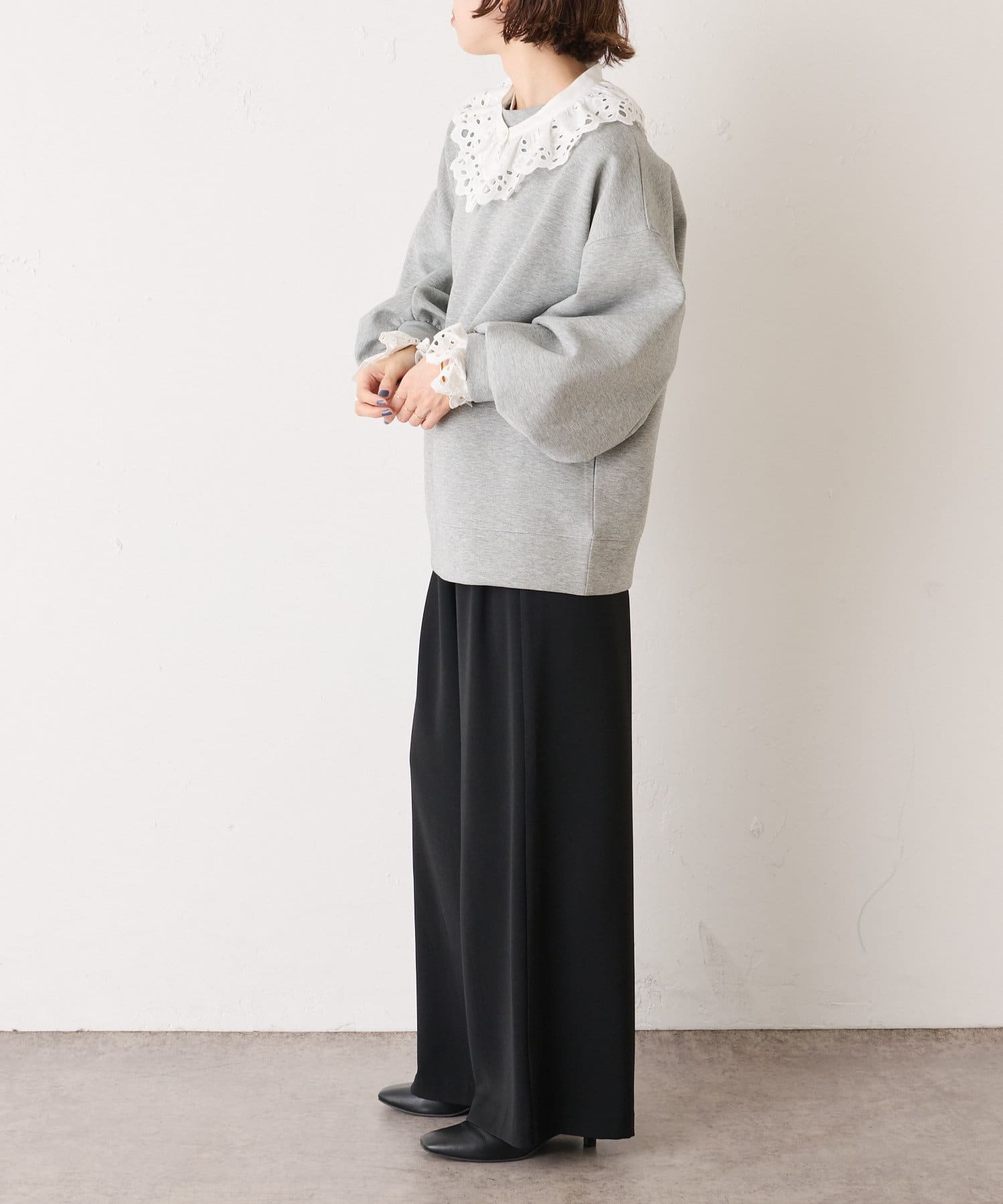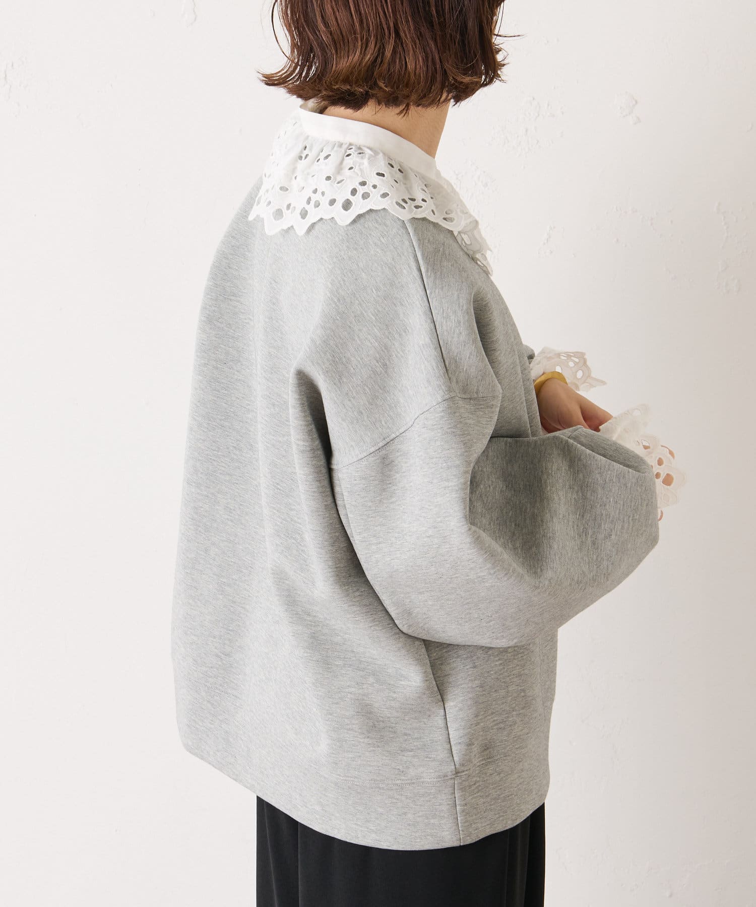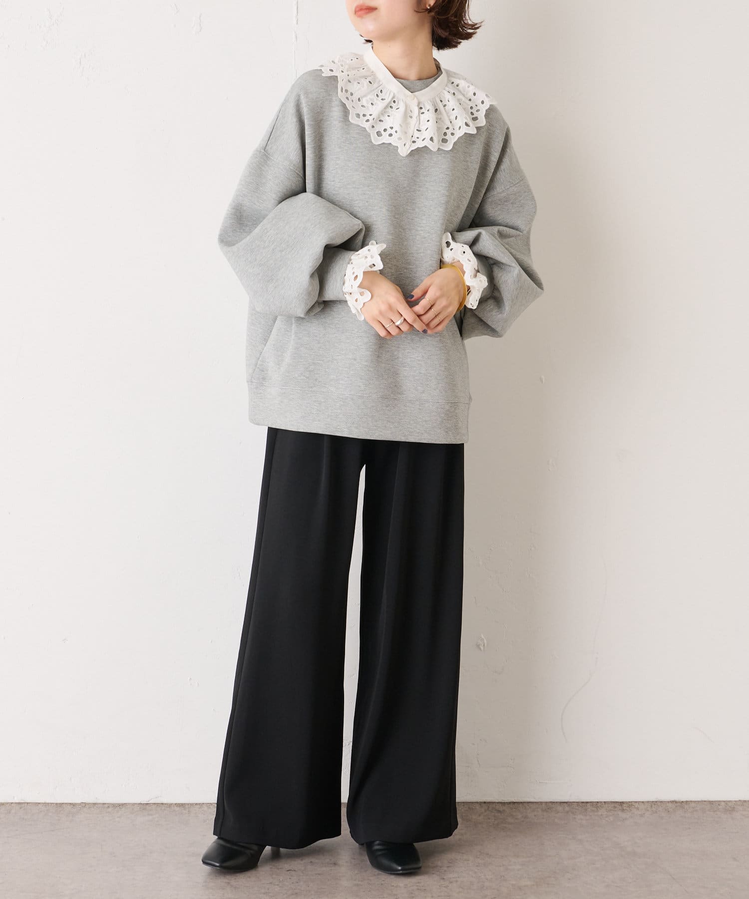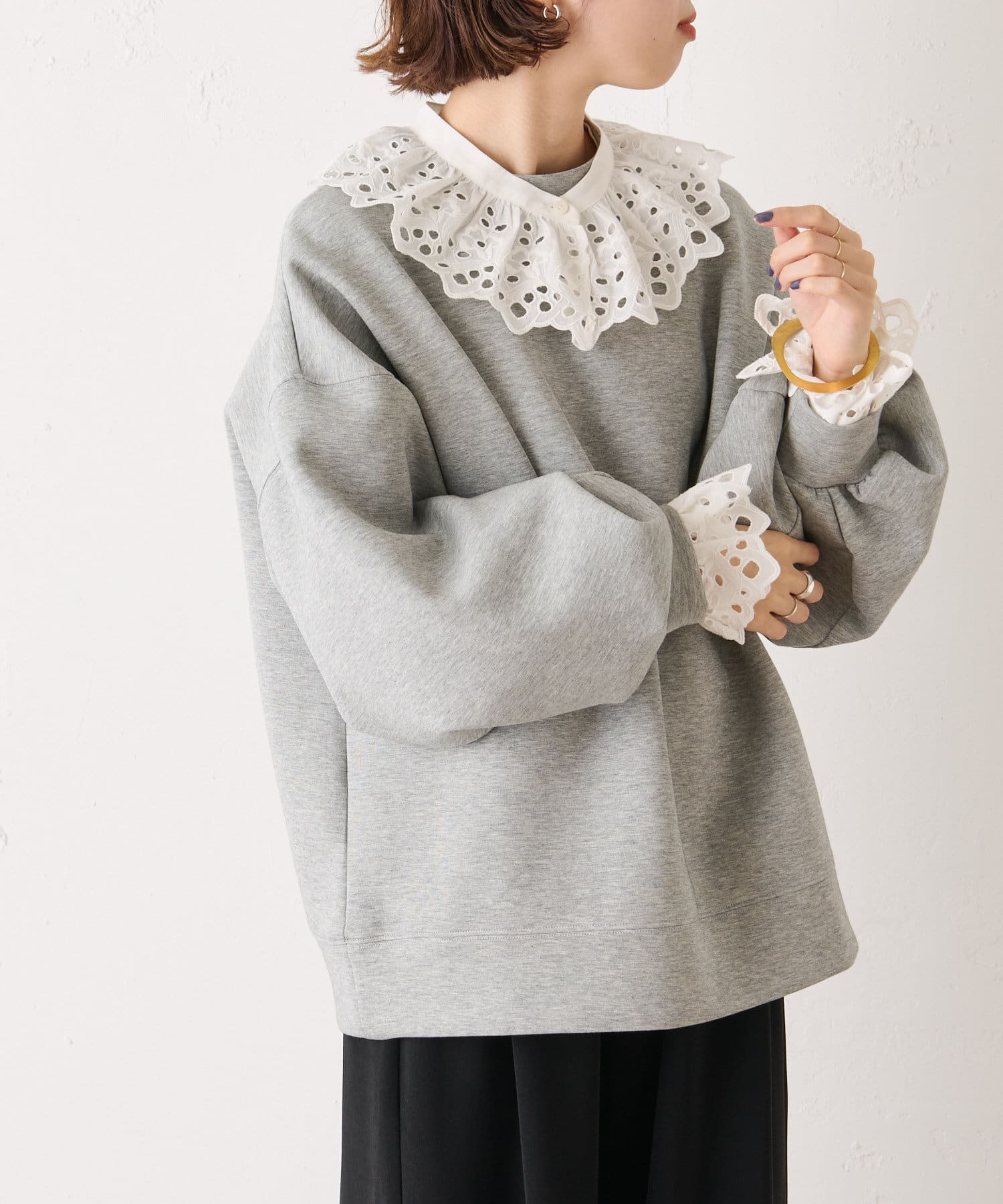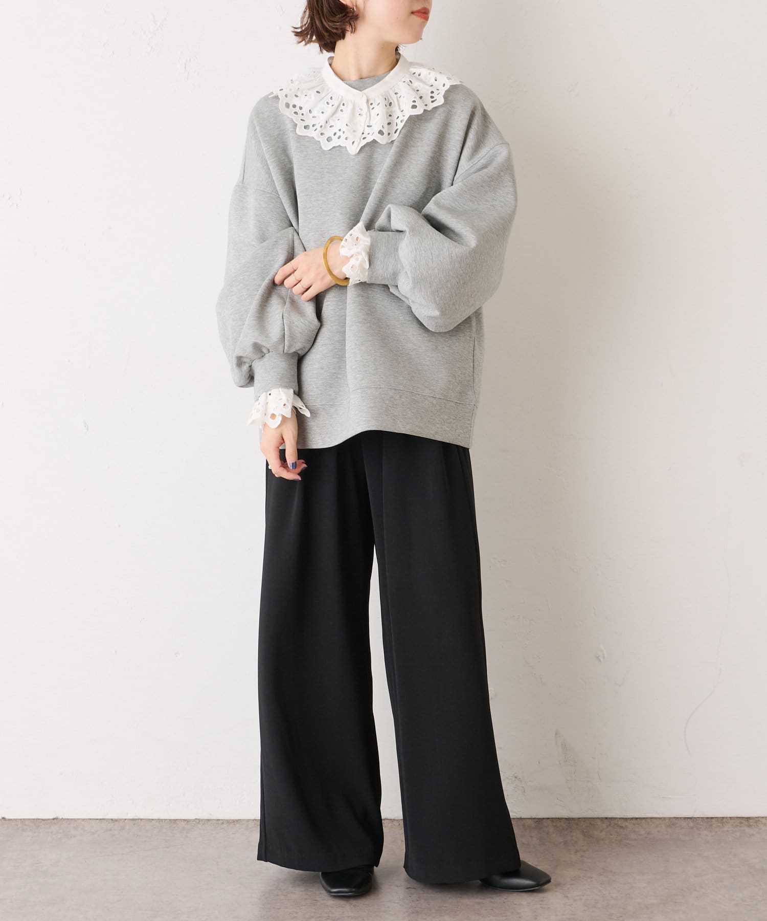 ・袖や裾に施されたレースのデザインがコーディネートのアクセントとなり、取り入れるだけおしゃれ見えするアイテム。襟のレースは取り外しが可能なのも◎