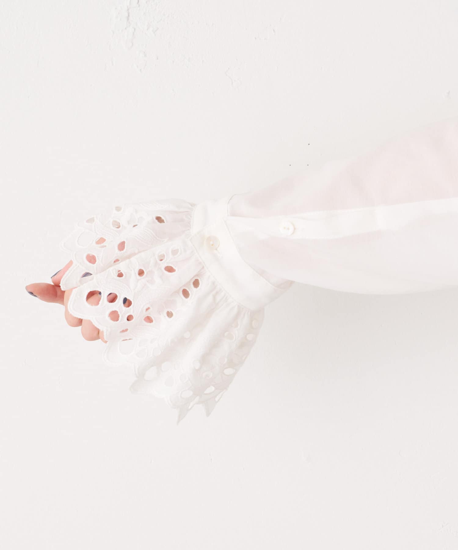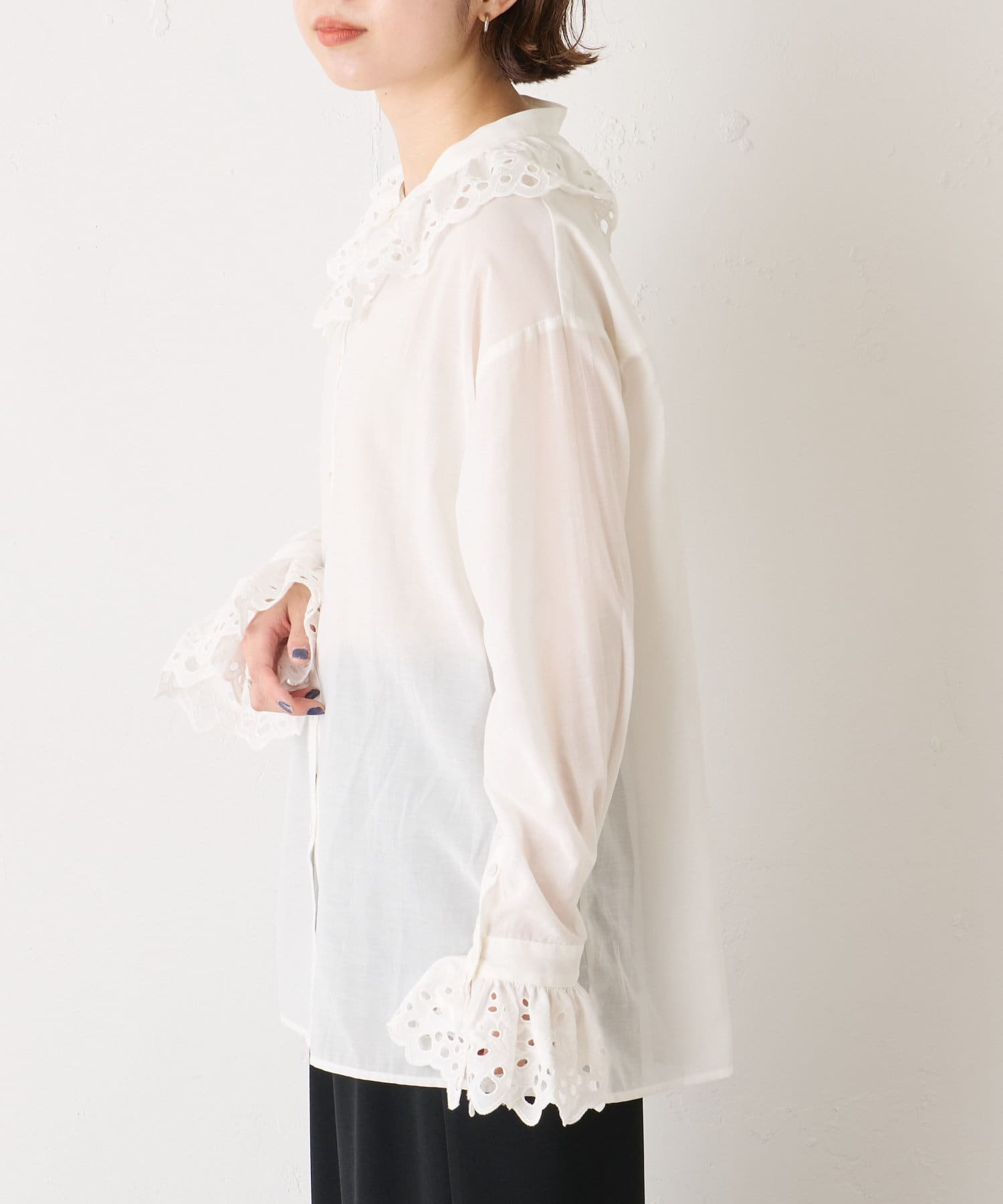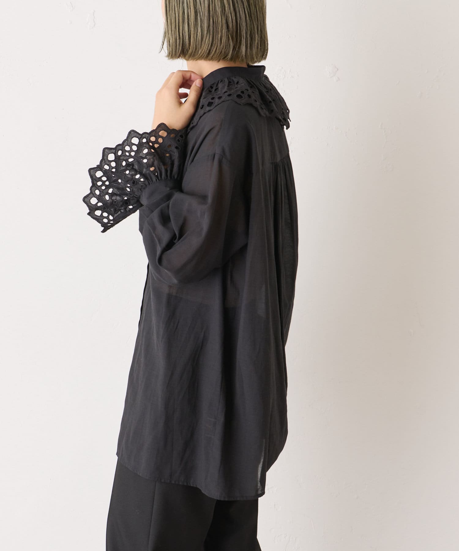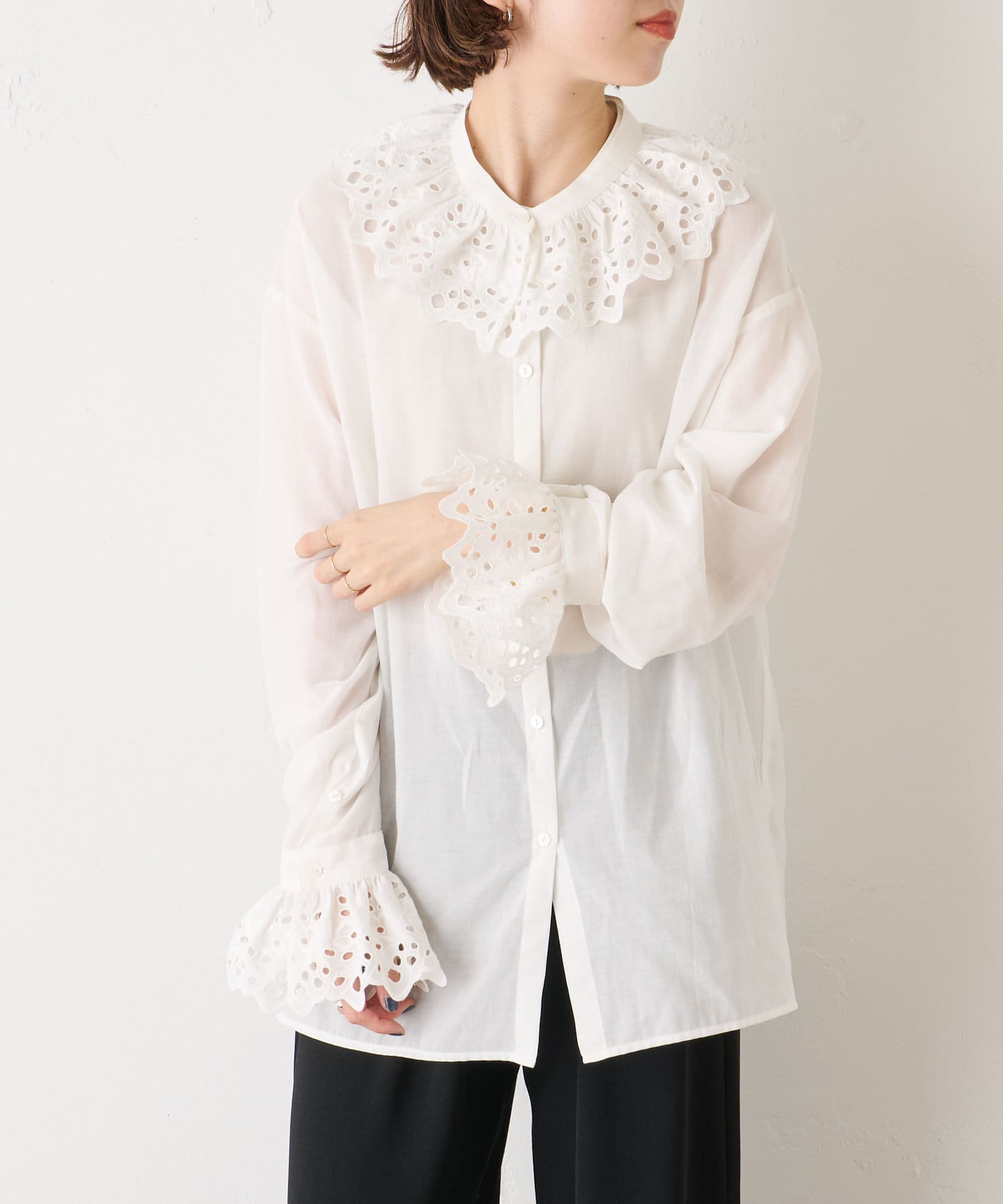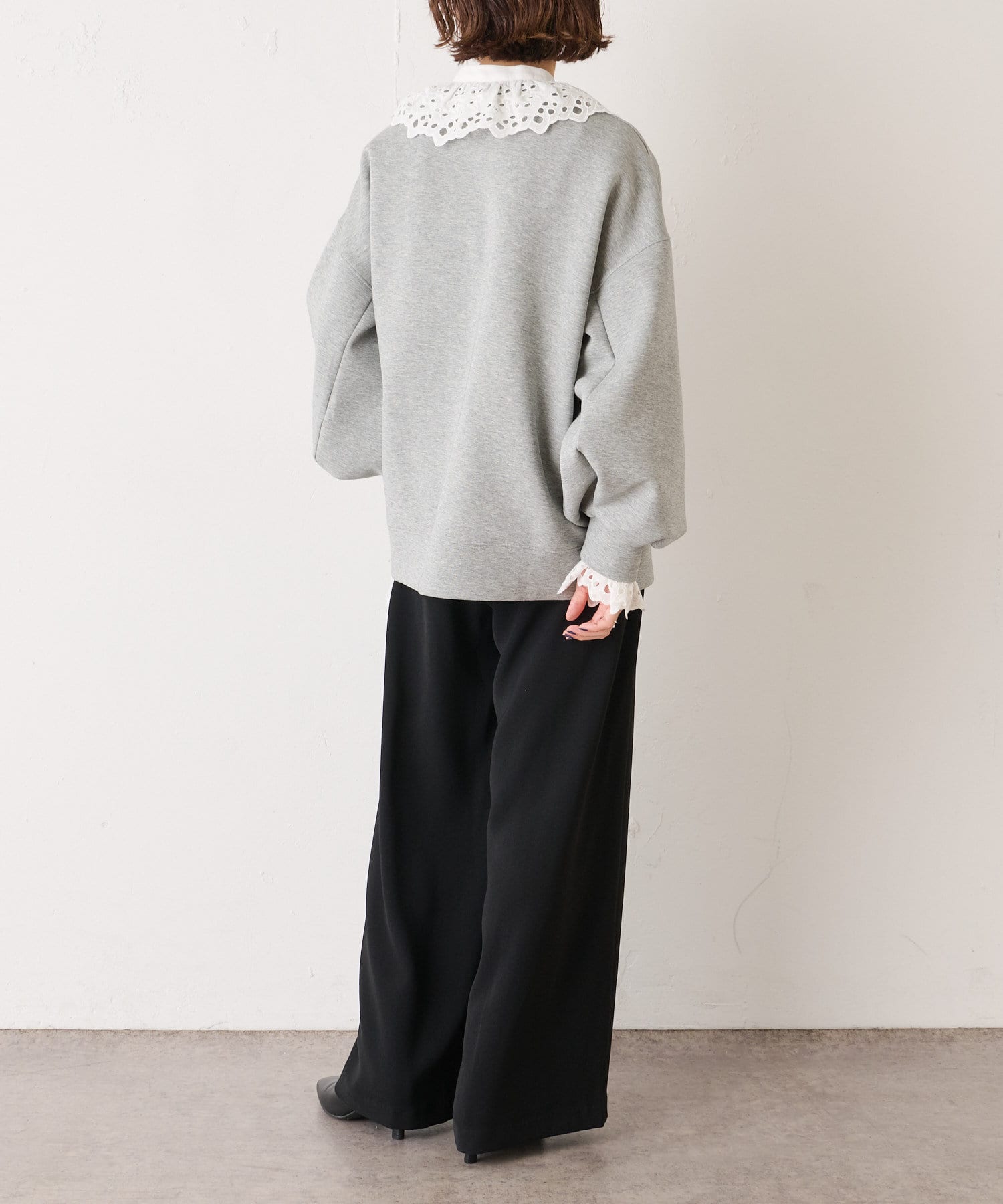 ・袖や裾に施されたレースのデザインがコーディネートのアクセントとなり、取り入れるだけおしゃれ見えするアイテム。襟のレースは取り外しが可能なのも◎
