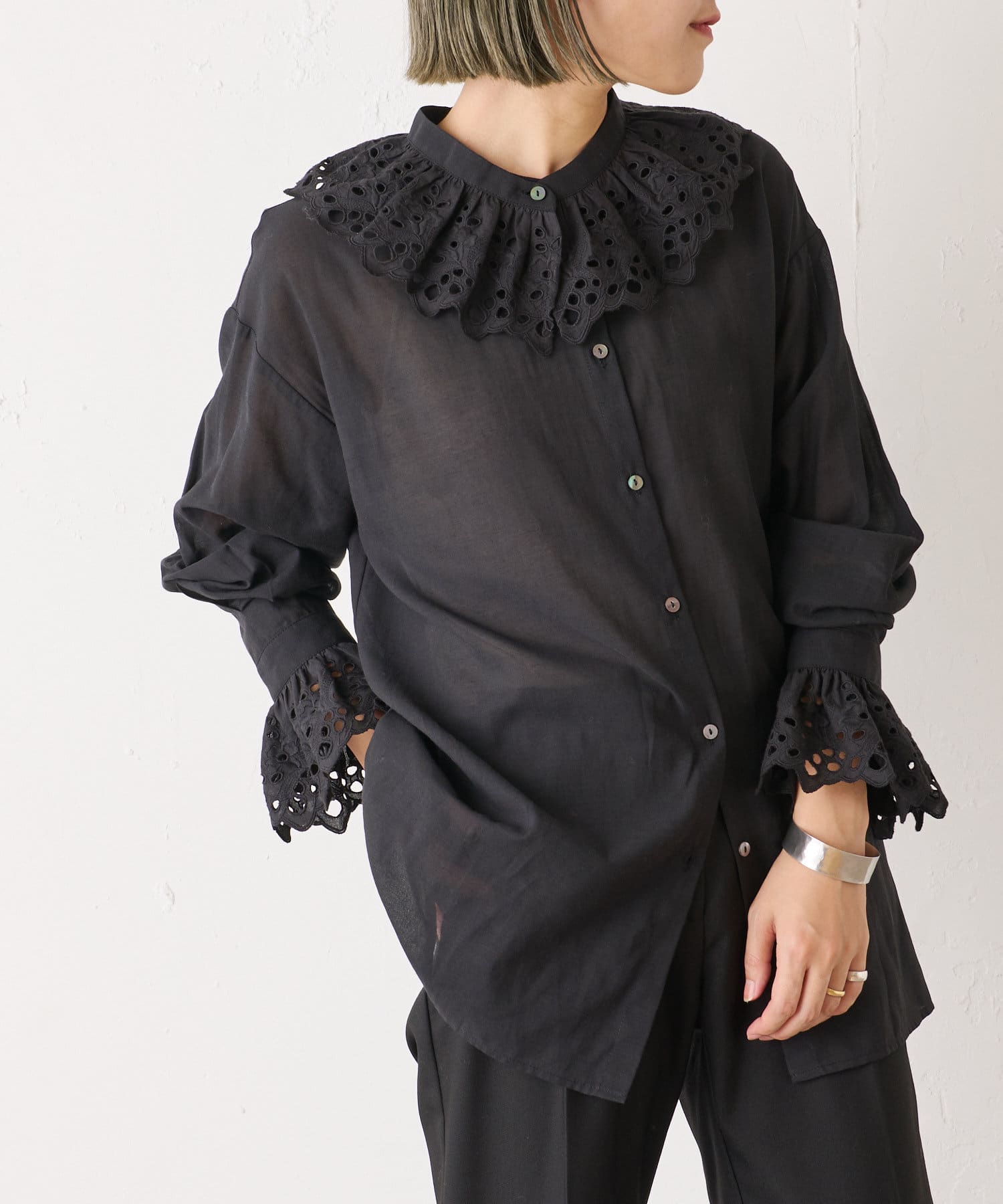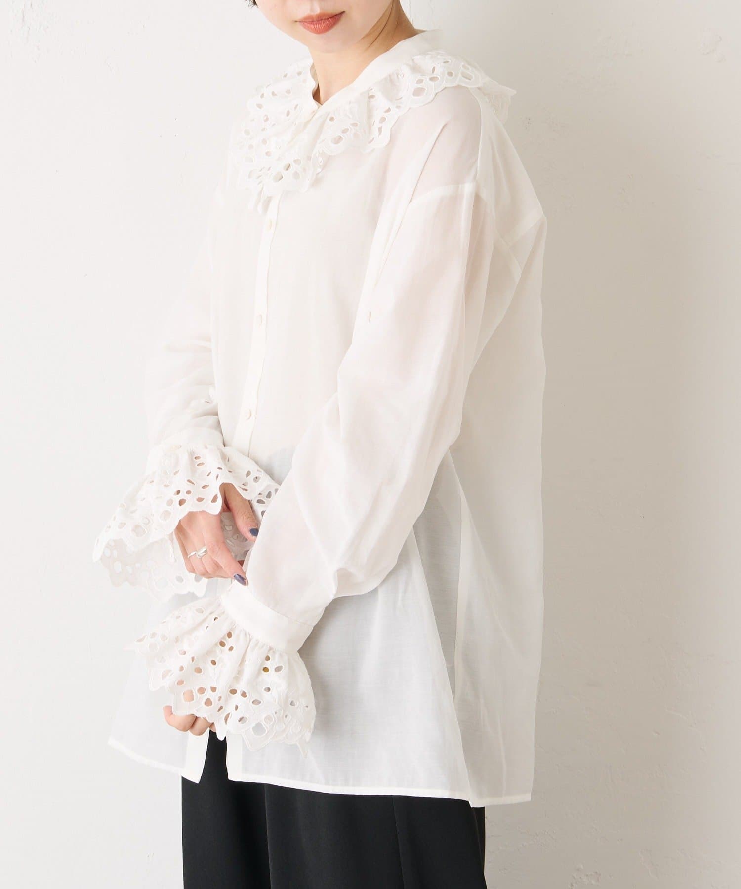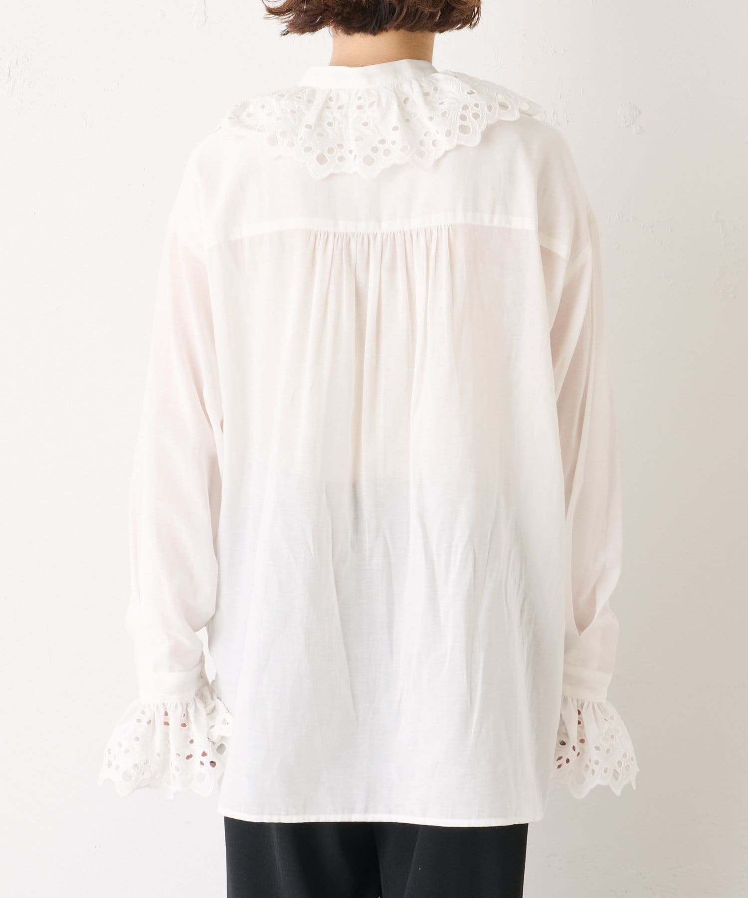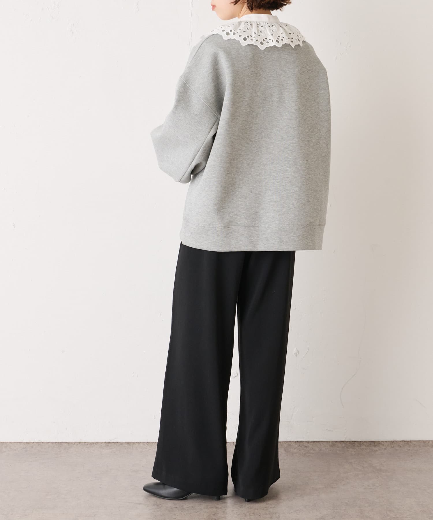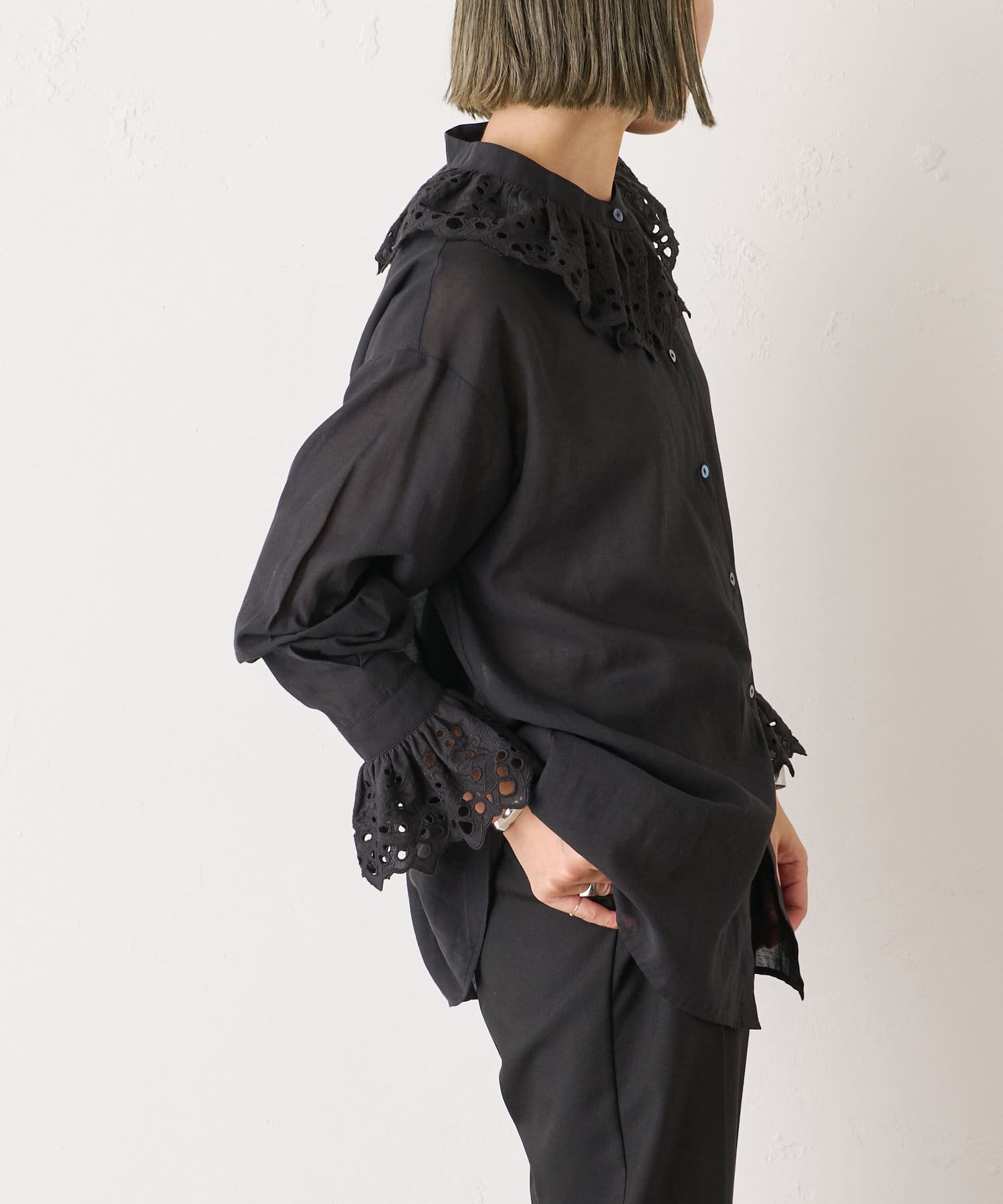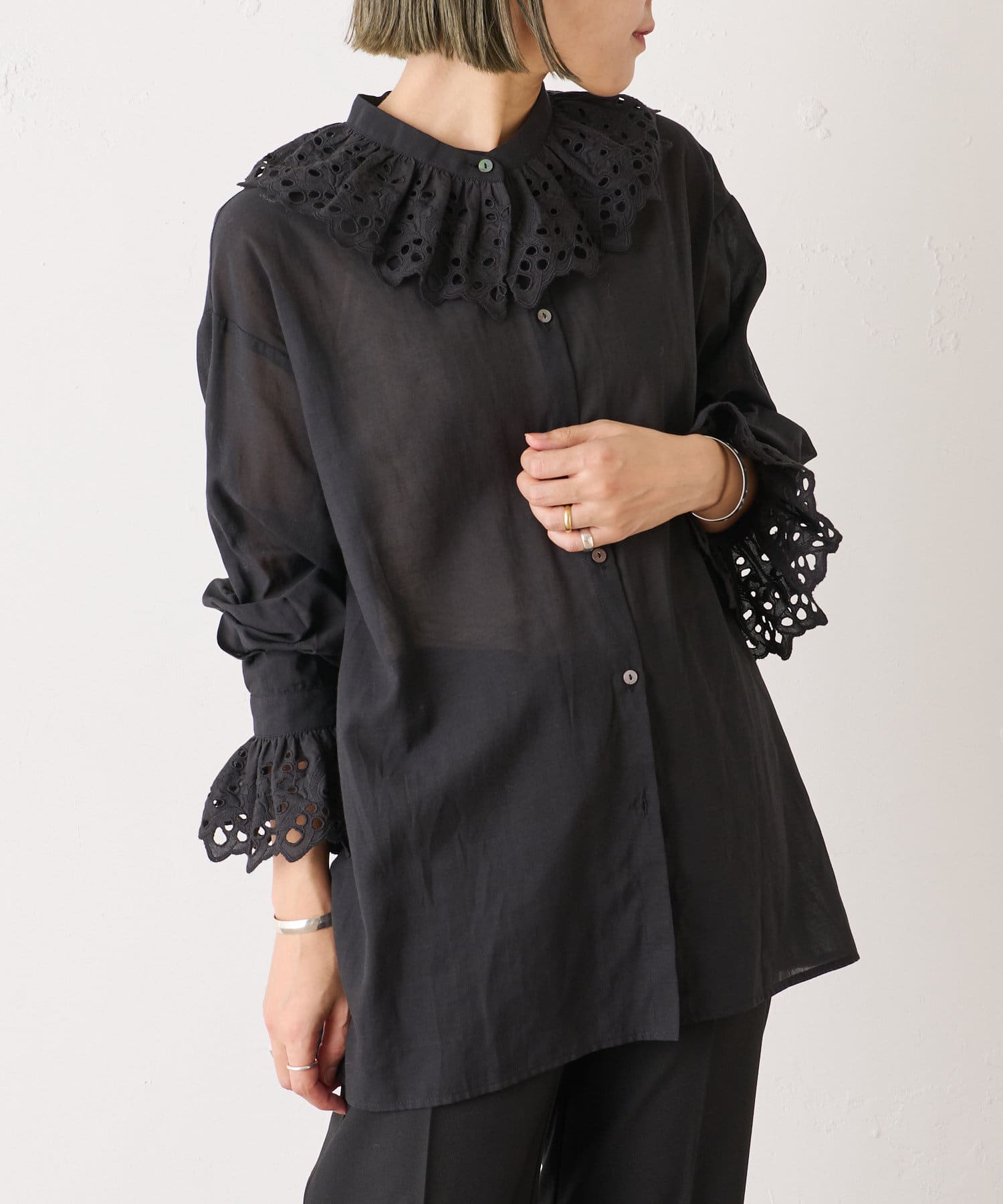 ・袖や裾に施されたレースのデザインがコーディネートのアクセントとなり、取り入れるだけおしゃれ見えするアイテム。襟のレースは取り外しが可能なのも◎