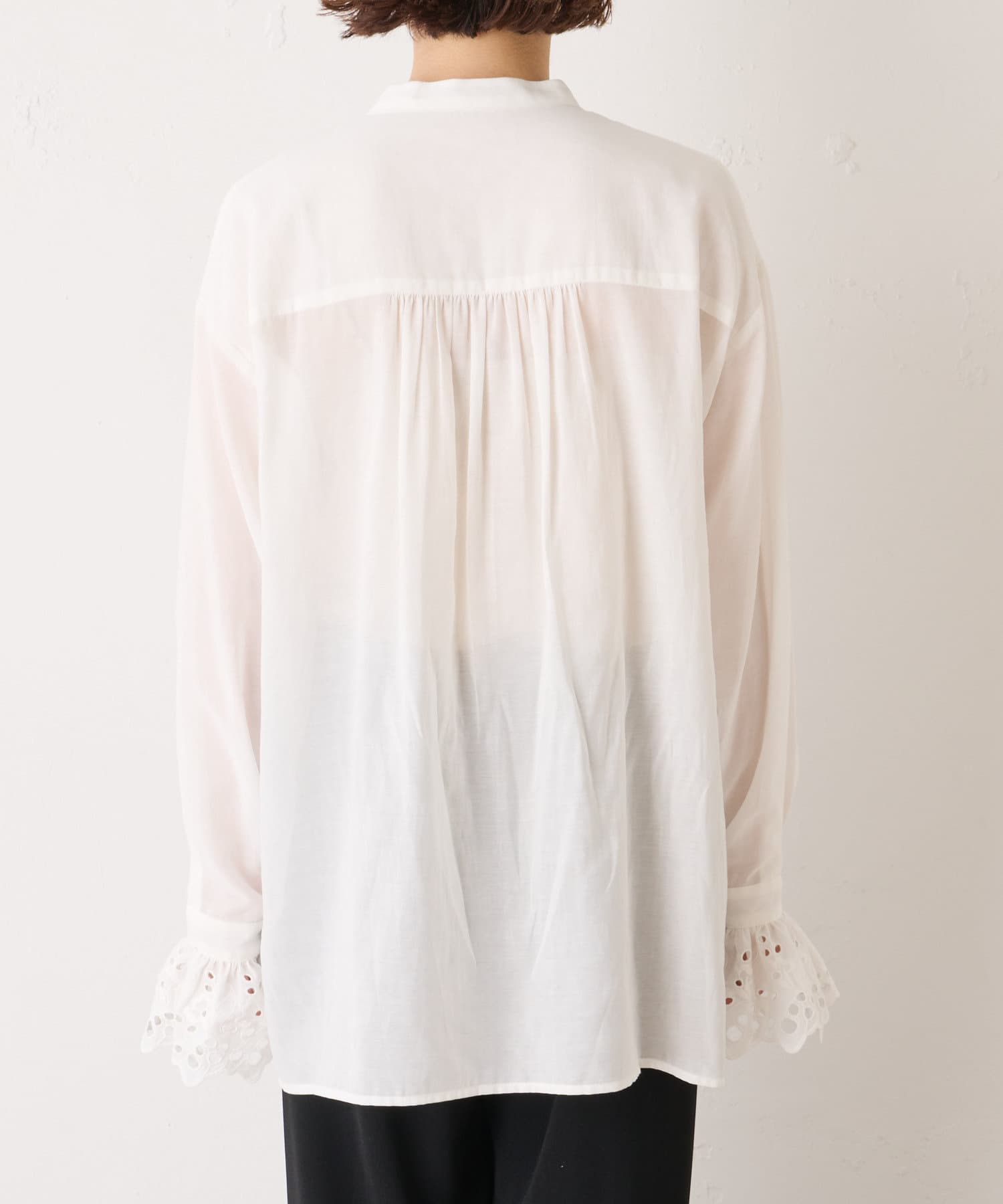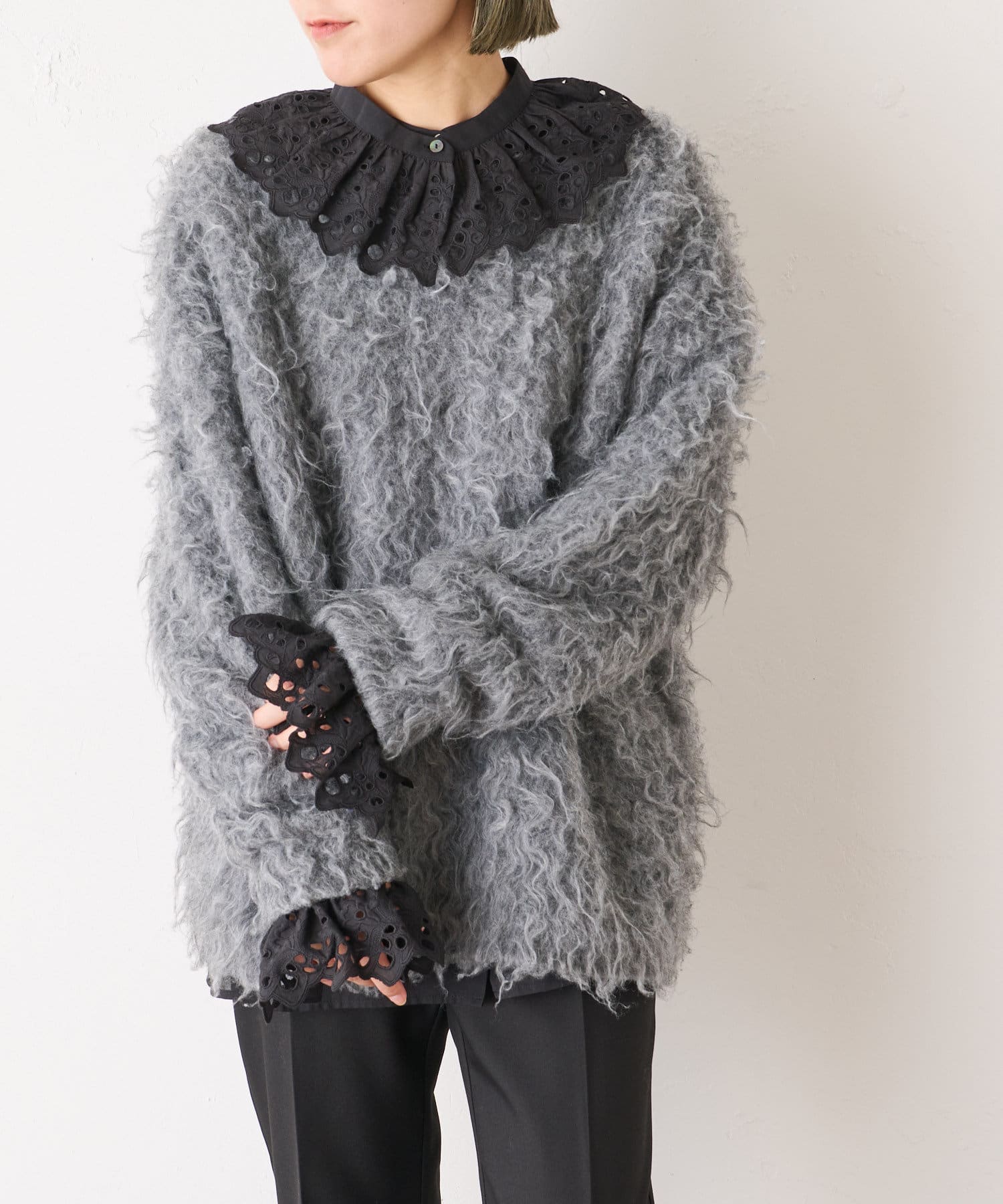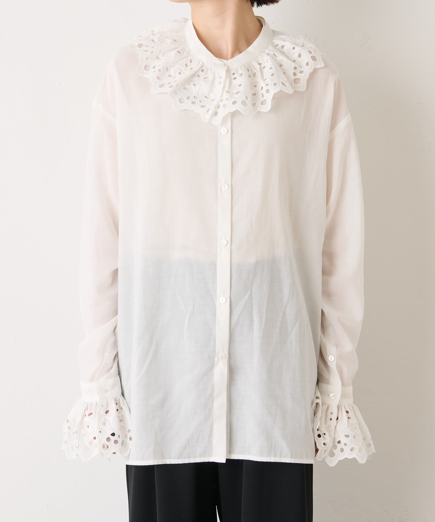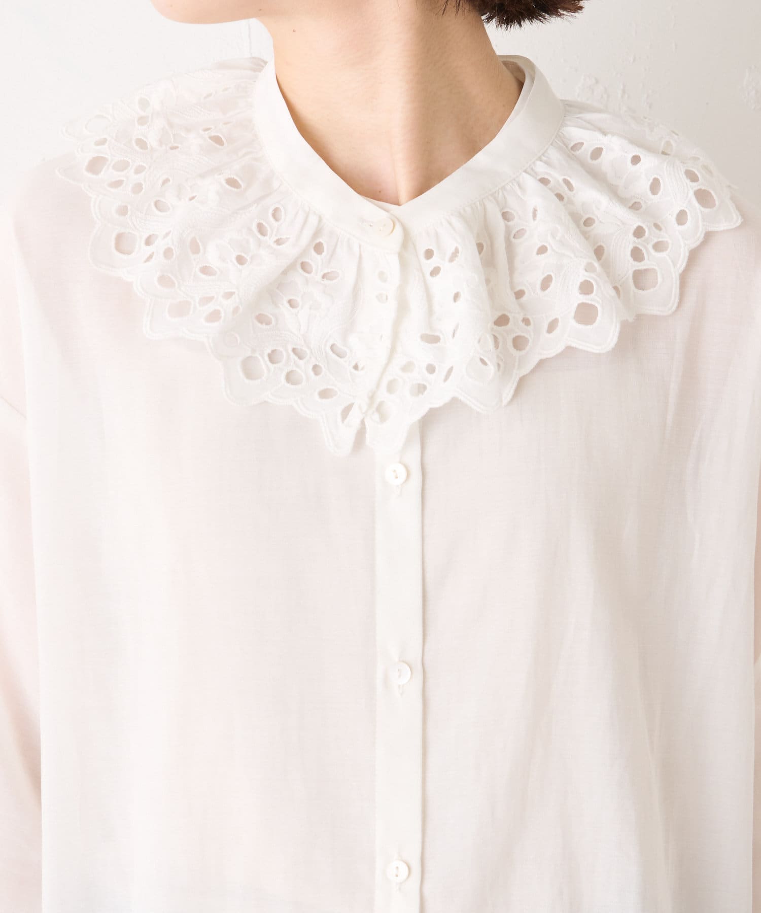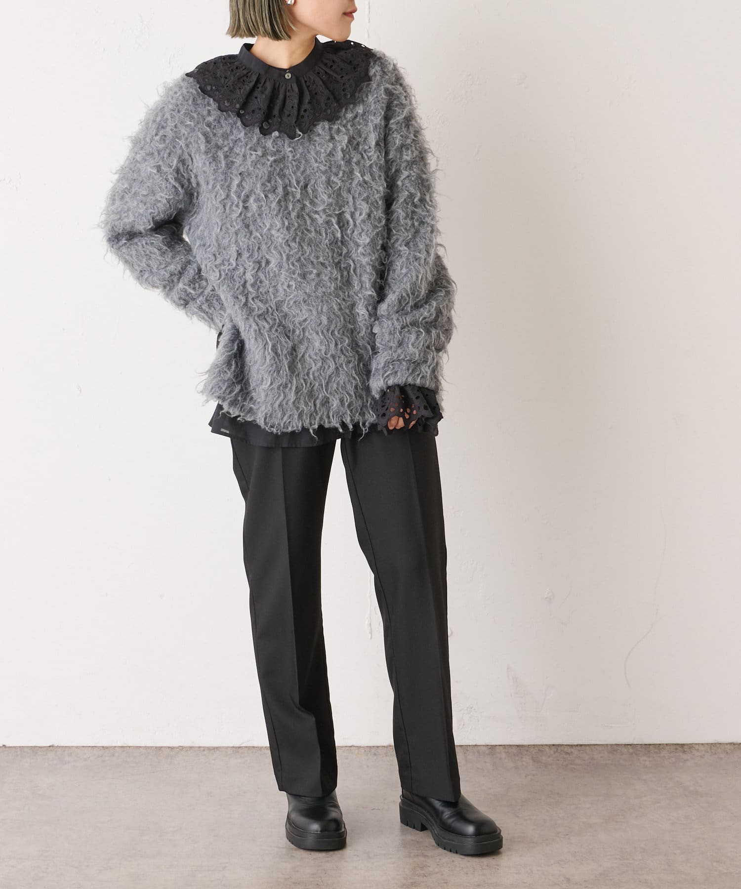・袖や裾に施されたレースのデザインがコーディネートのアクセントとなり、取り入れるだけおしゃれ見えするアイテム。襟のレースは取り外しが可能なのも◎