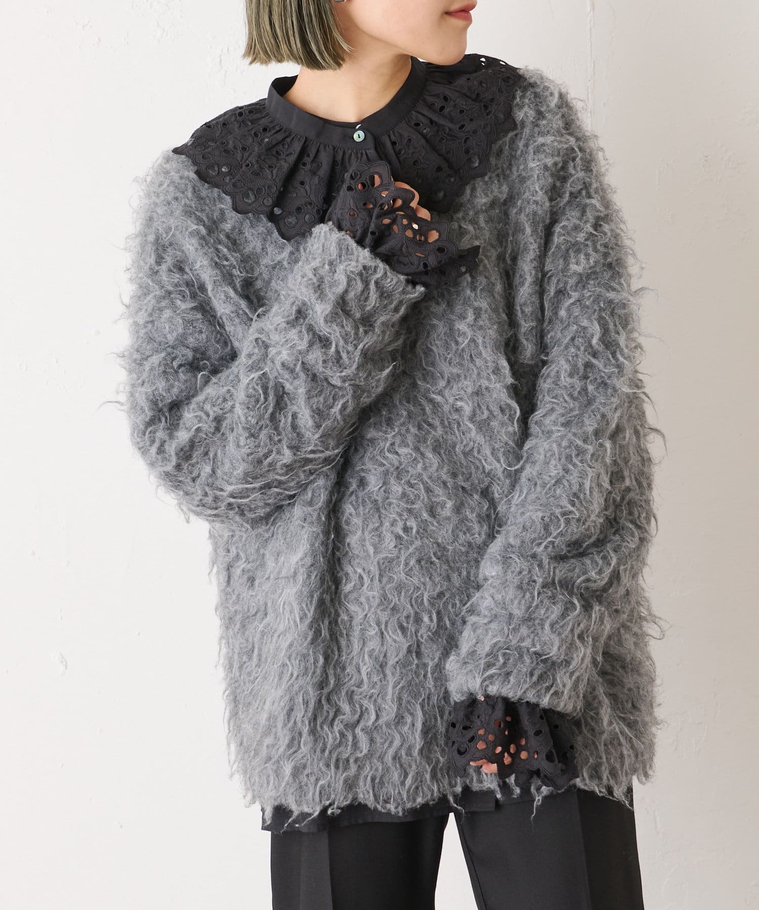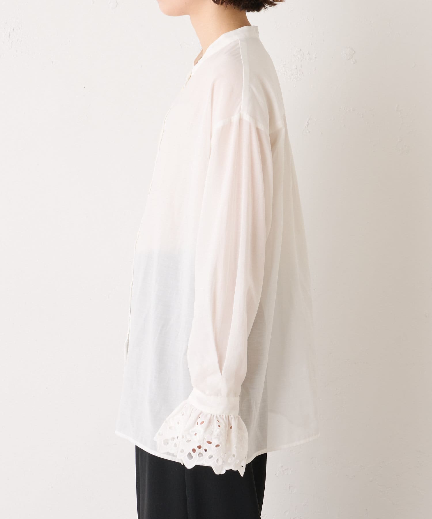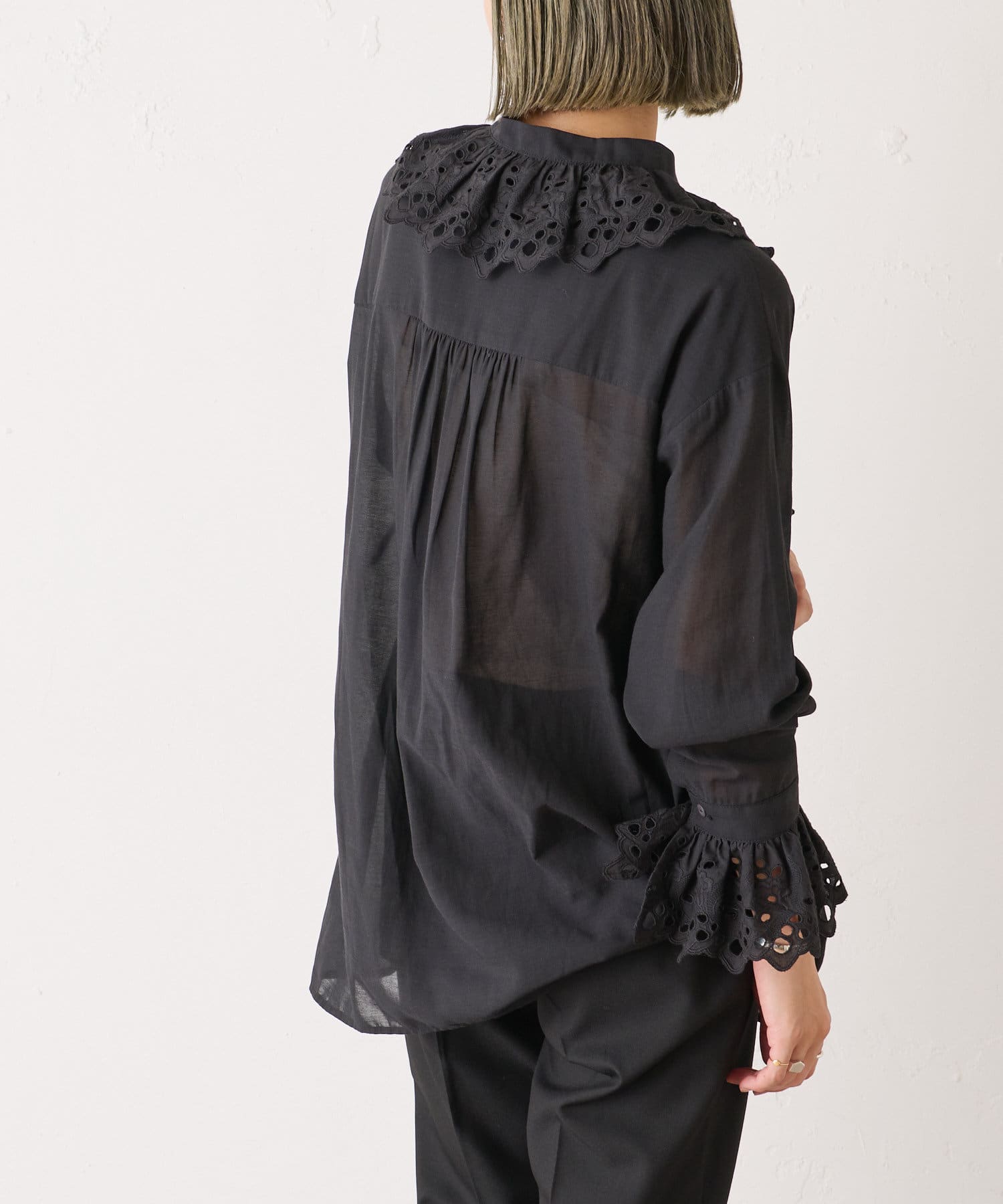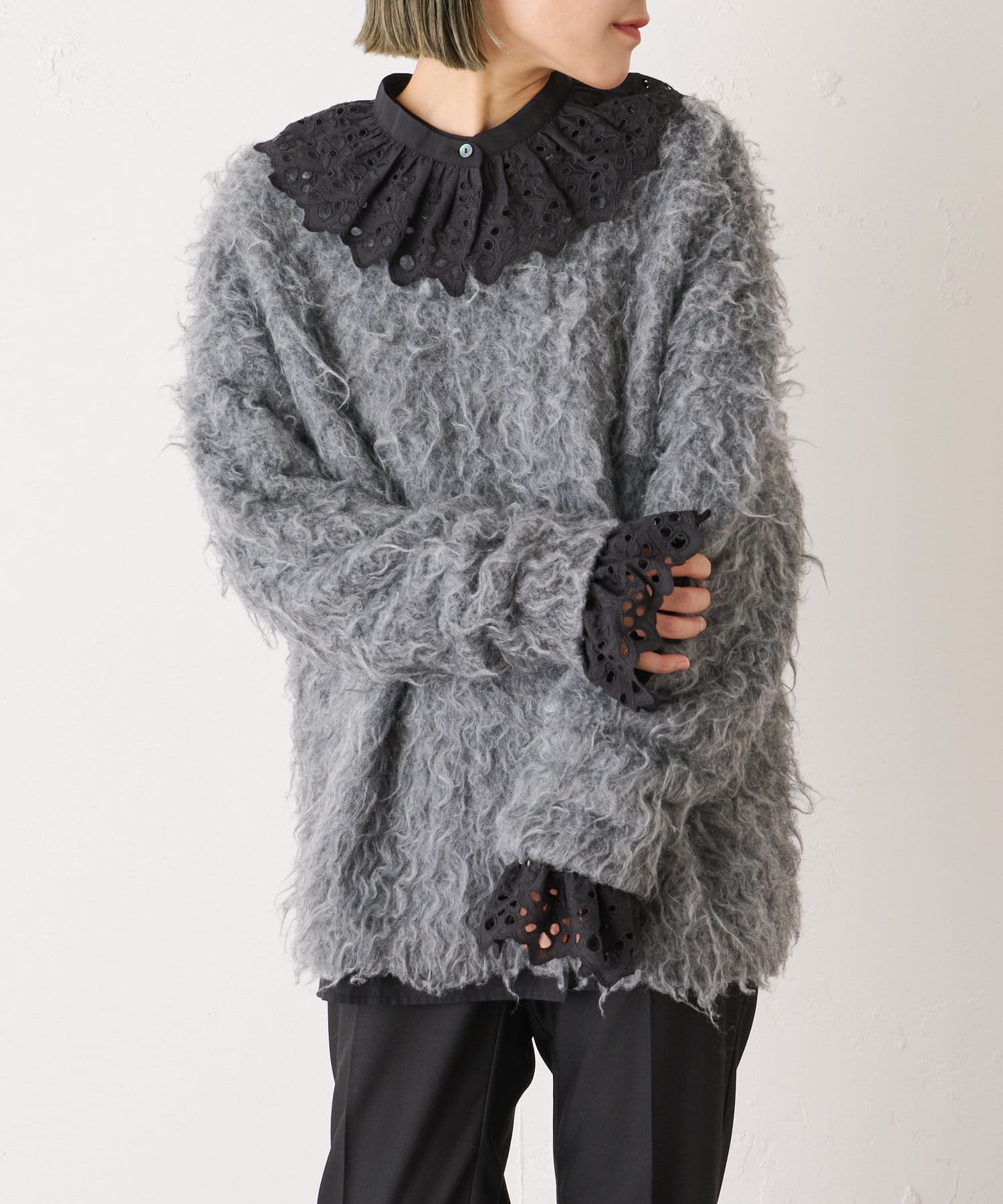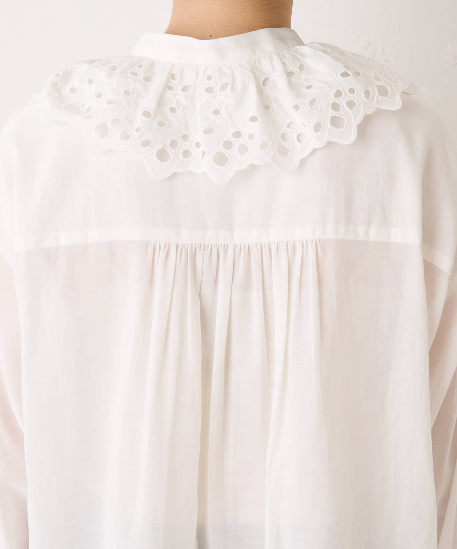 ・袖や裾に施されたレースのデザインがコーディネートのアクセントとなり、取り入れるだけおしゃれ見えするアイテム。襟のレースは取り外しが可能なのも◎