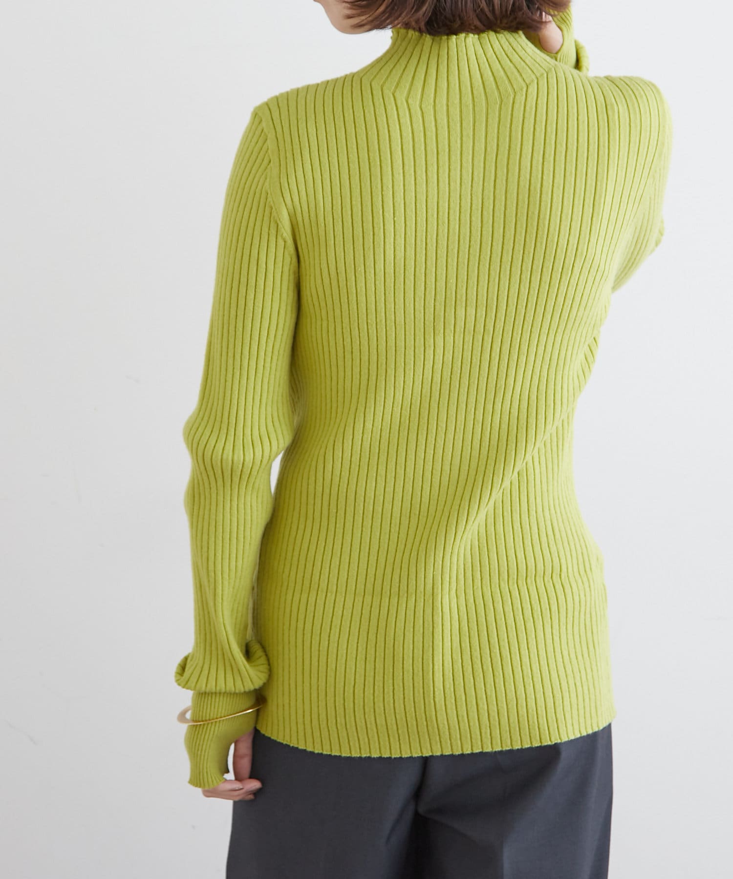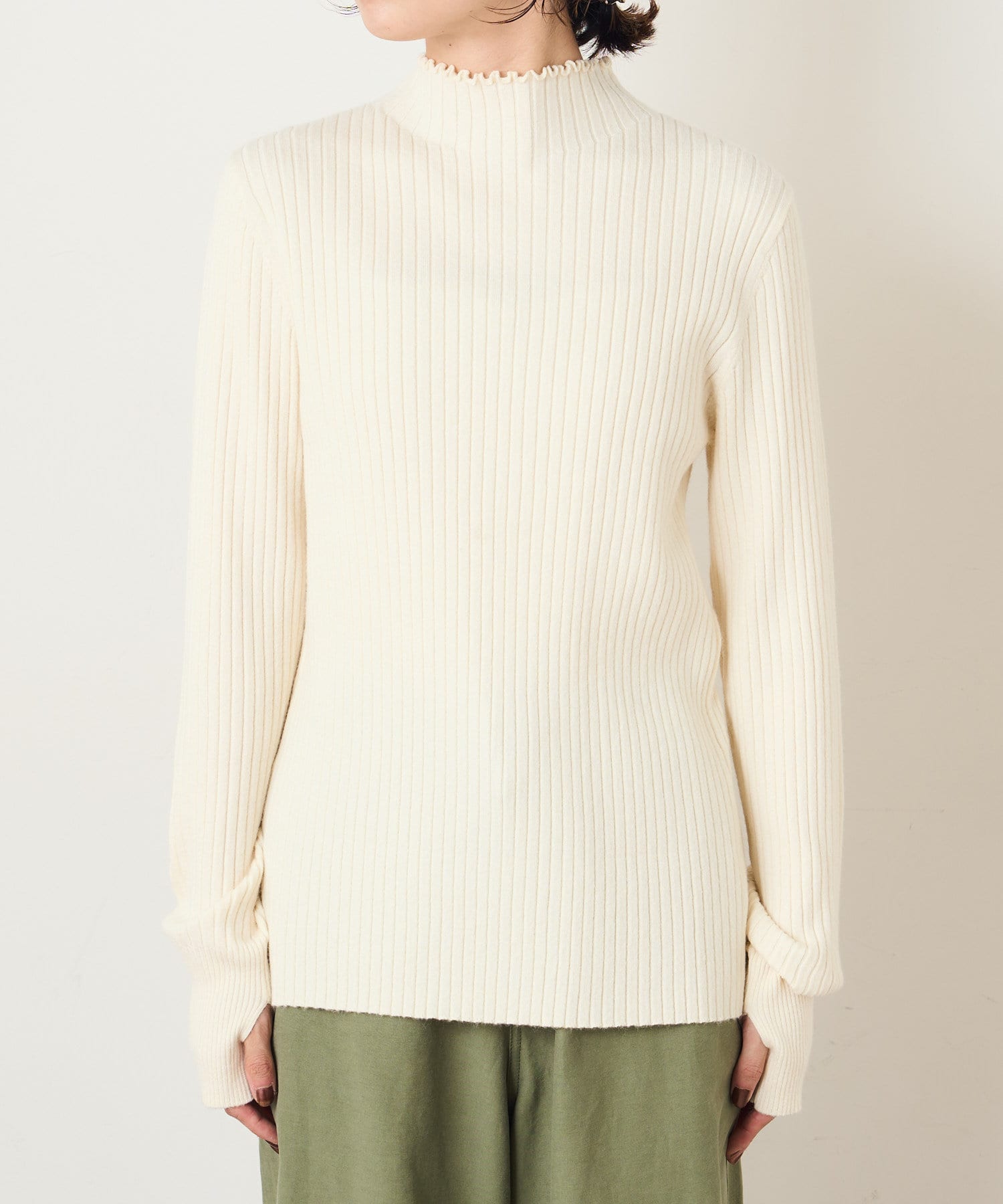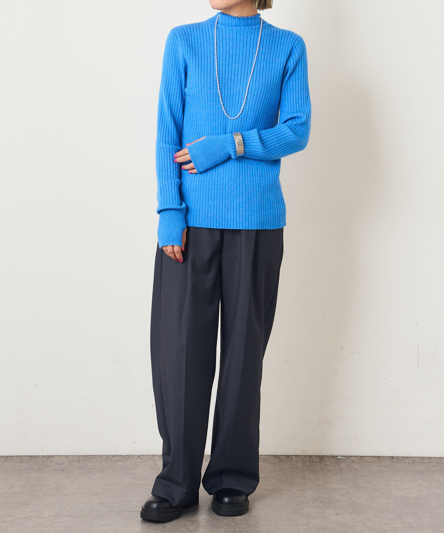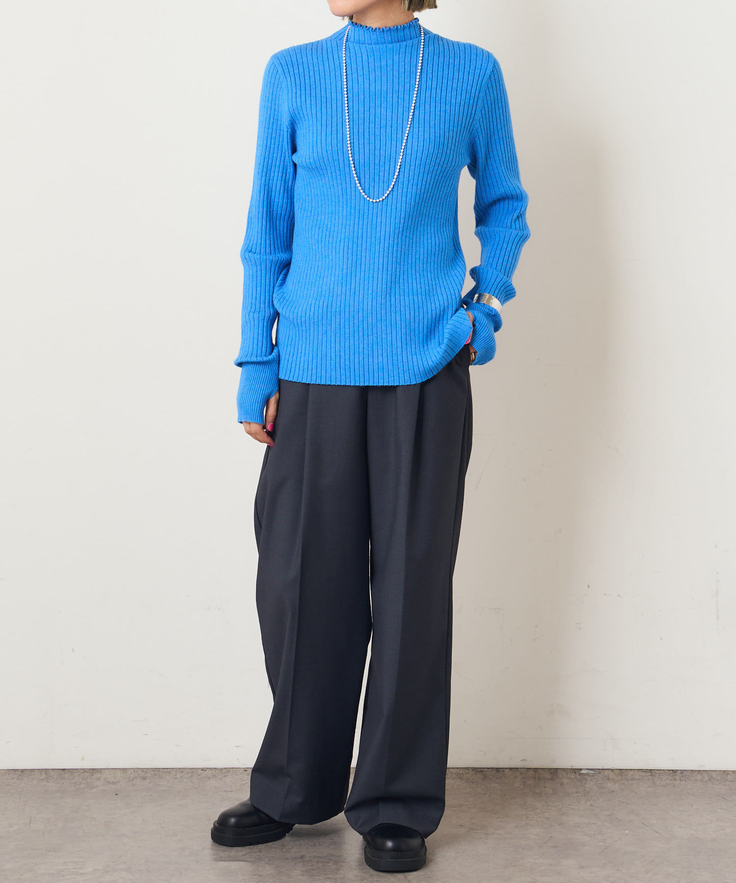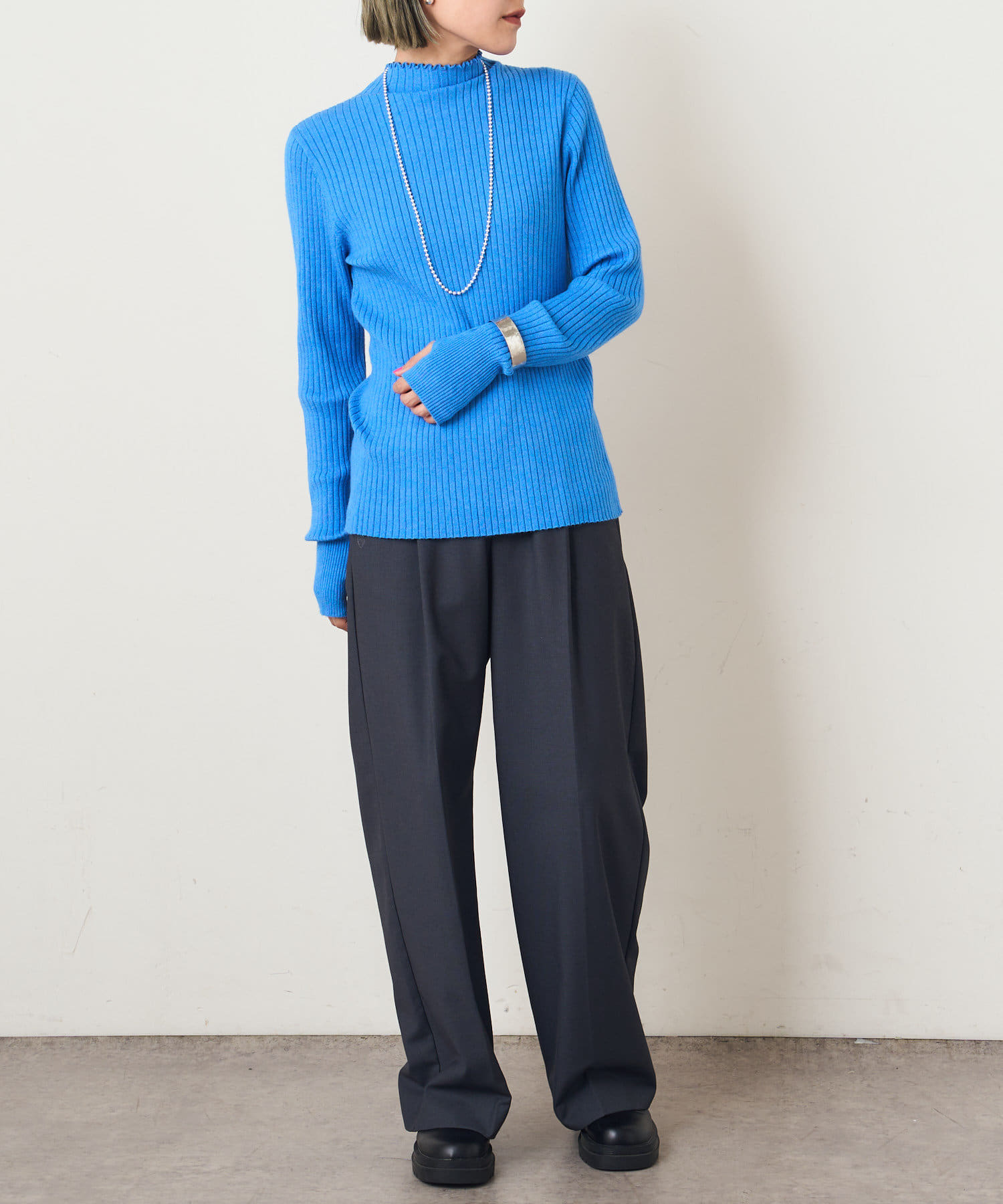 ・しなやかにネックラインに沿うハイネックニットで、程よいフィット感が魅力な一枚。