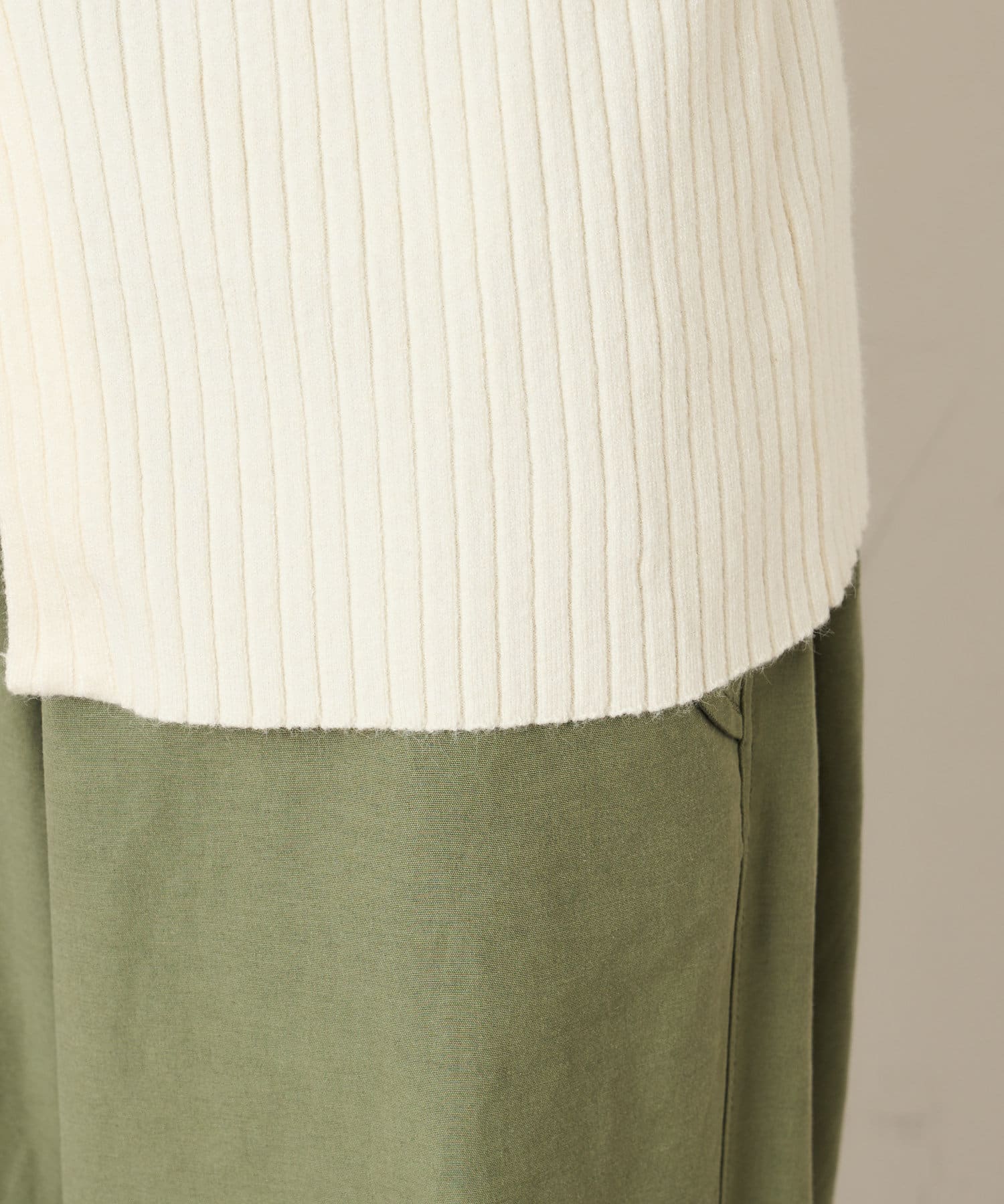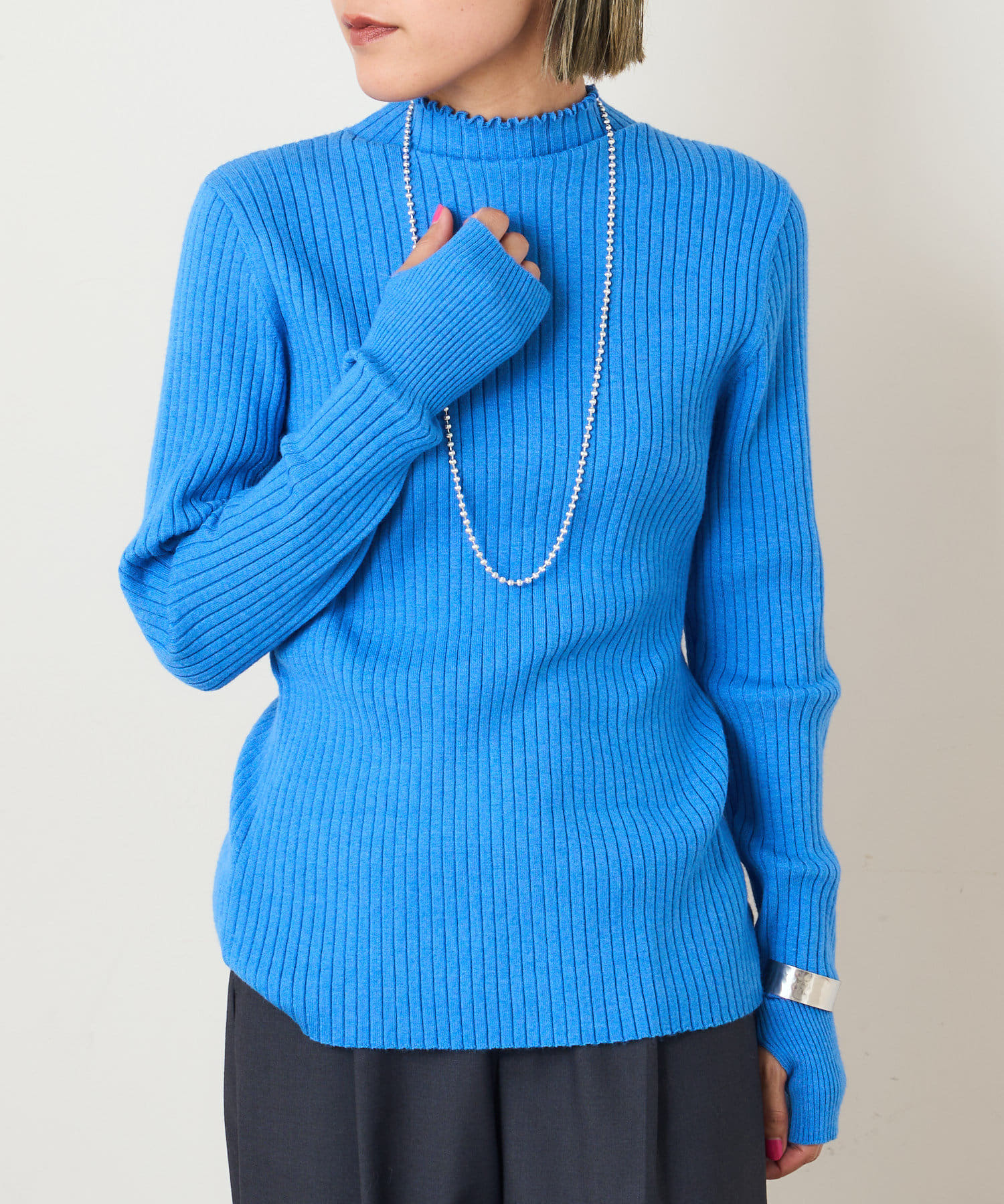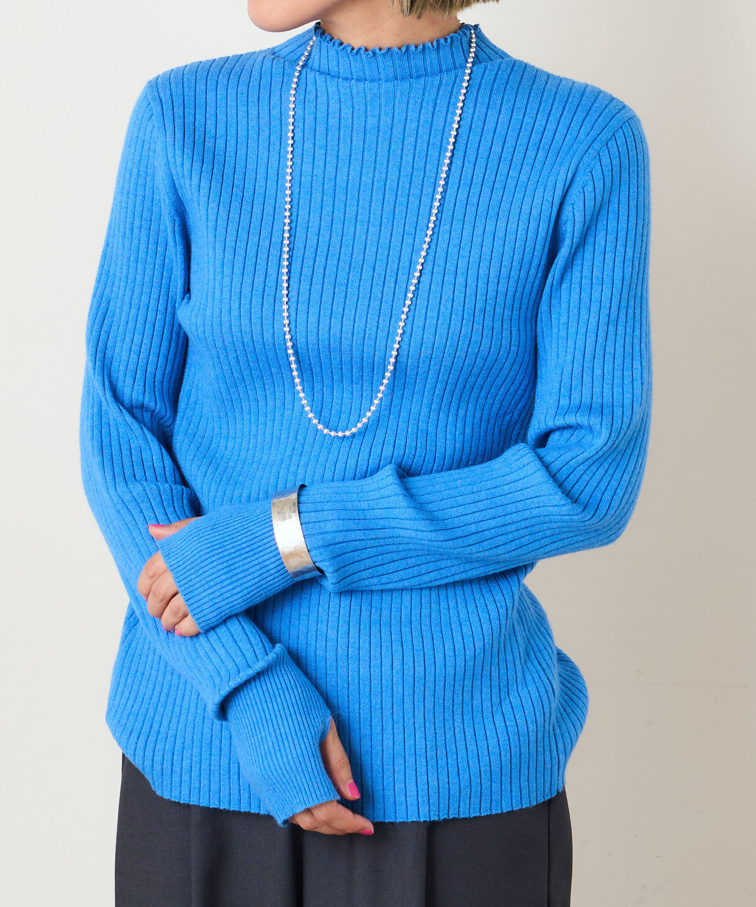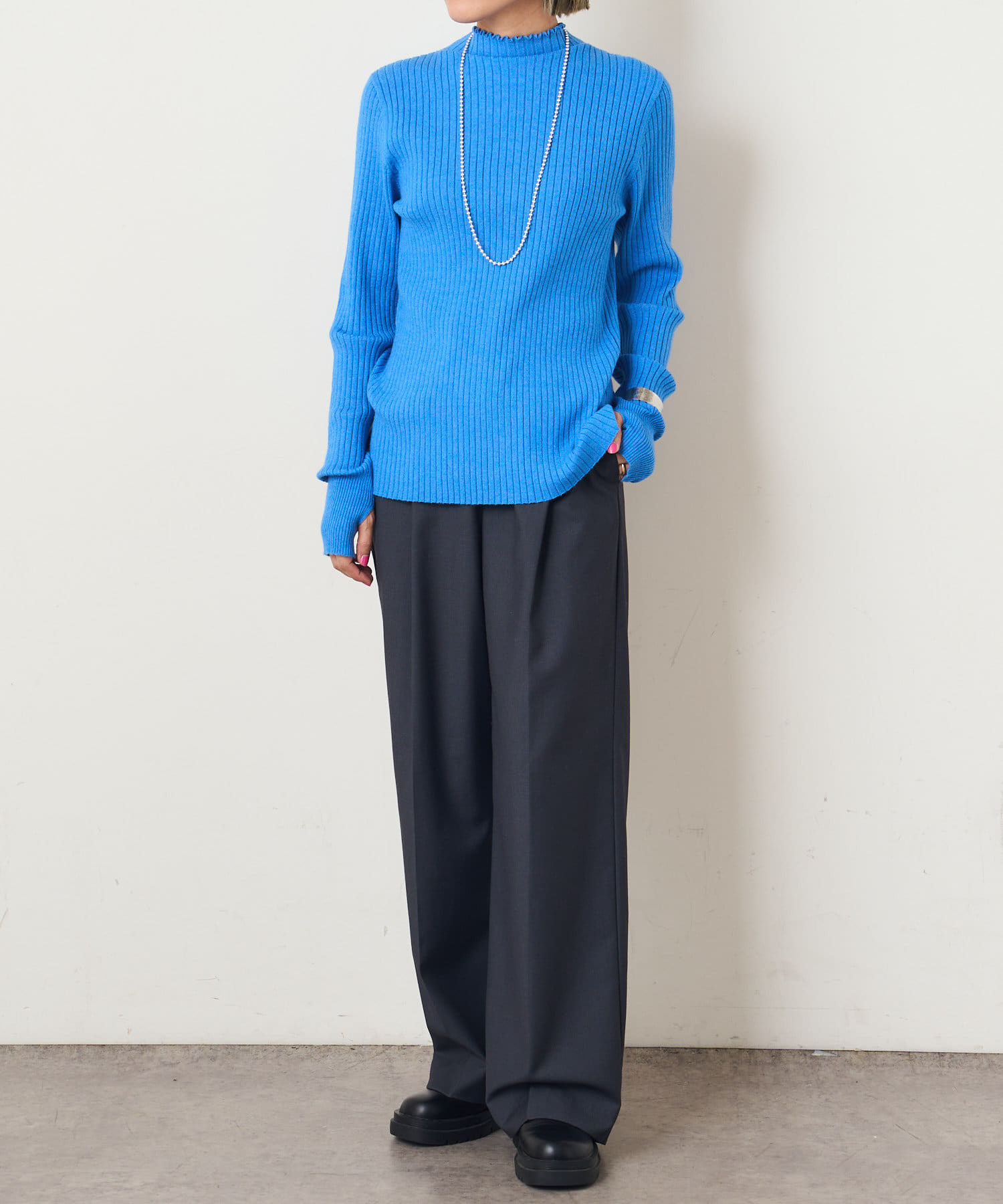 ・しなやかにネックラインに沿うハイネックニットで、程よいフィット感が魅力な一枚。