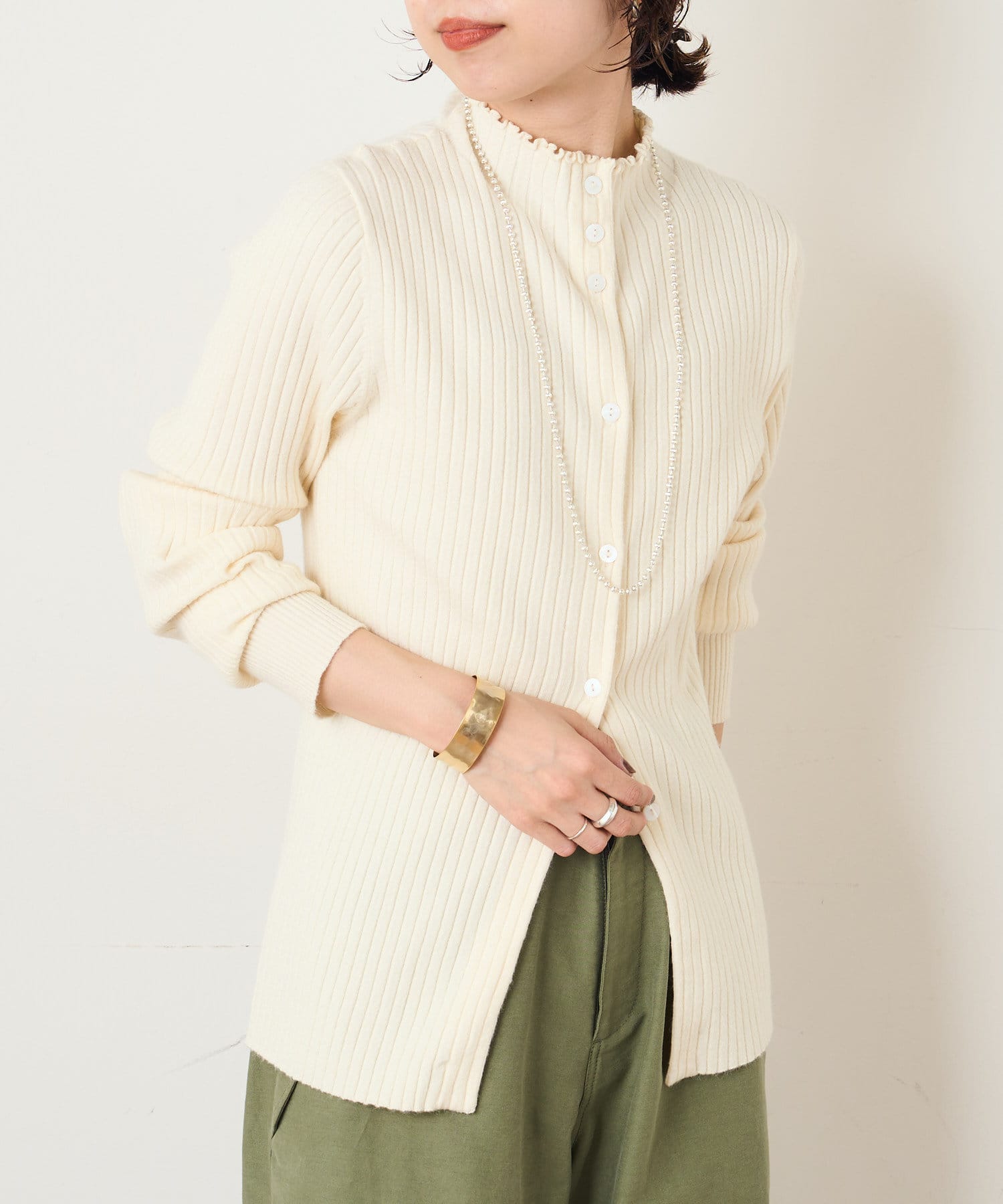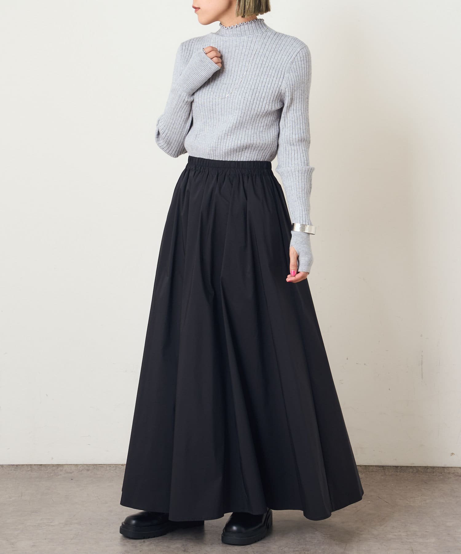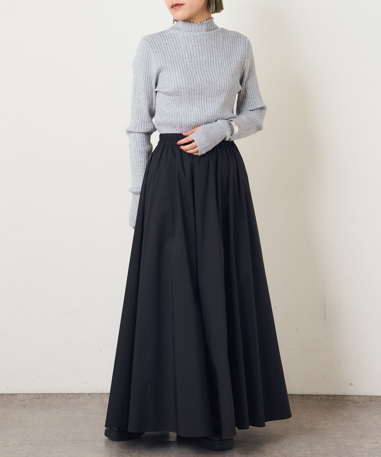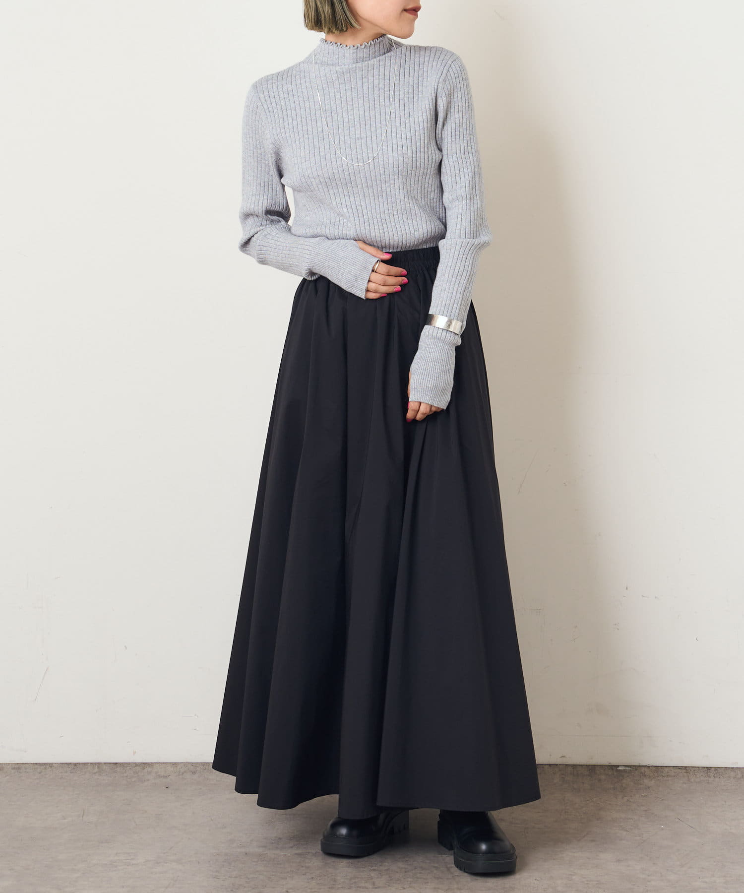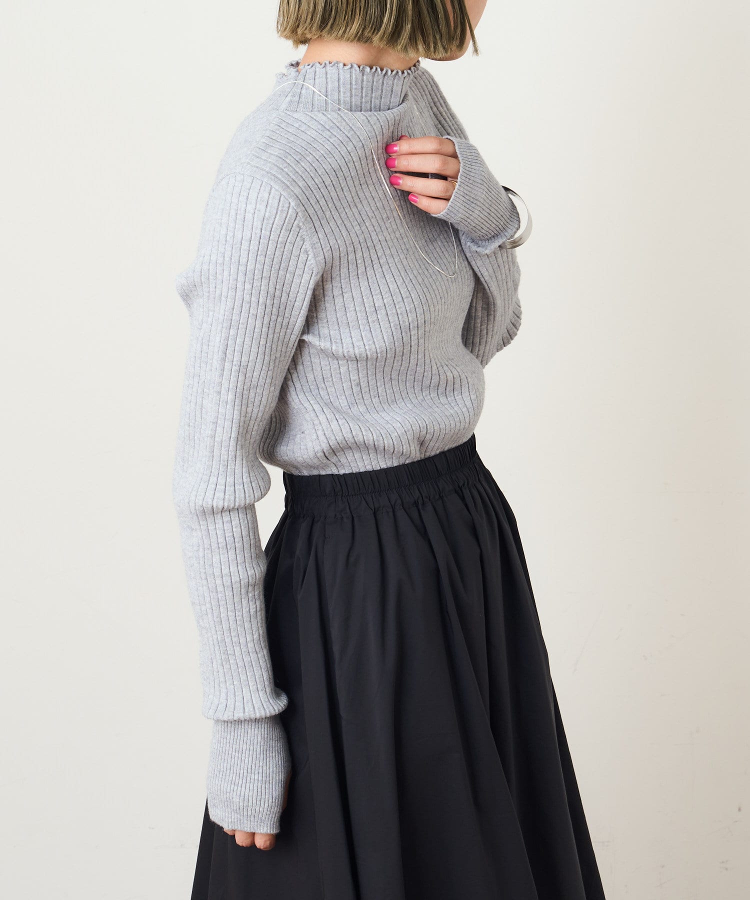 ・しなやかにネックラインに沿うハイネックニットで、程よいフィット感が魅力な一枚。