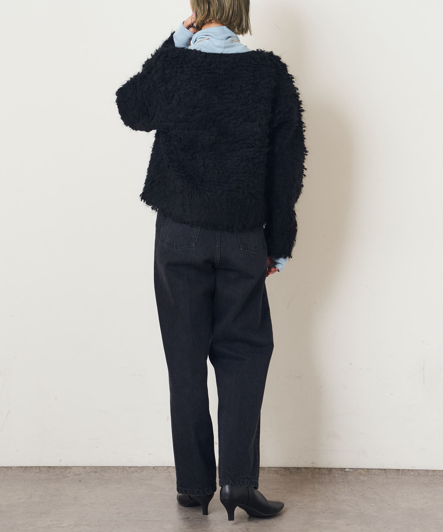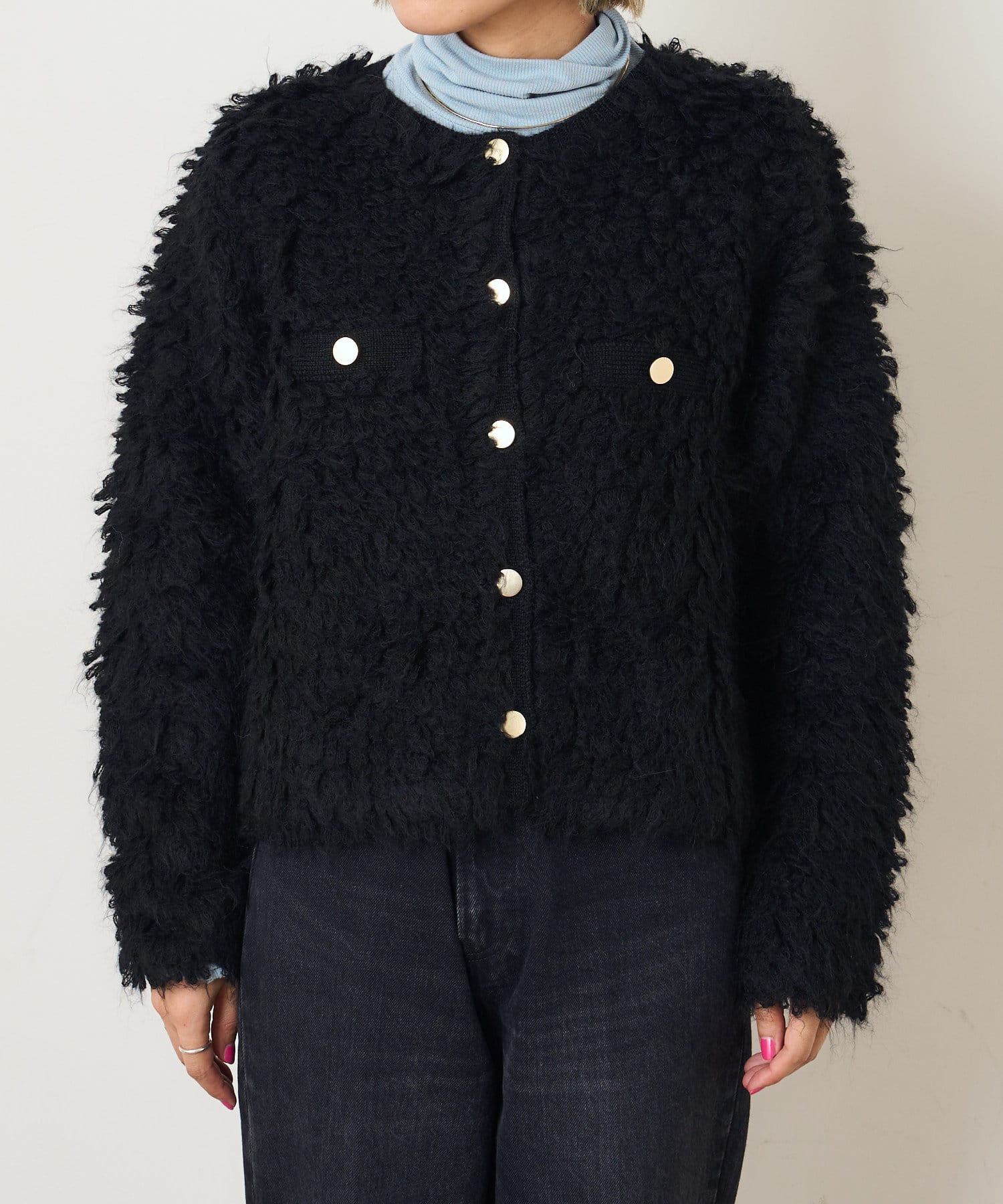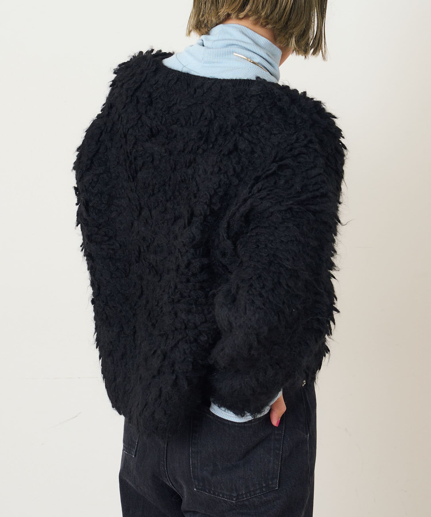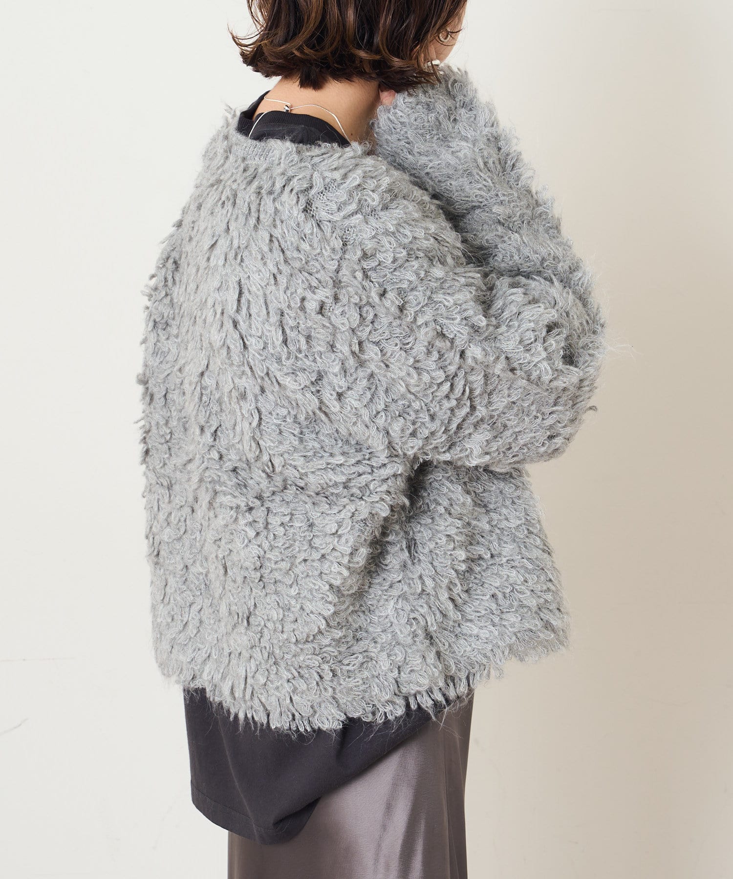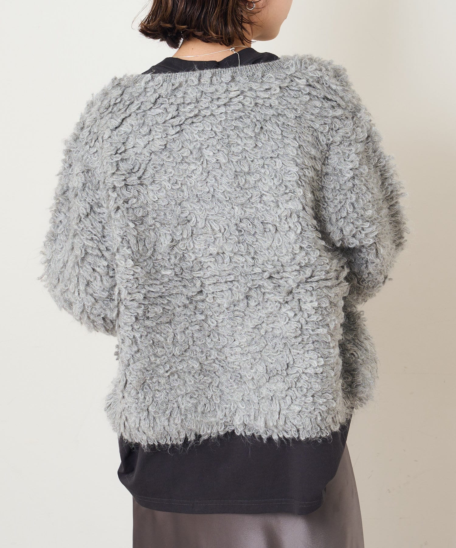 ・ループ編みのボリュームと丸みのあるシルエットが可愛いカーディガン。身丈がやや短めなのでボリュームがあっても重くならずにバランスの取りやすい一着。