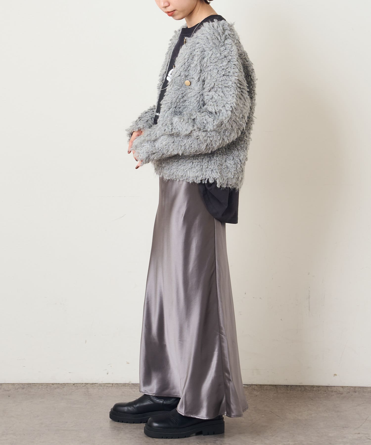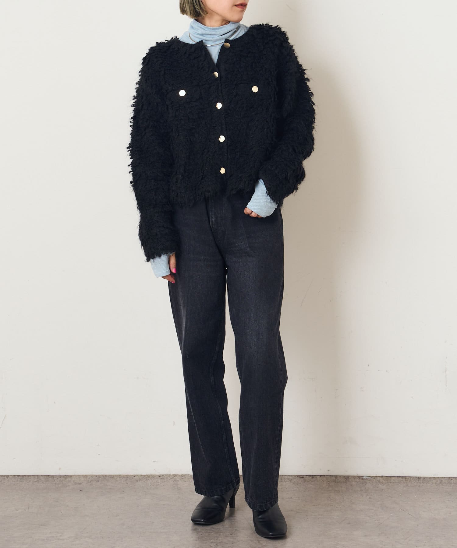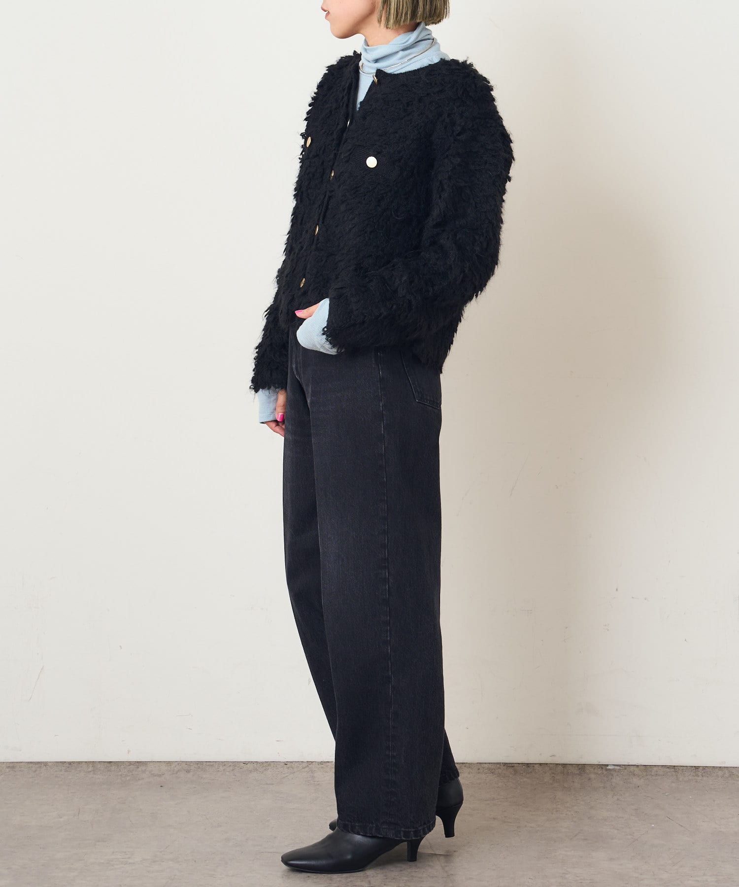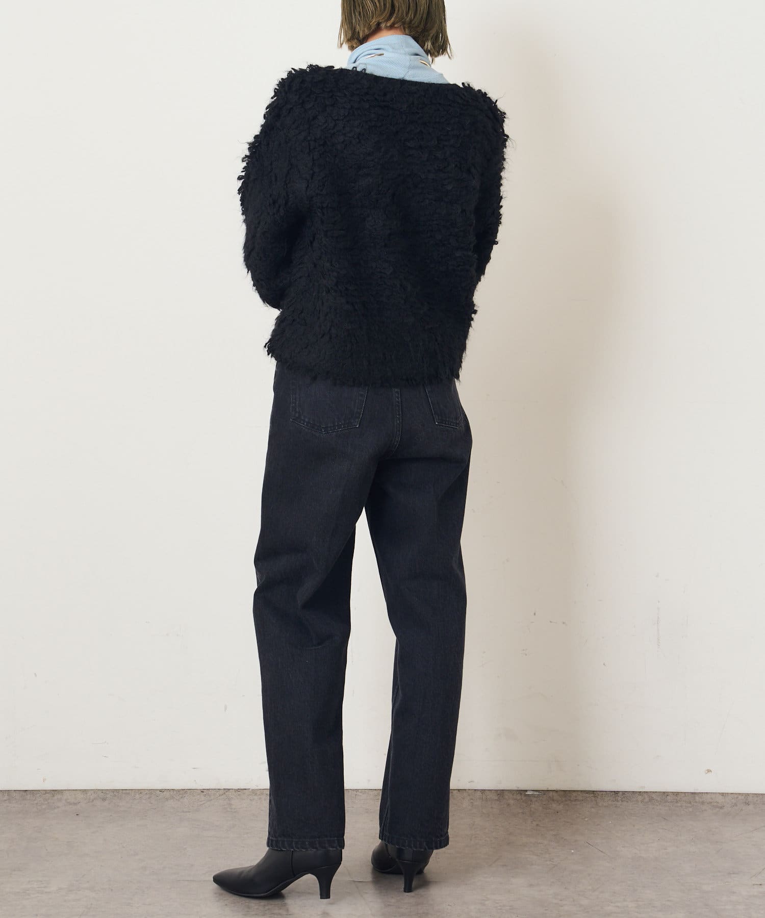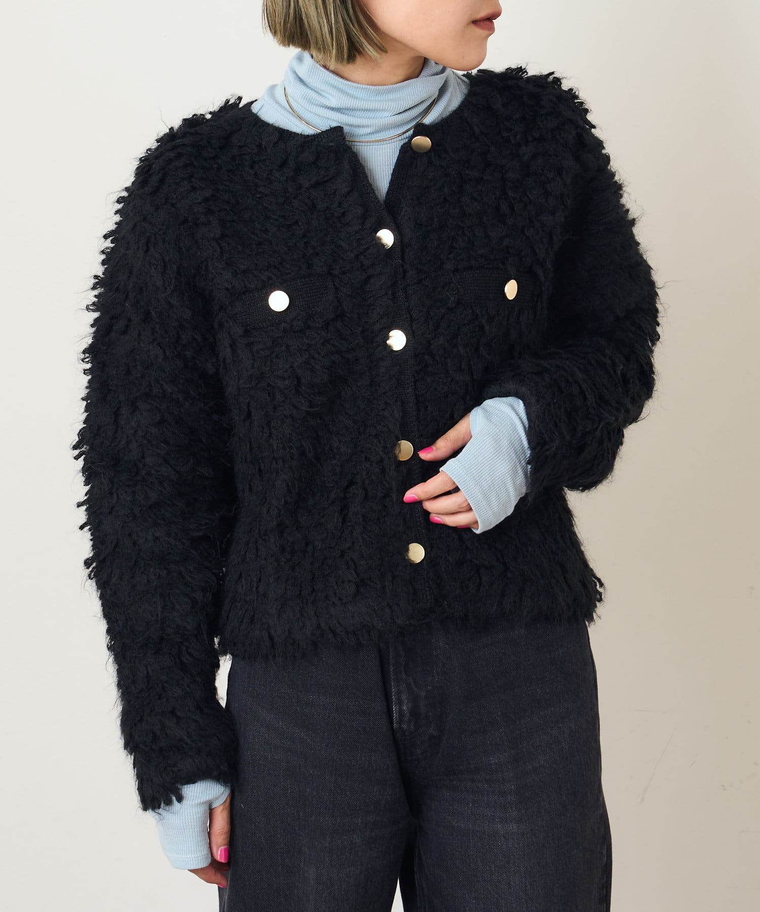 ・ループ編みのボリュームと丸みのあるシルエットが可愛いカーディガン。身丈がやや短めなのでボリュームがあっても重くならずにバランスの取りやすい一着。