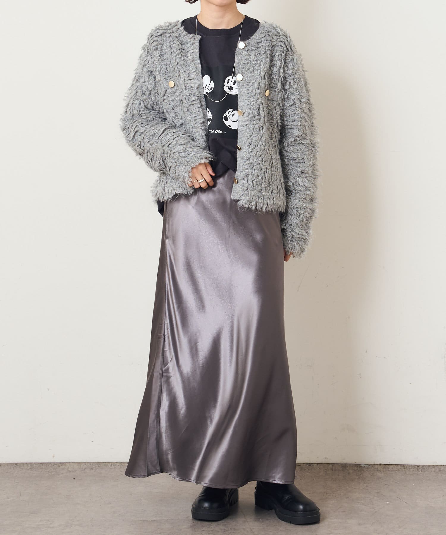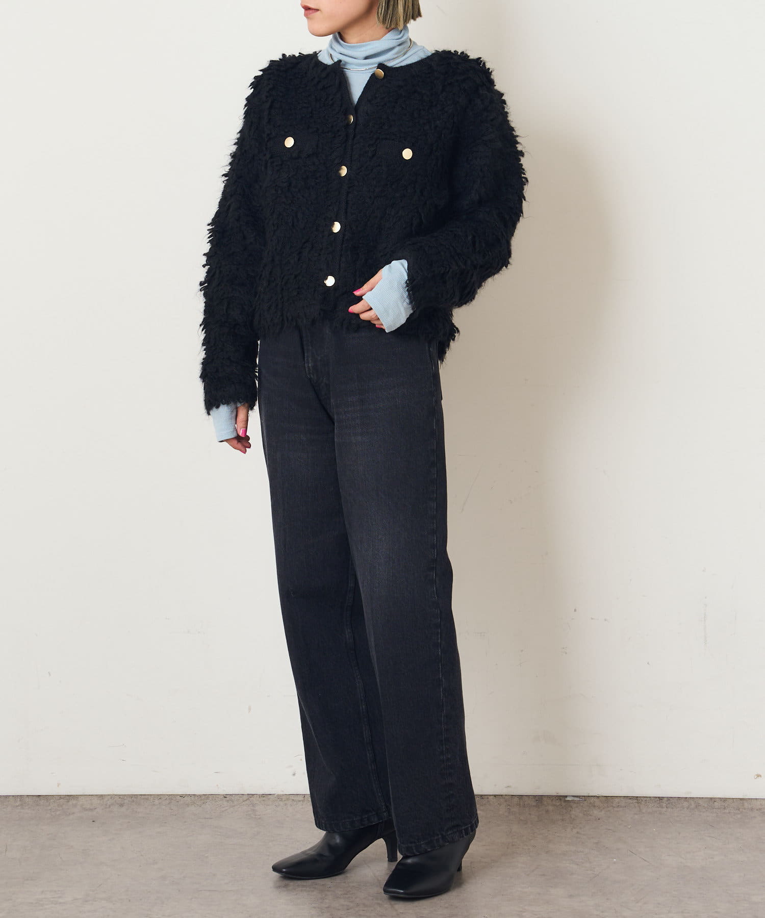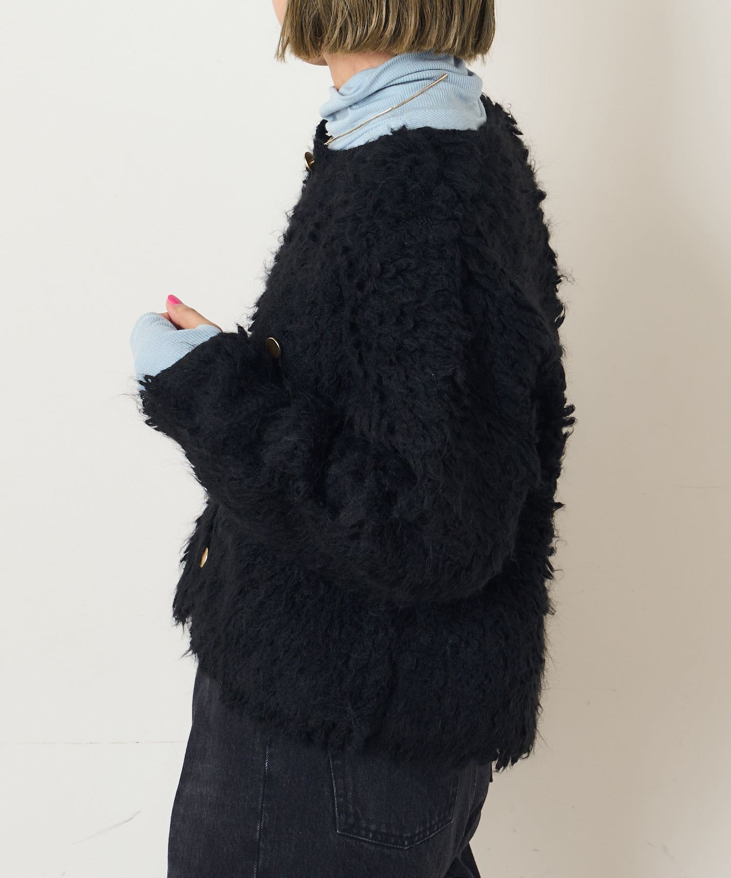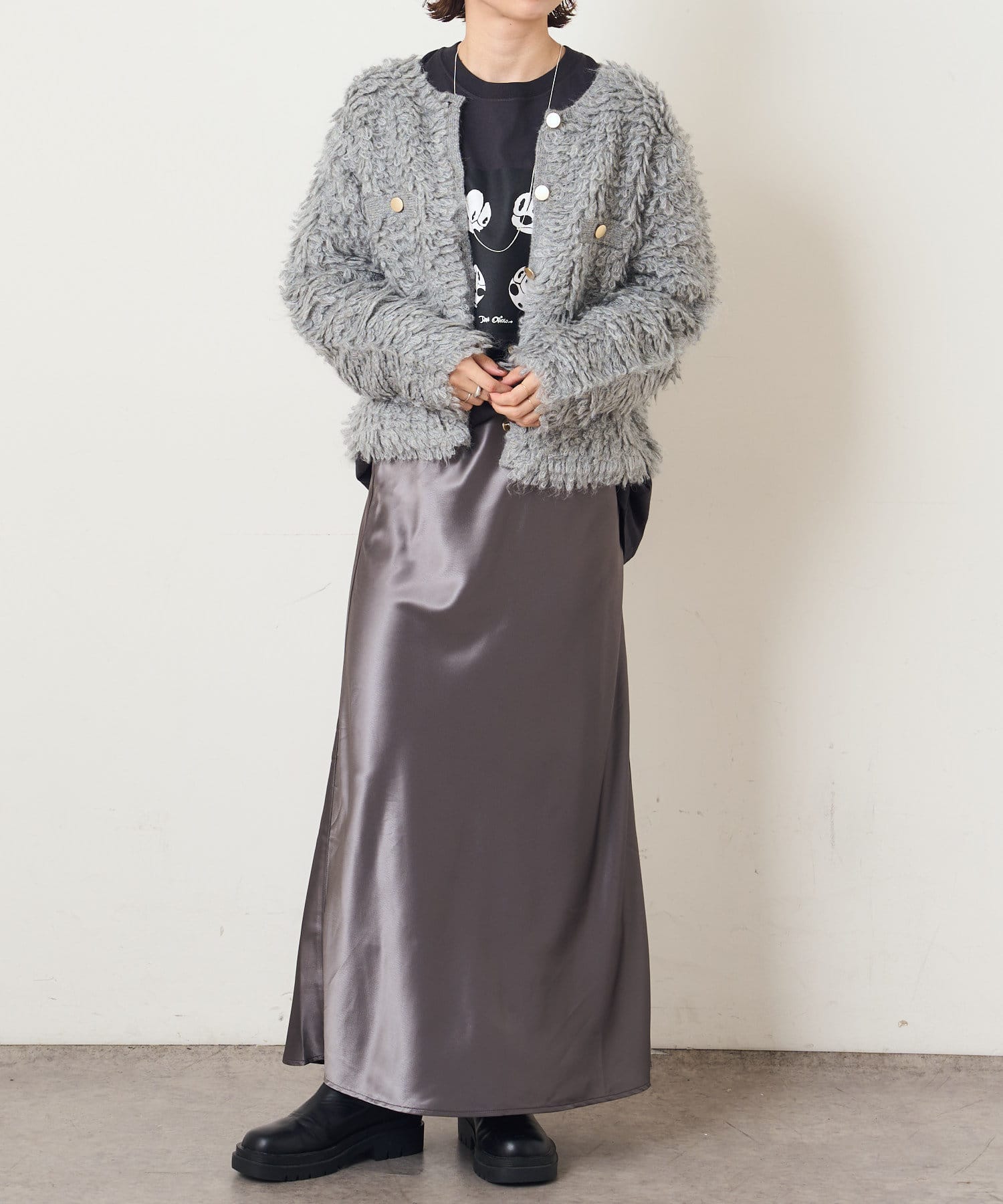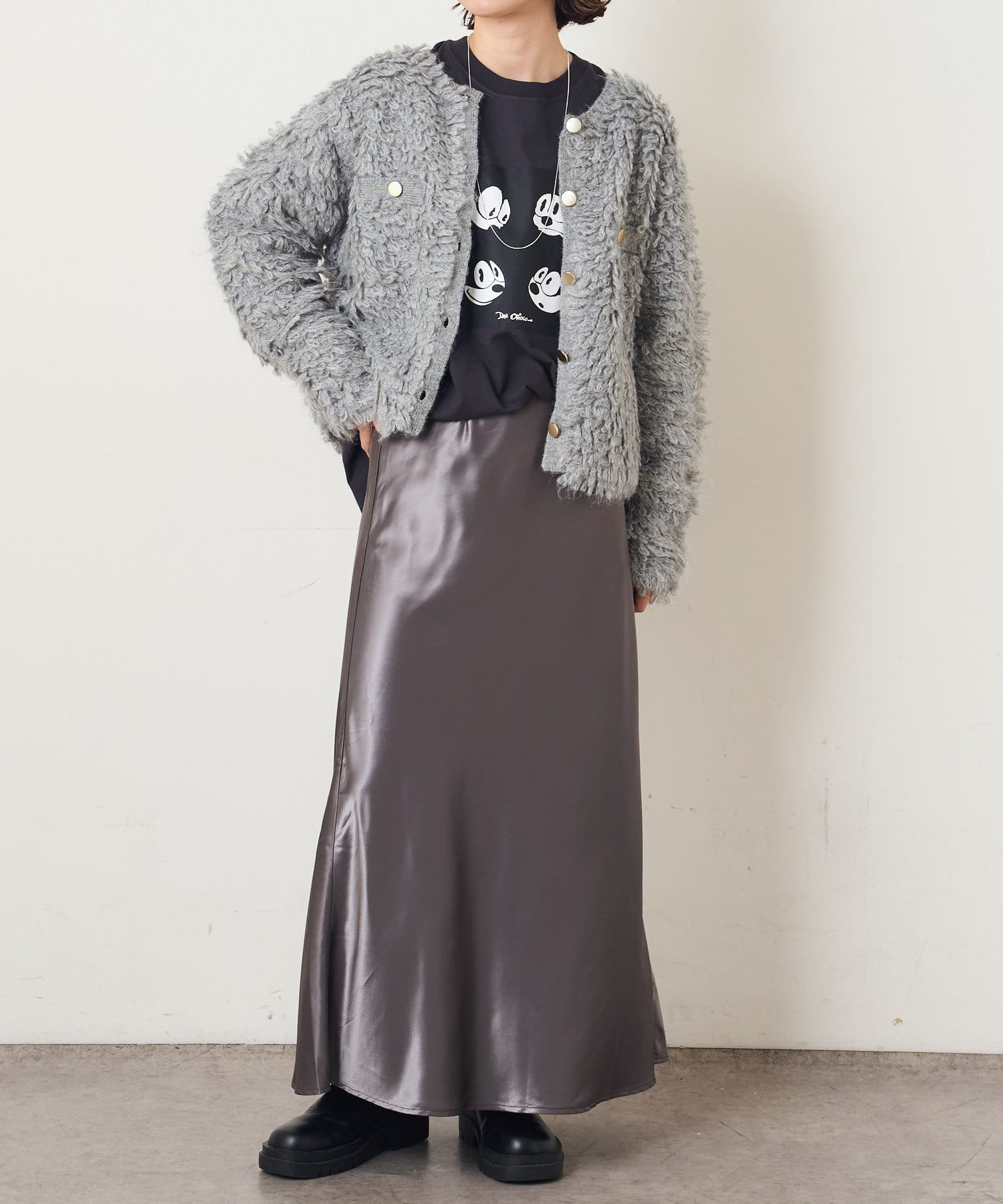 ・ループ編みのボリュームと丸みのあるシルエットが可愛いカーディガン。身丈がやや短めなのでボリュームがあっても重くならずにバランスの取りやすい一着。