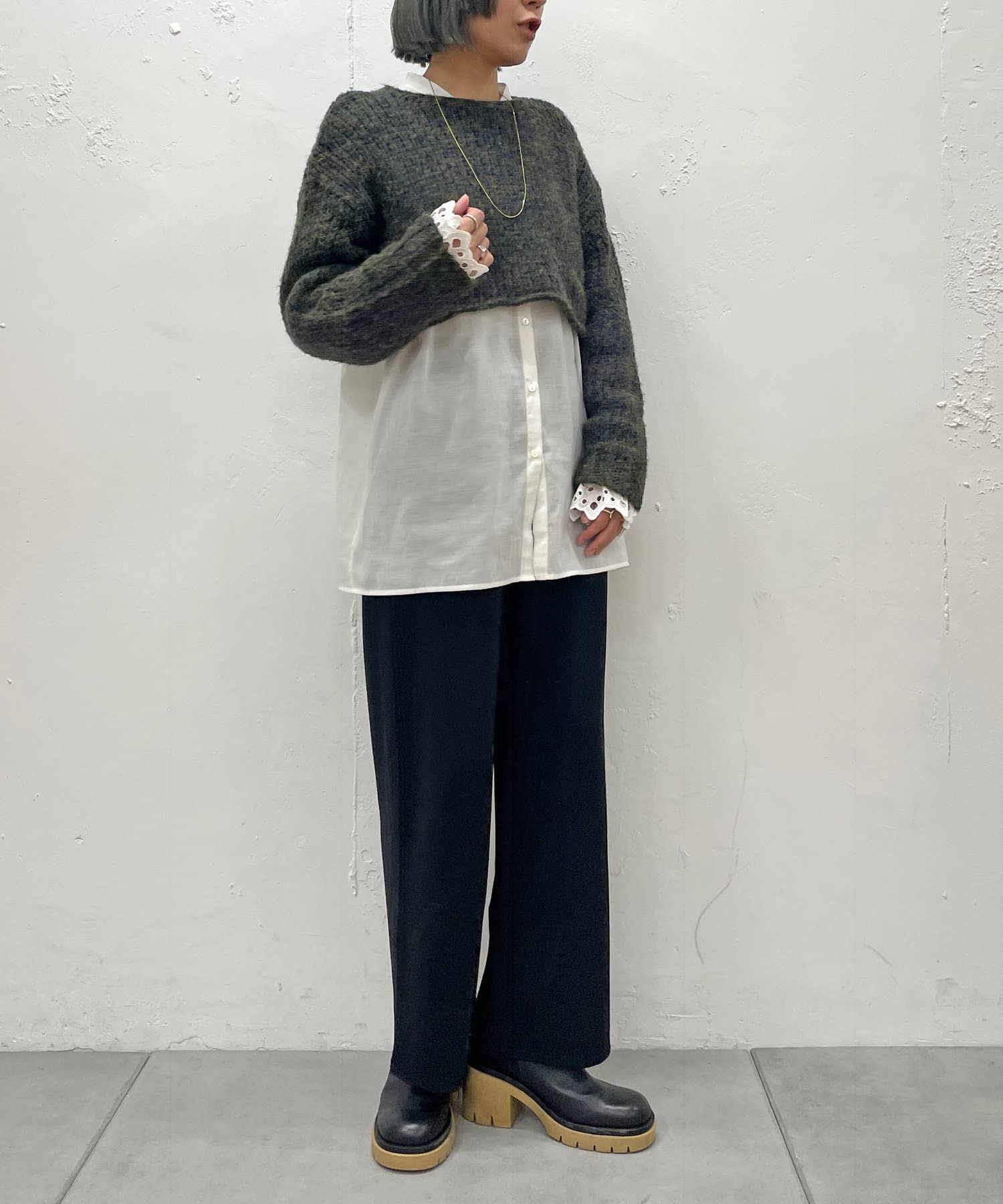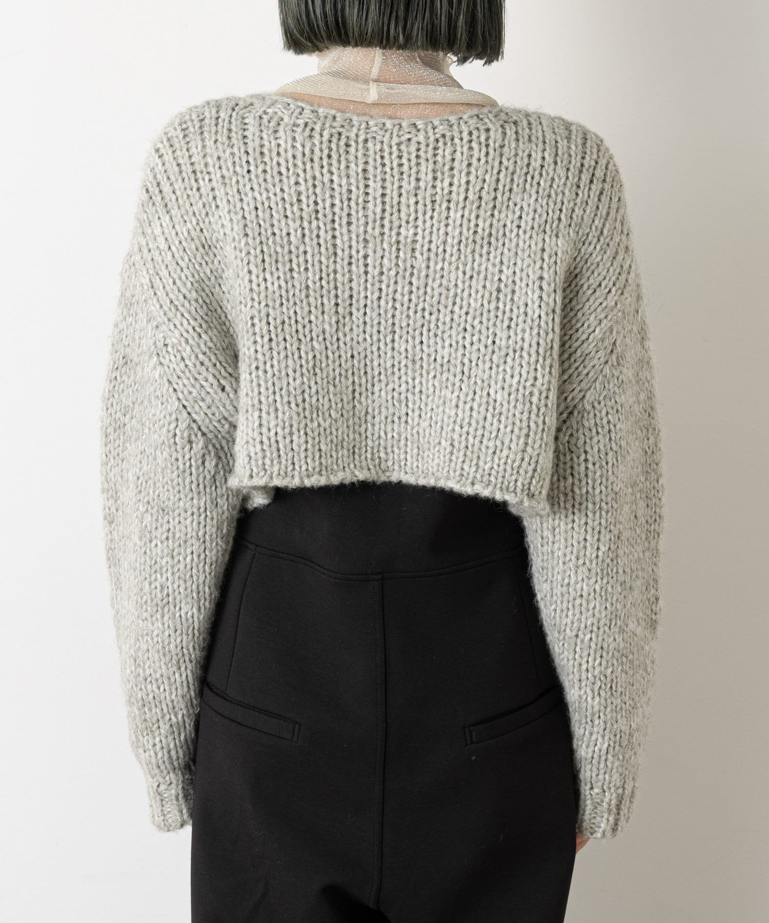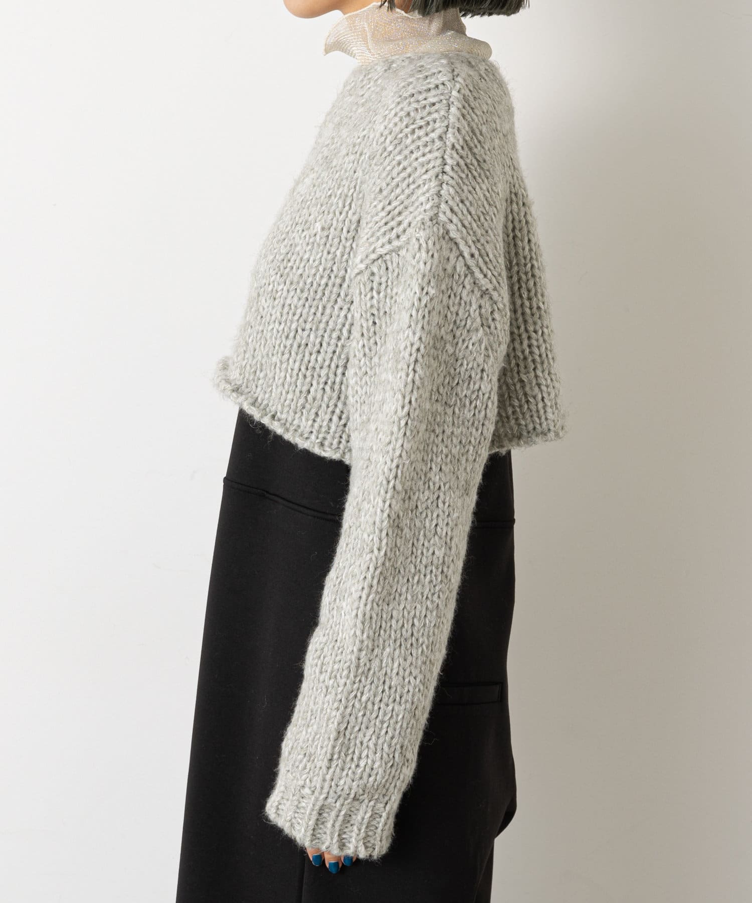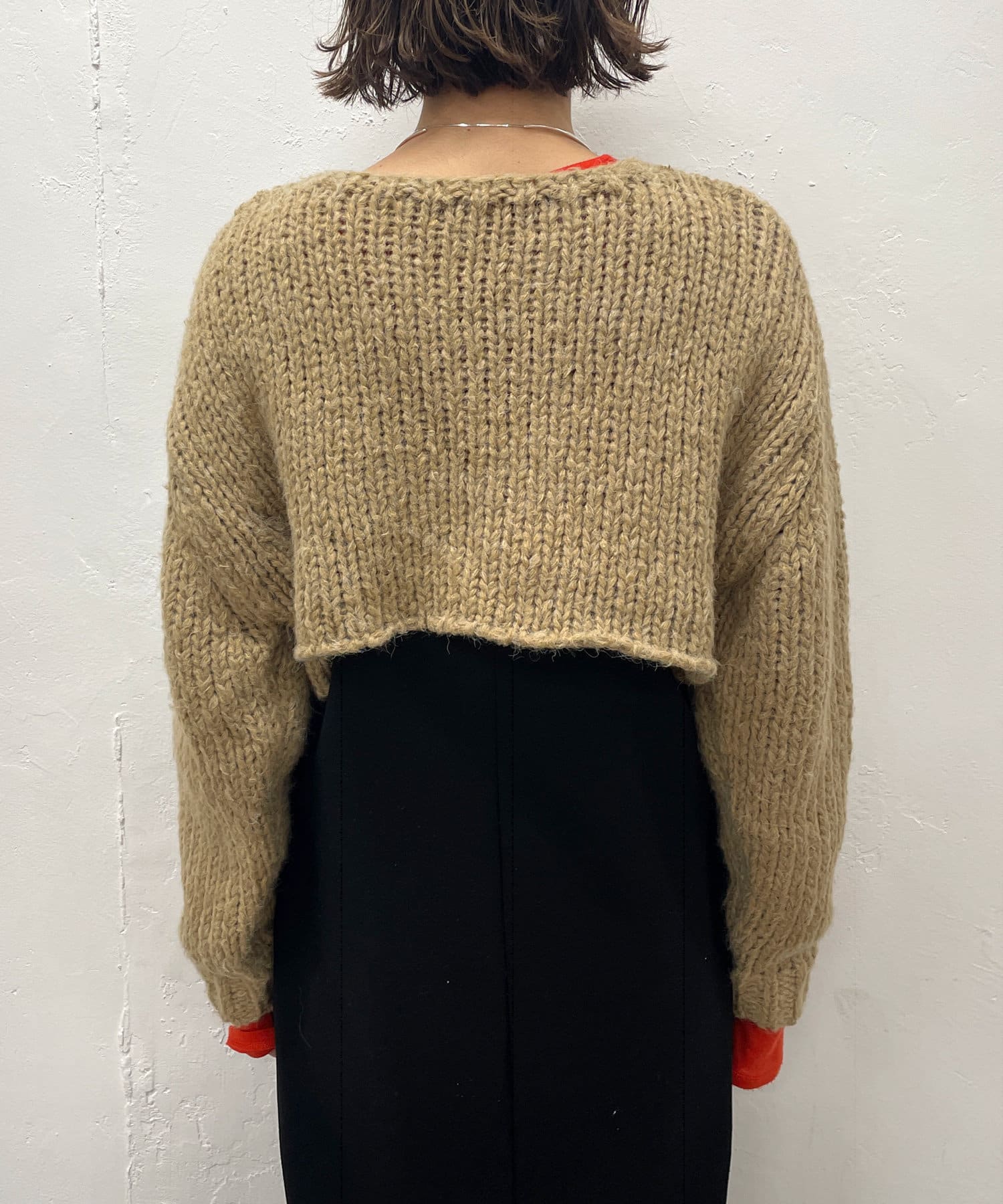 ・シンプルながらショート丈が今年らしい、旬のレイヤードスタイルが楽しめるショートニット。