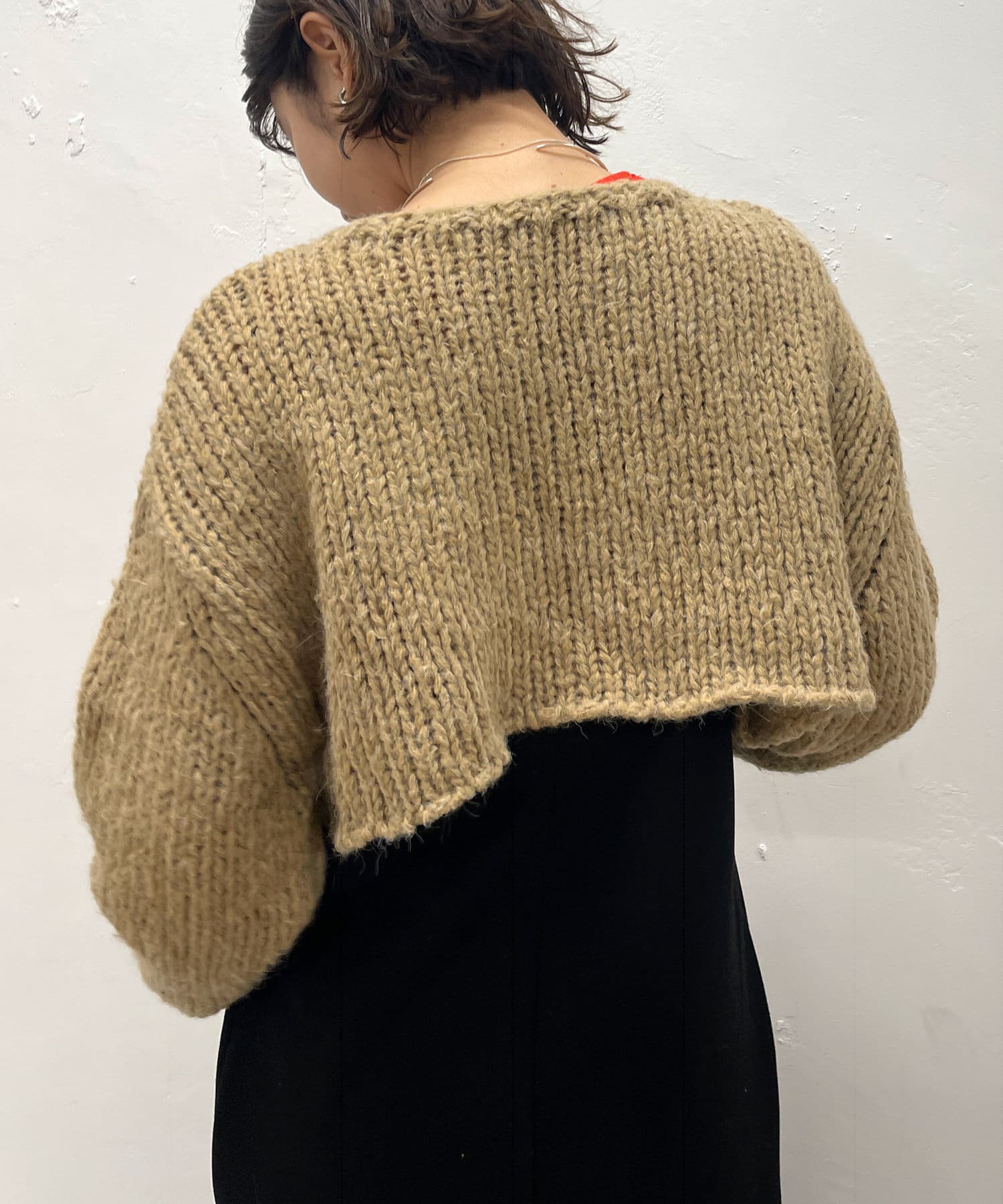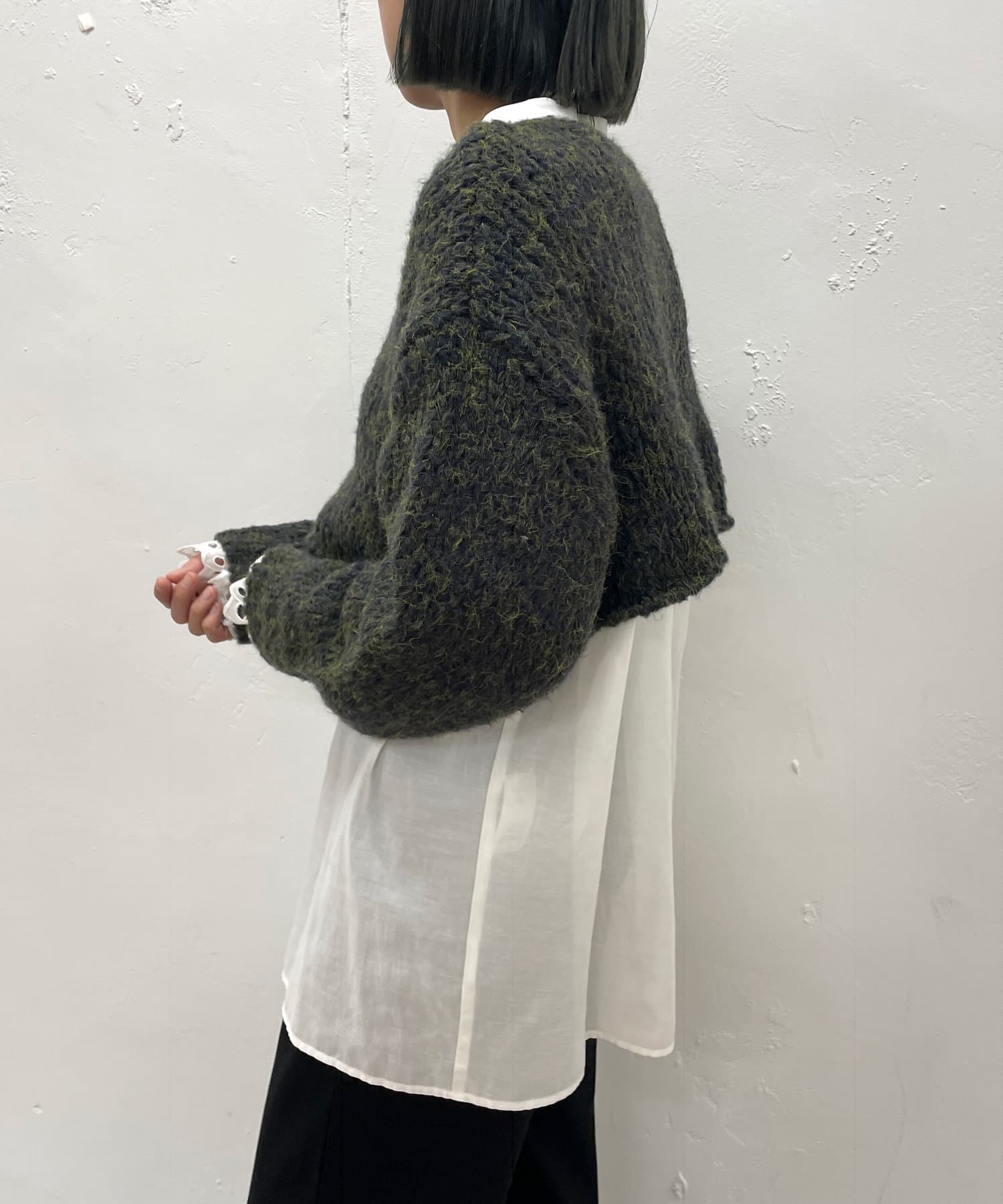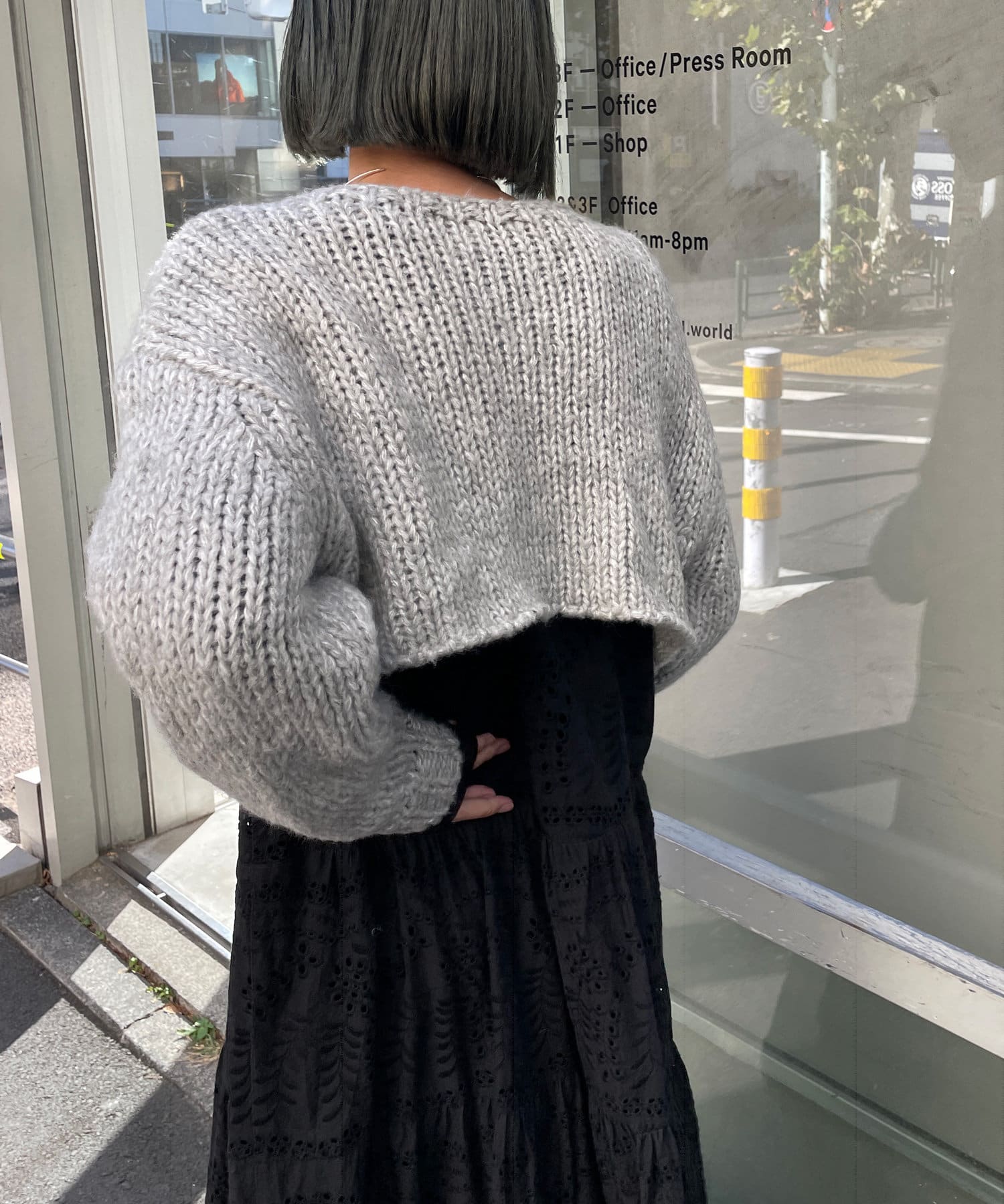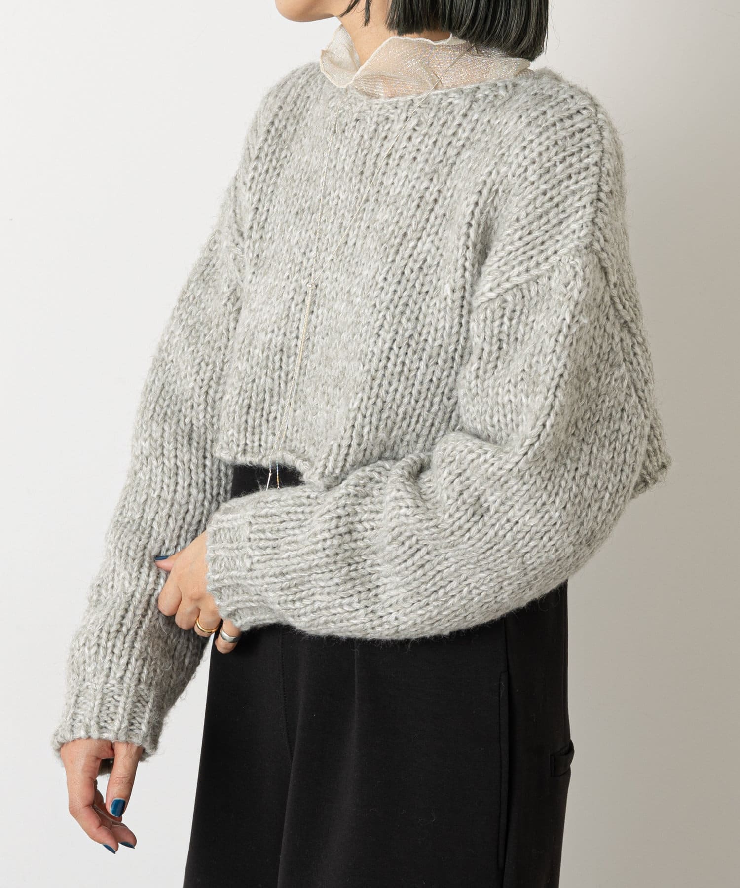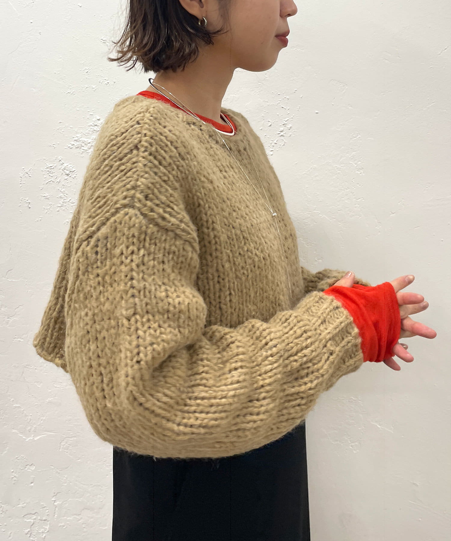 ・シンプルながらショート丈が今年らしい、旬のレイヤードスタイルが楽しめるショートニット。
