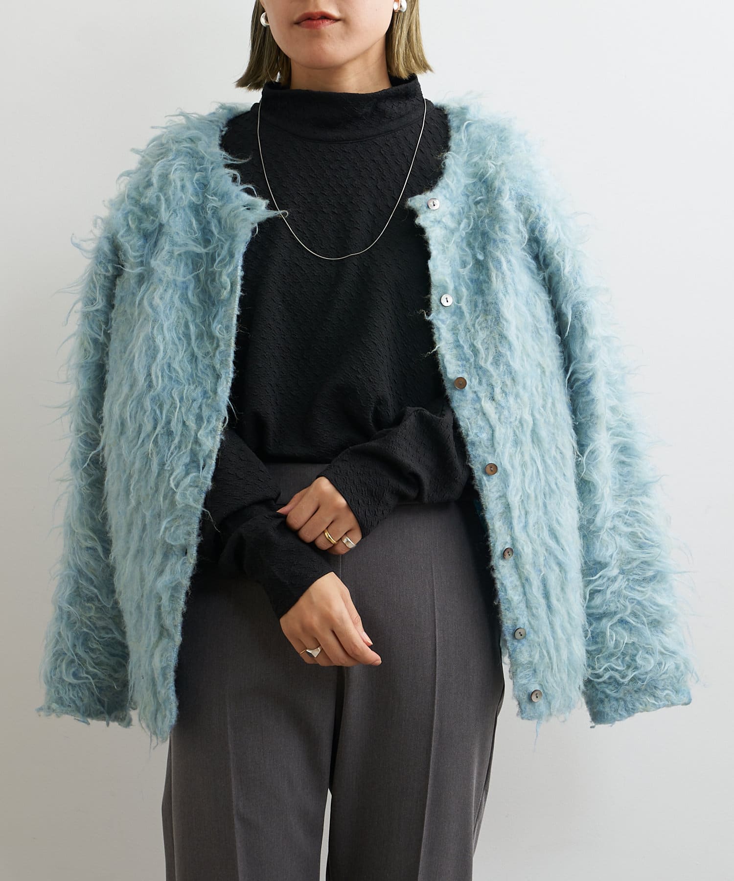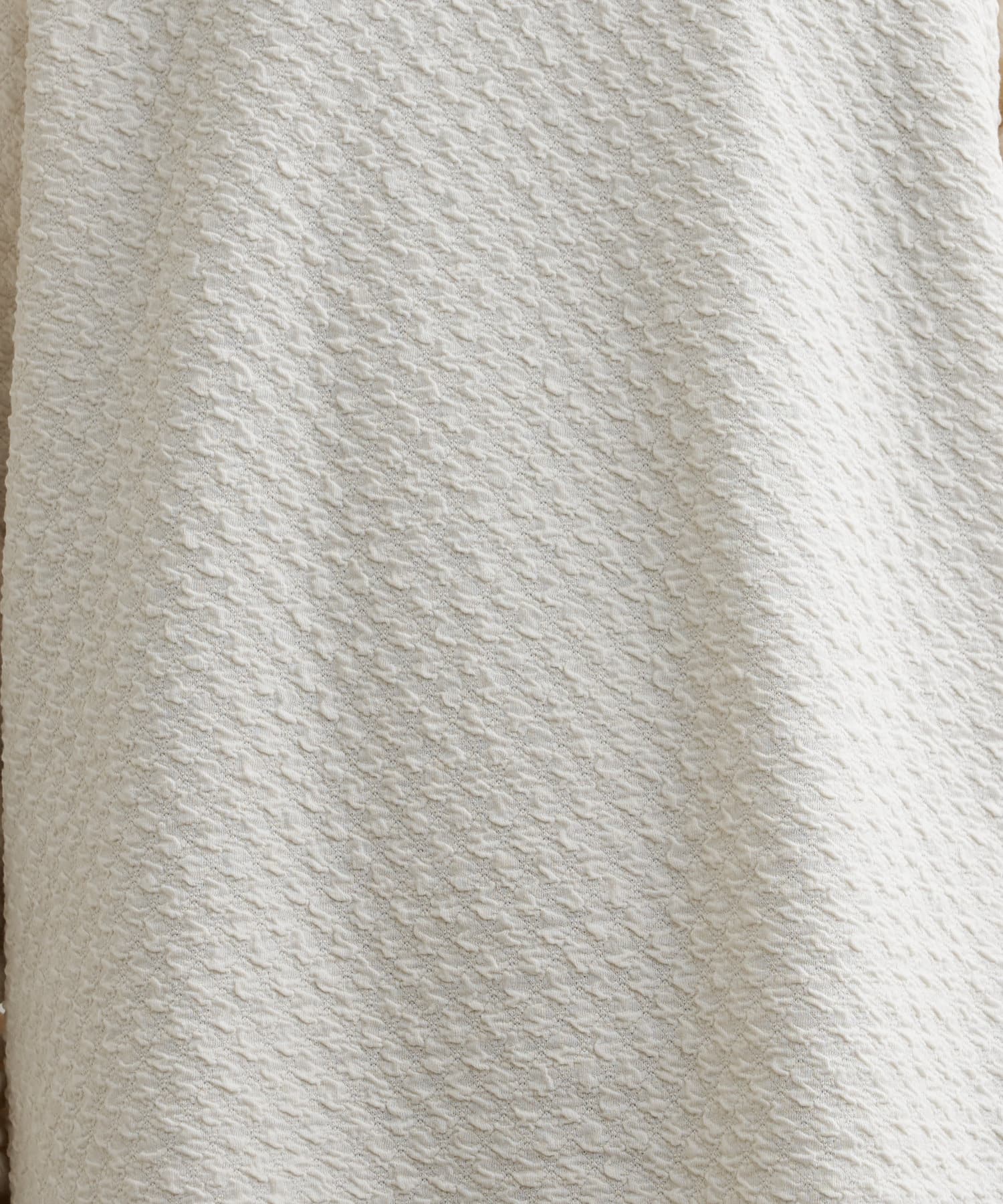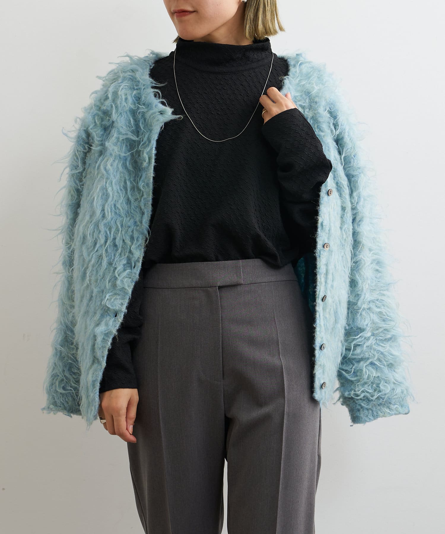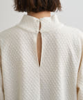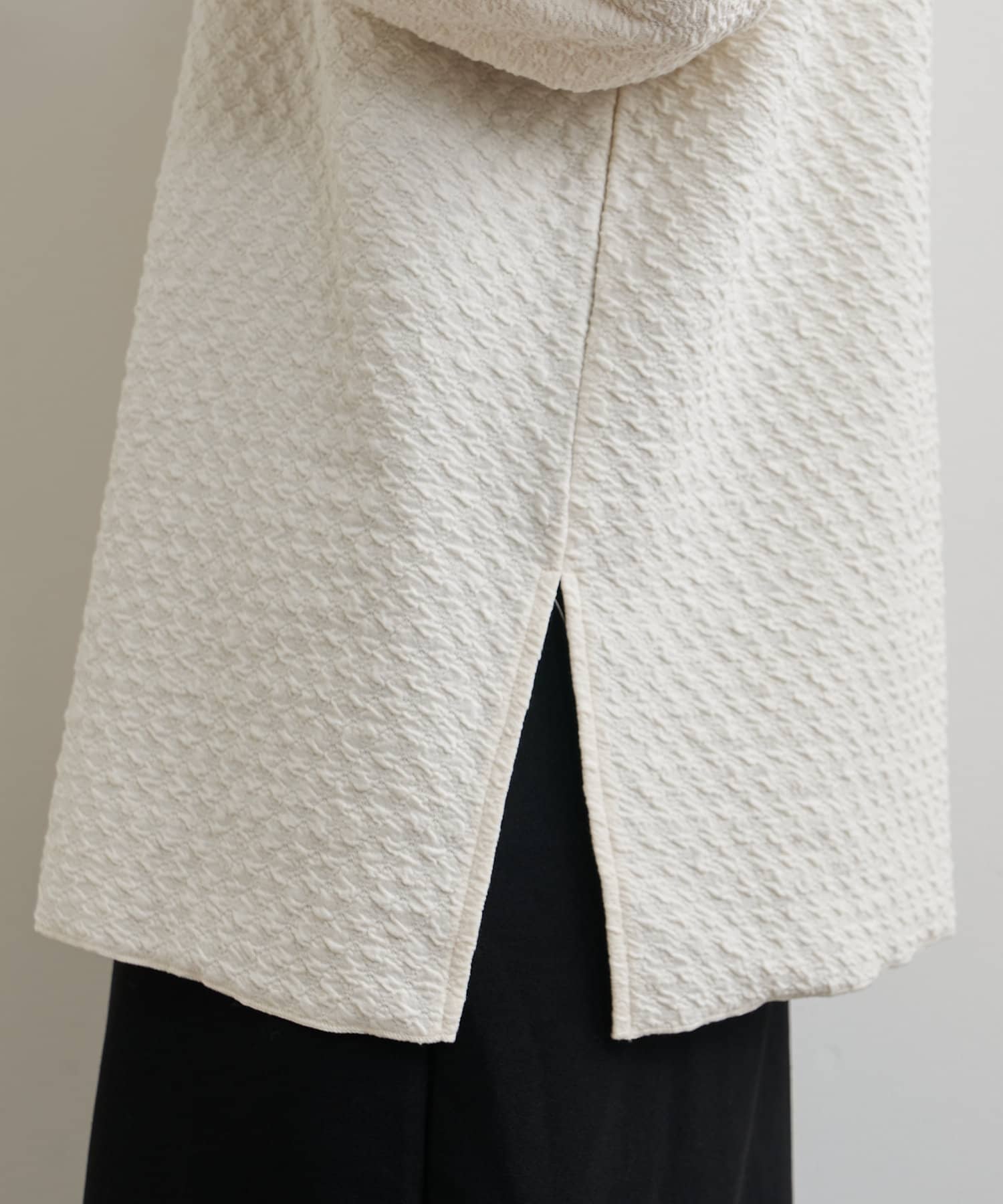 ・ぽこぽことした凹凸のある素材が特徴的で、ニットとの合わせはもちろん一枚でも様になるハイネックプルオーバー。