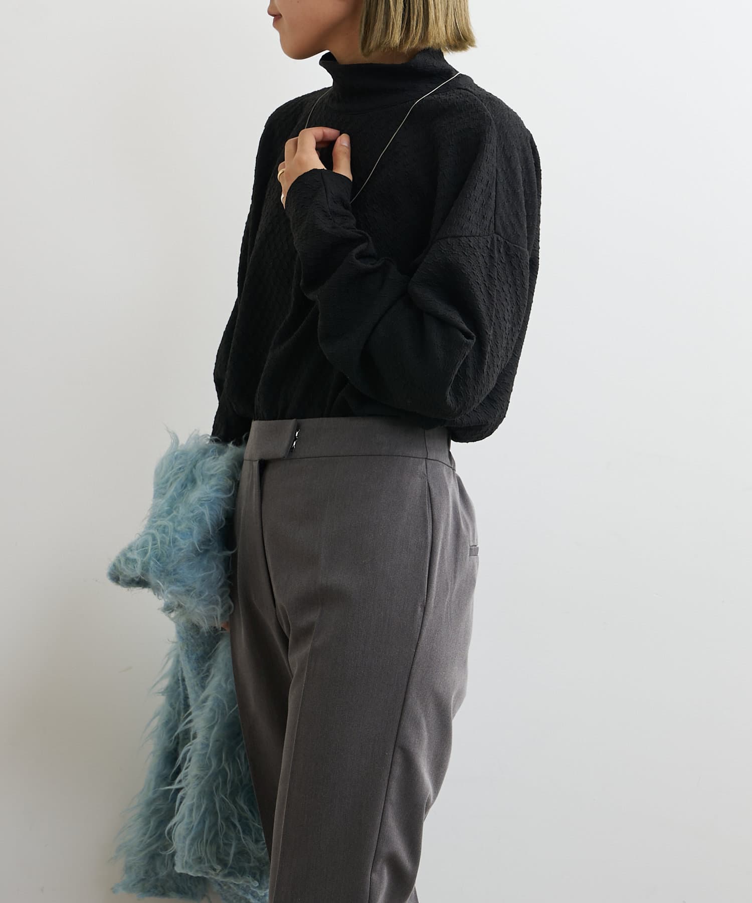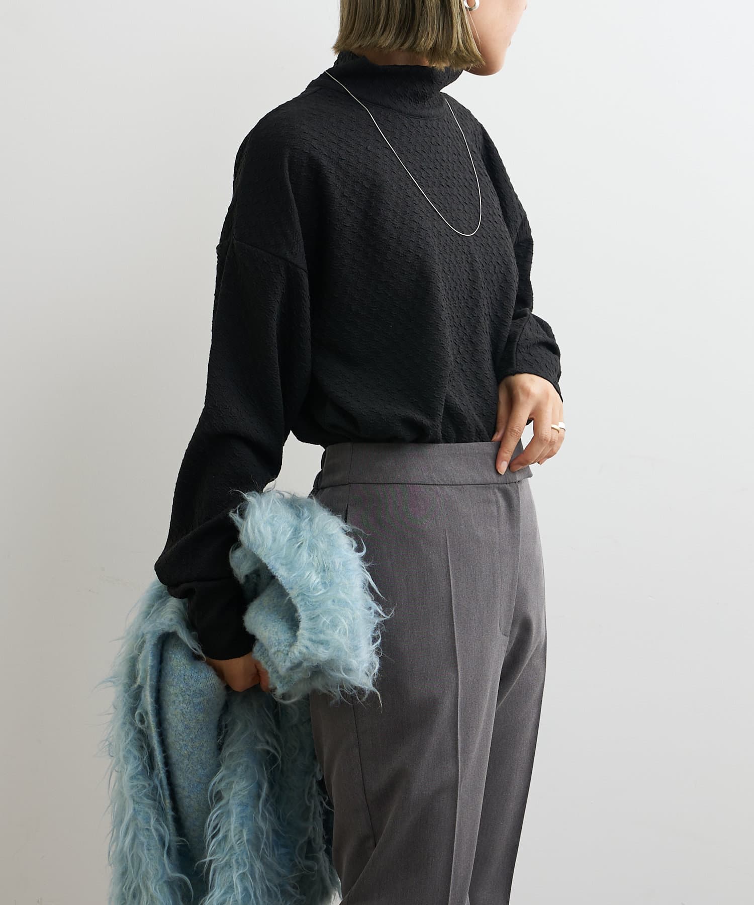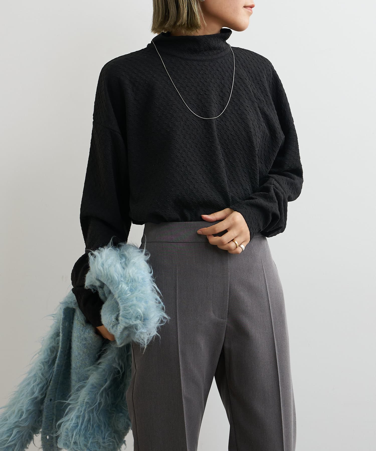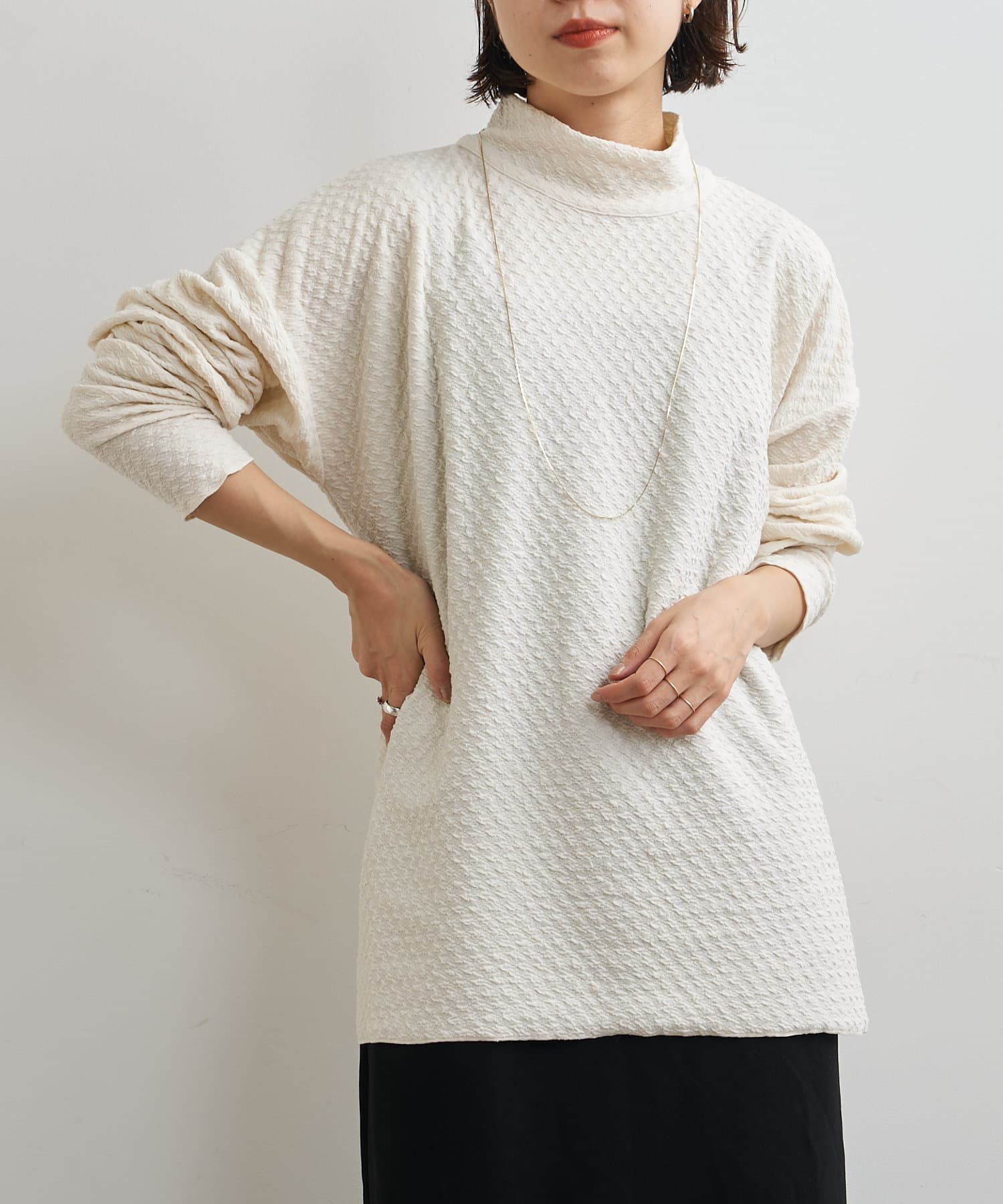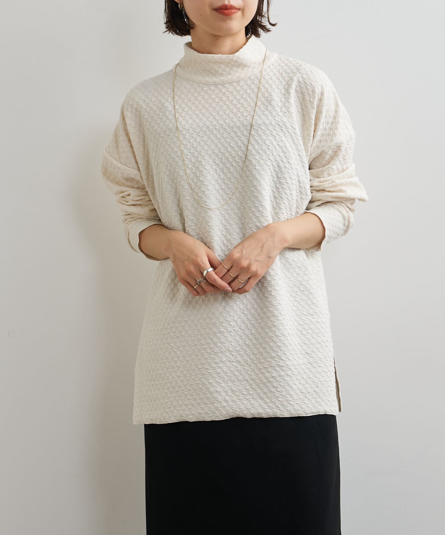 凹凸のある素材が一枚でも様になるハイネックプルオーバー