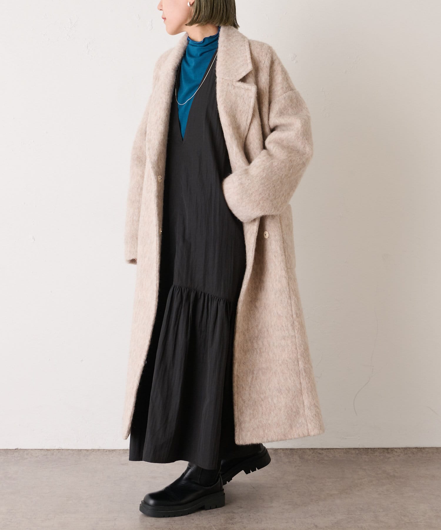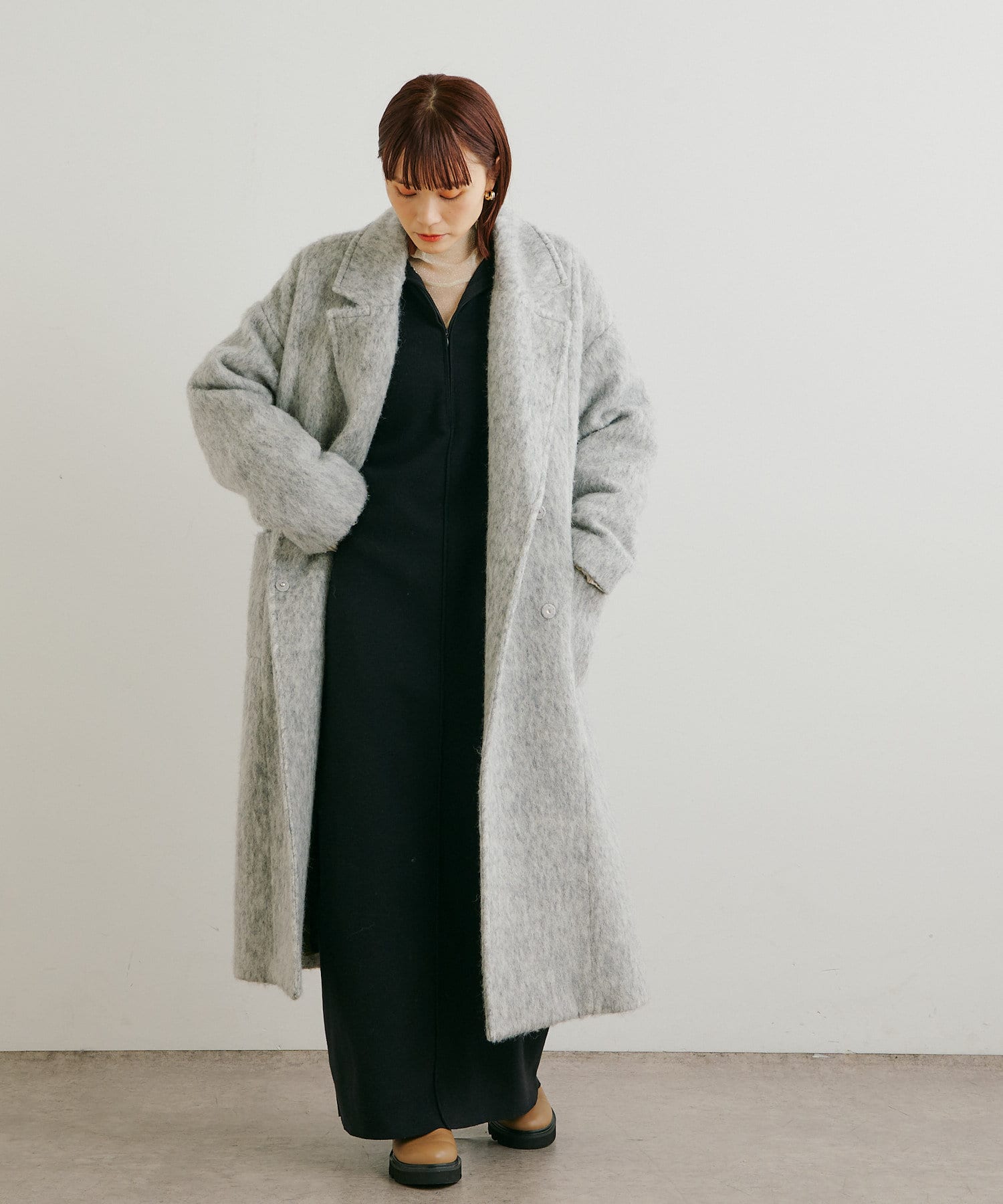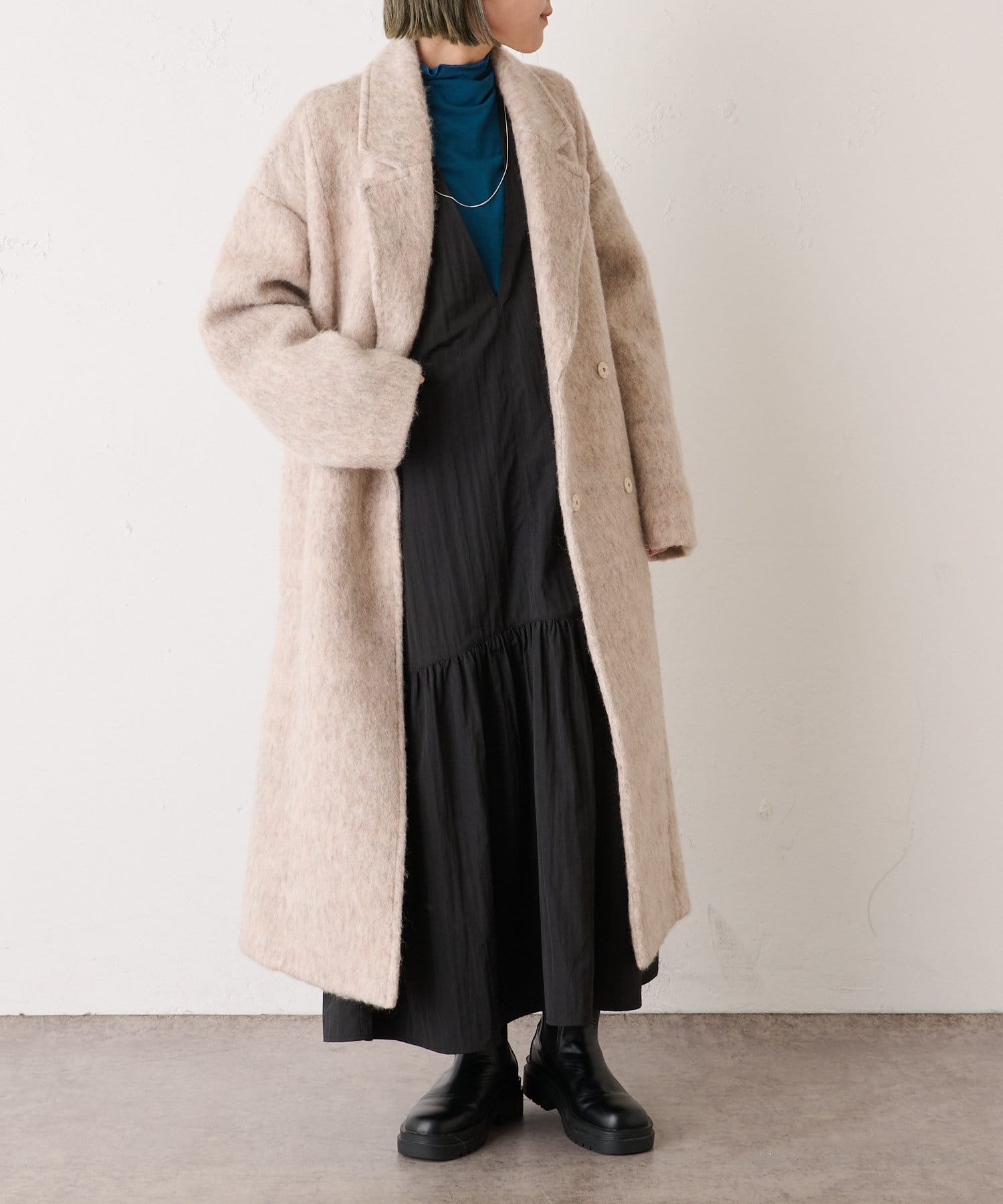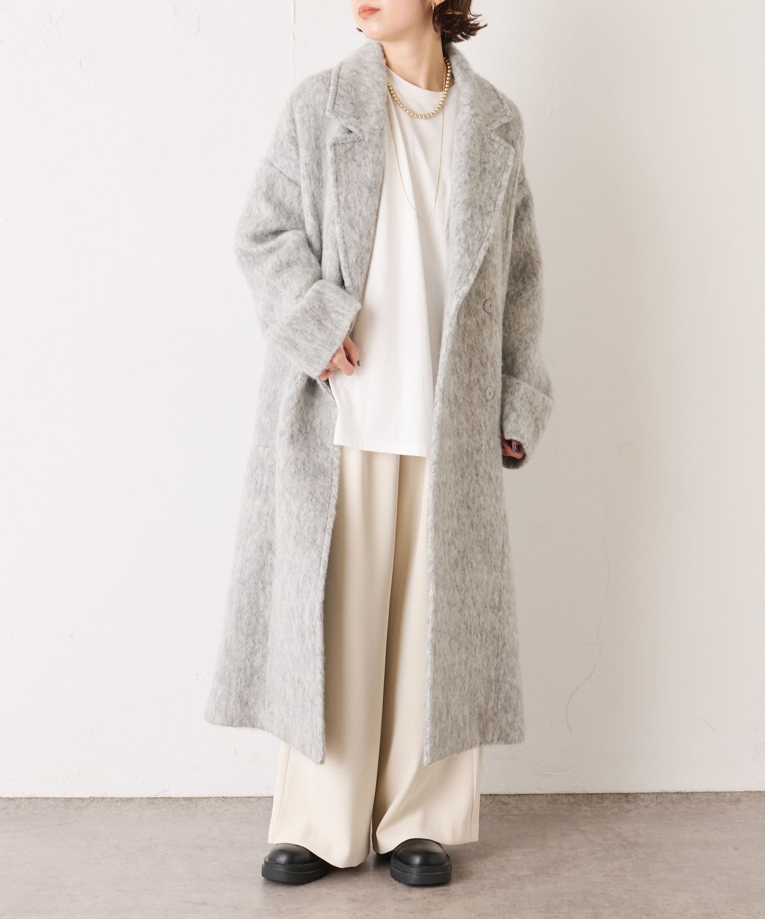 ・上品な印象でカジュアルにもフォーマルにも着ていただける、シャギーロングコート。