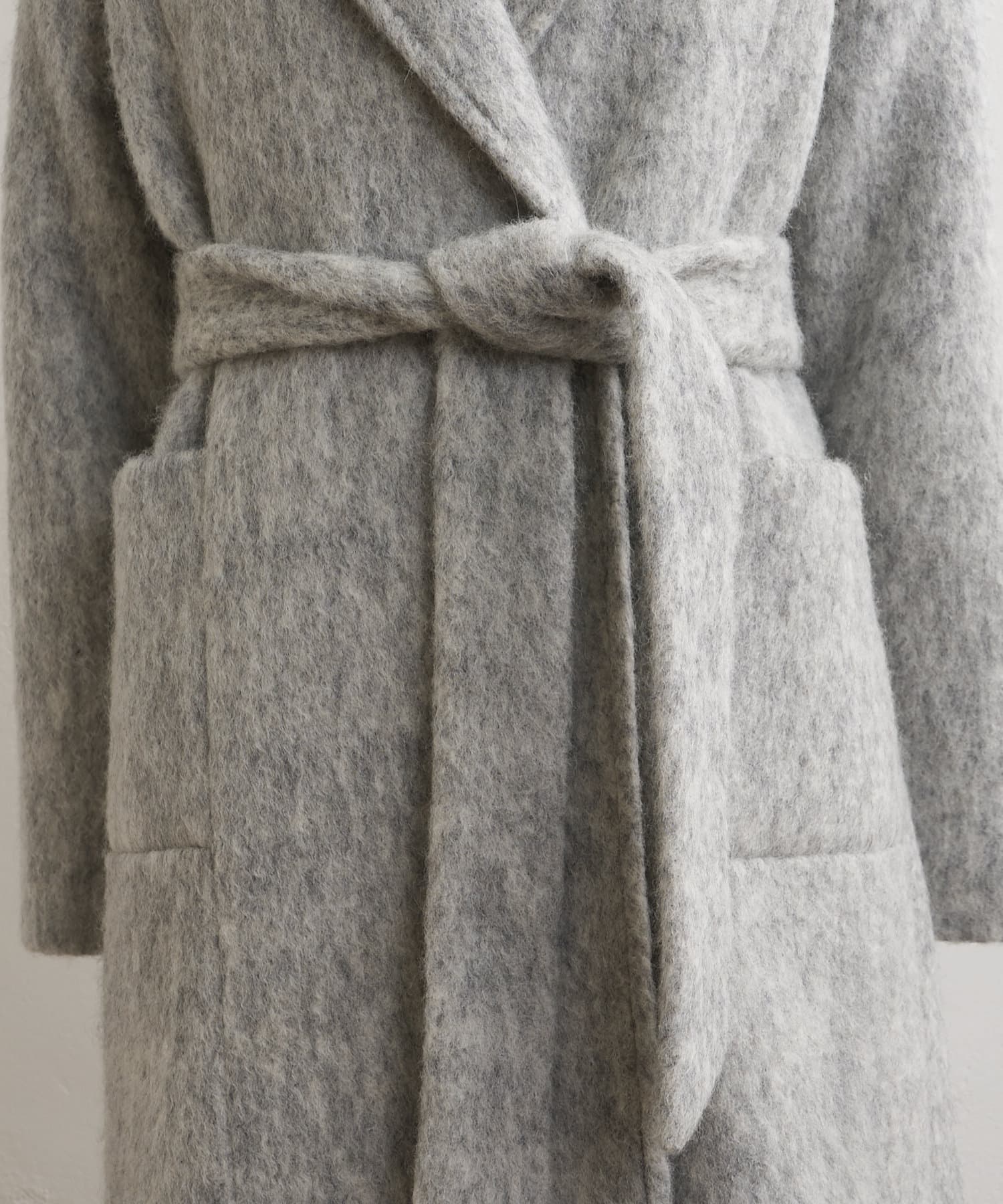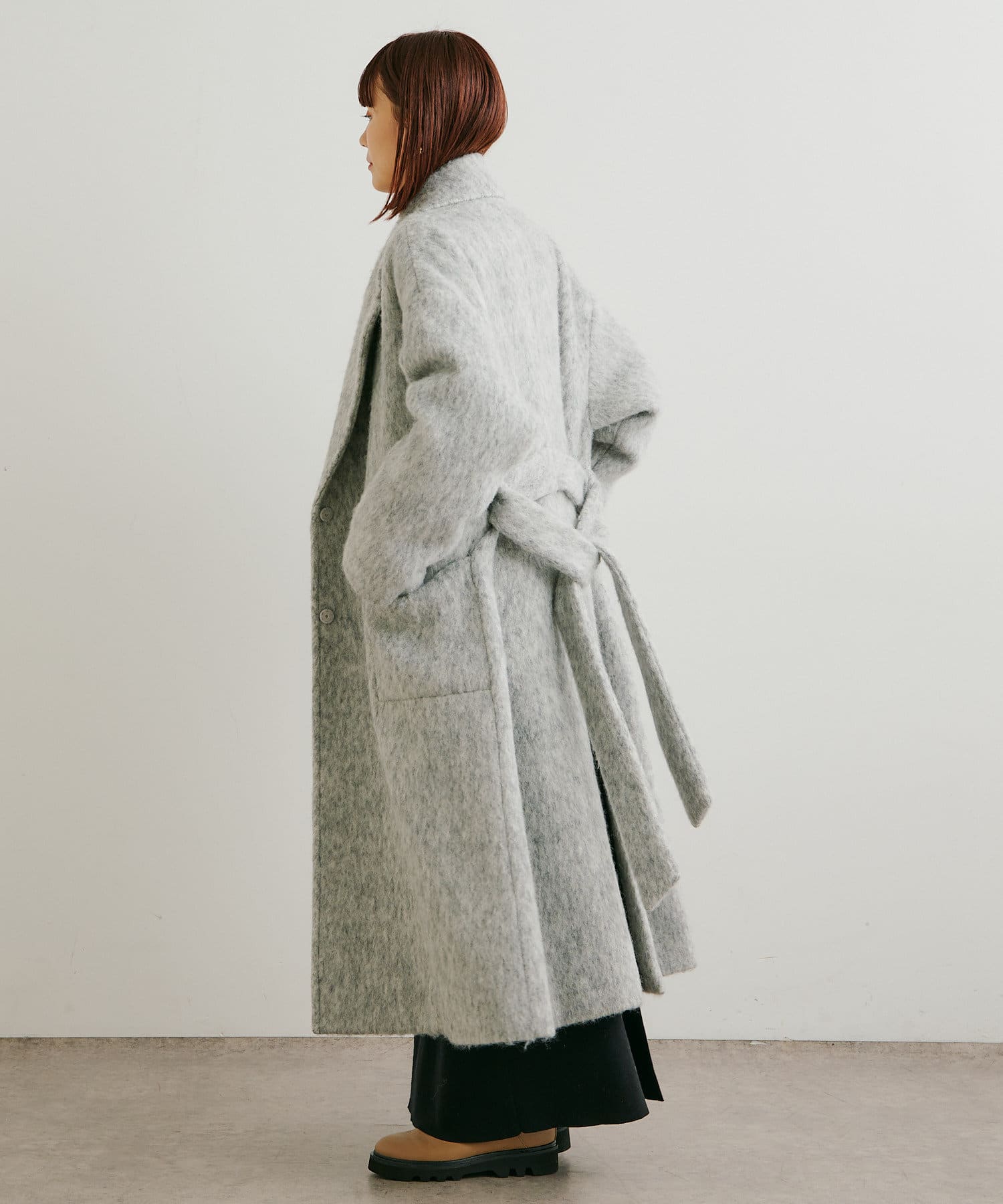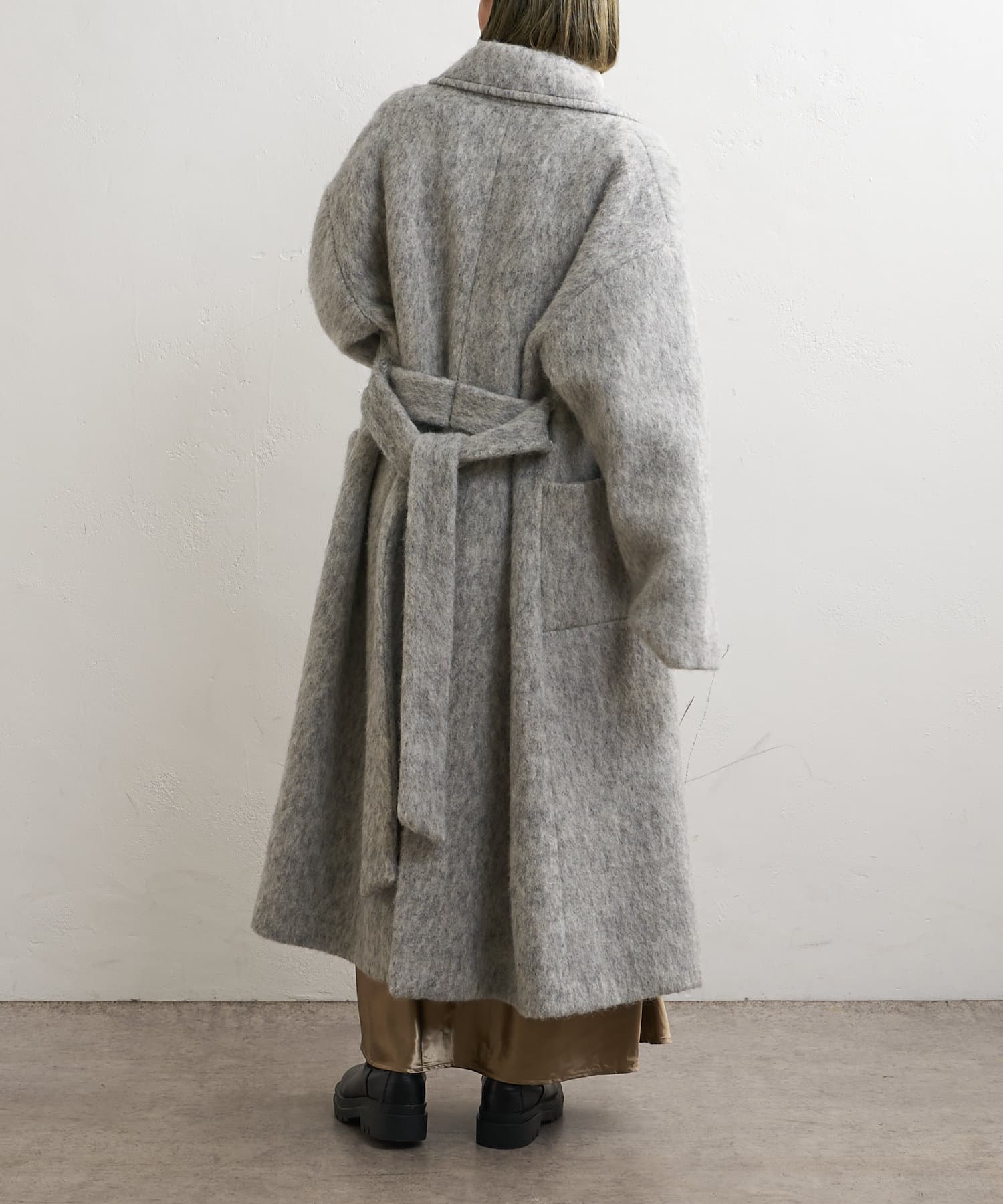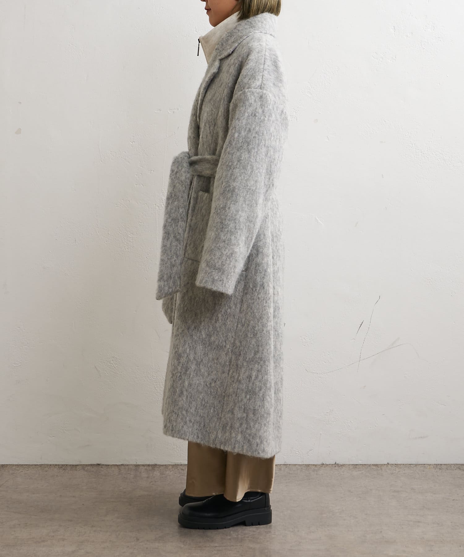 ・同素材のベルトをラフに結んだ着こなしはもちろん、羽織っての着用も様になる今季おすすめコートです。