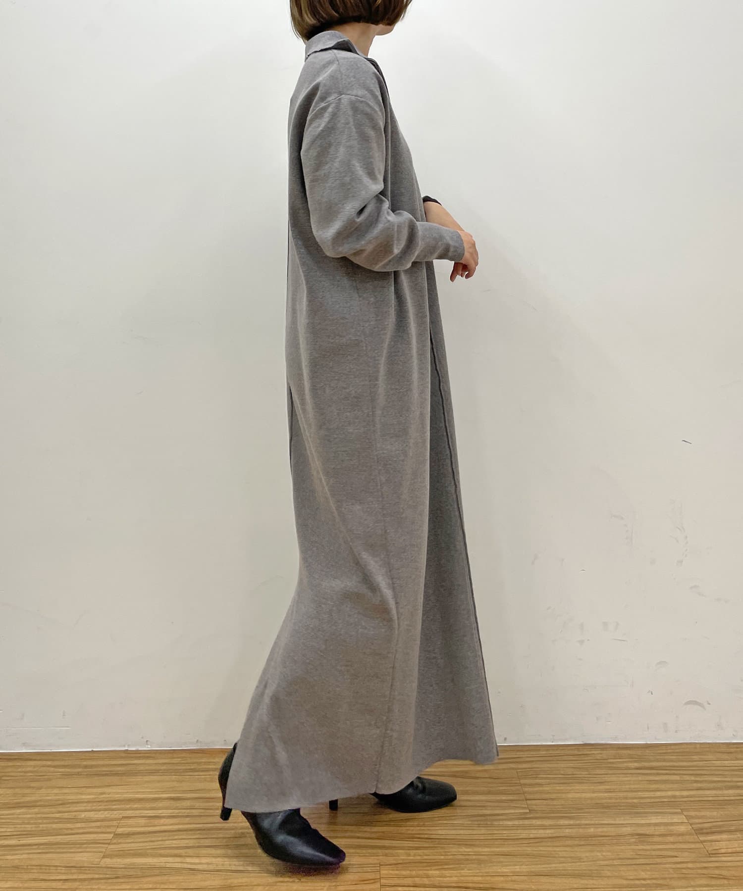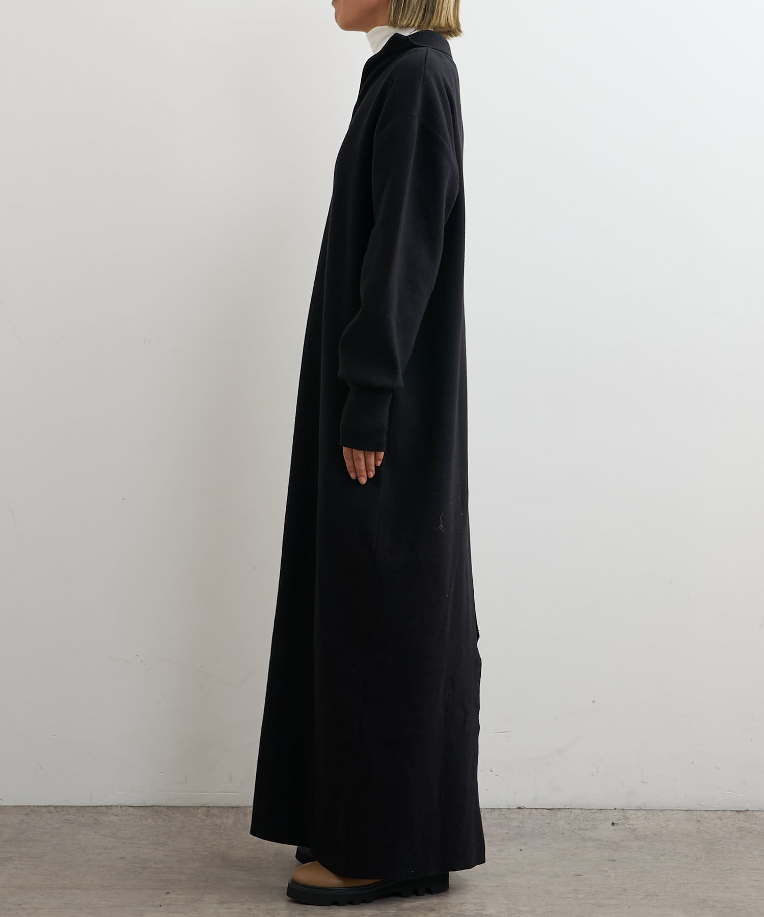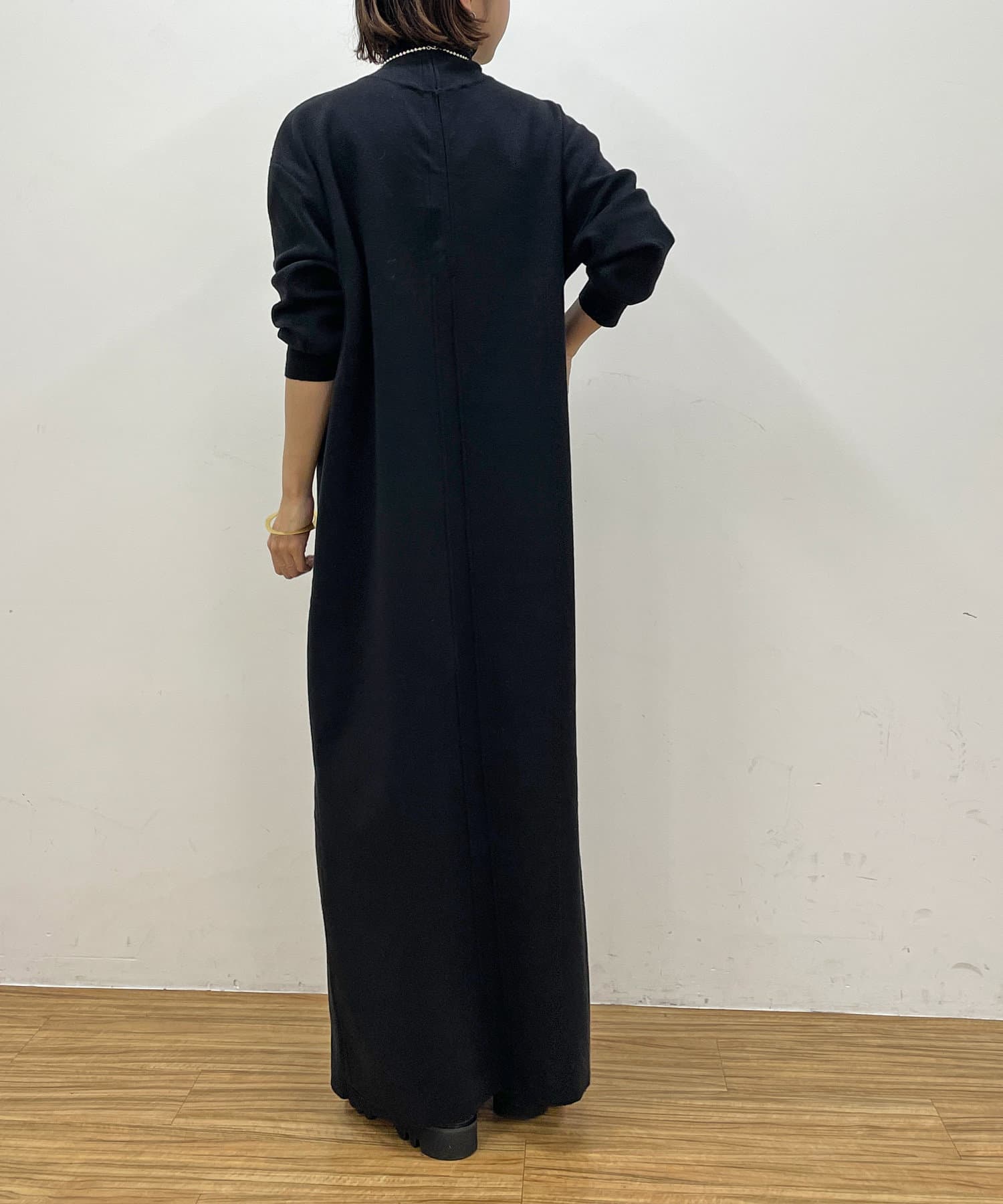 すっきりとしたロング丈ニットワンピース