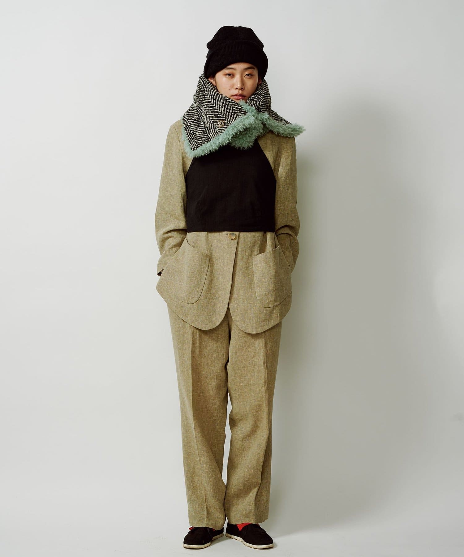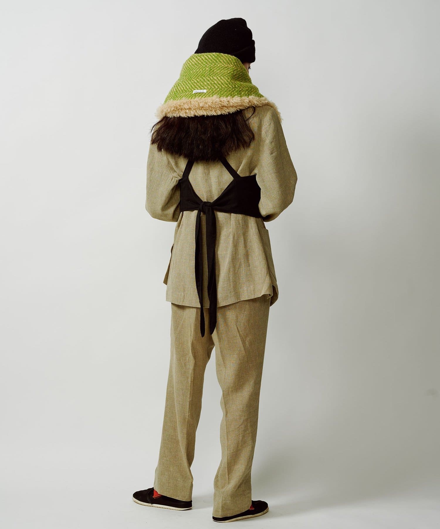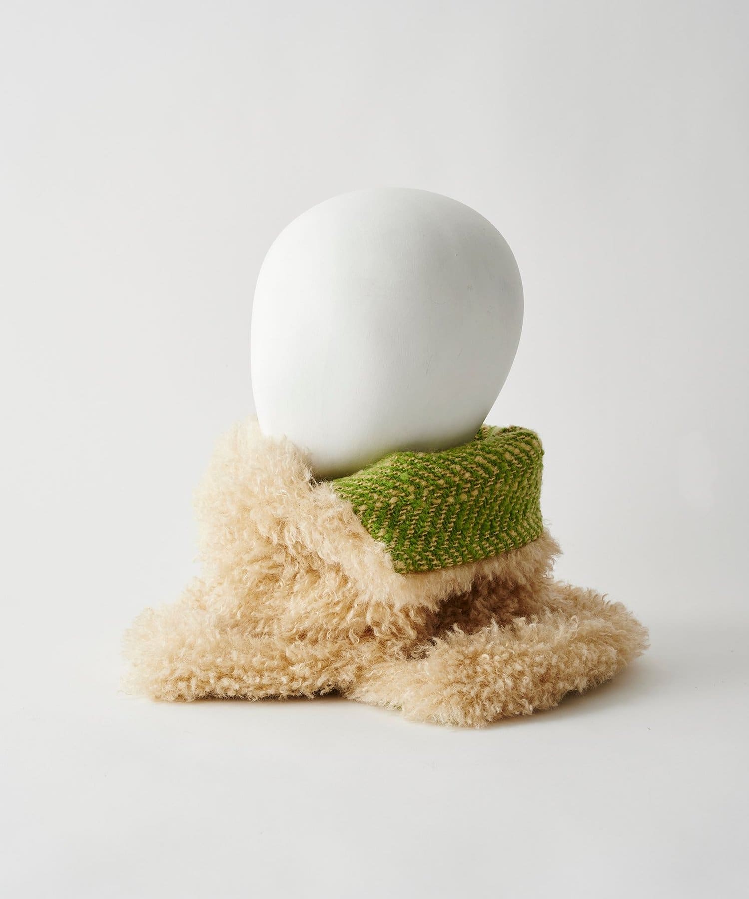 しっかりとした織りとカラーリングが美しいイタリアンツイードとこちらもカラーが特徴的なフェイクファーの組み合わせ。