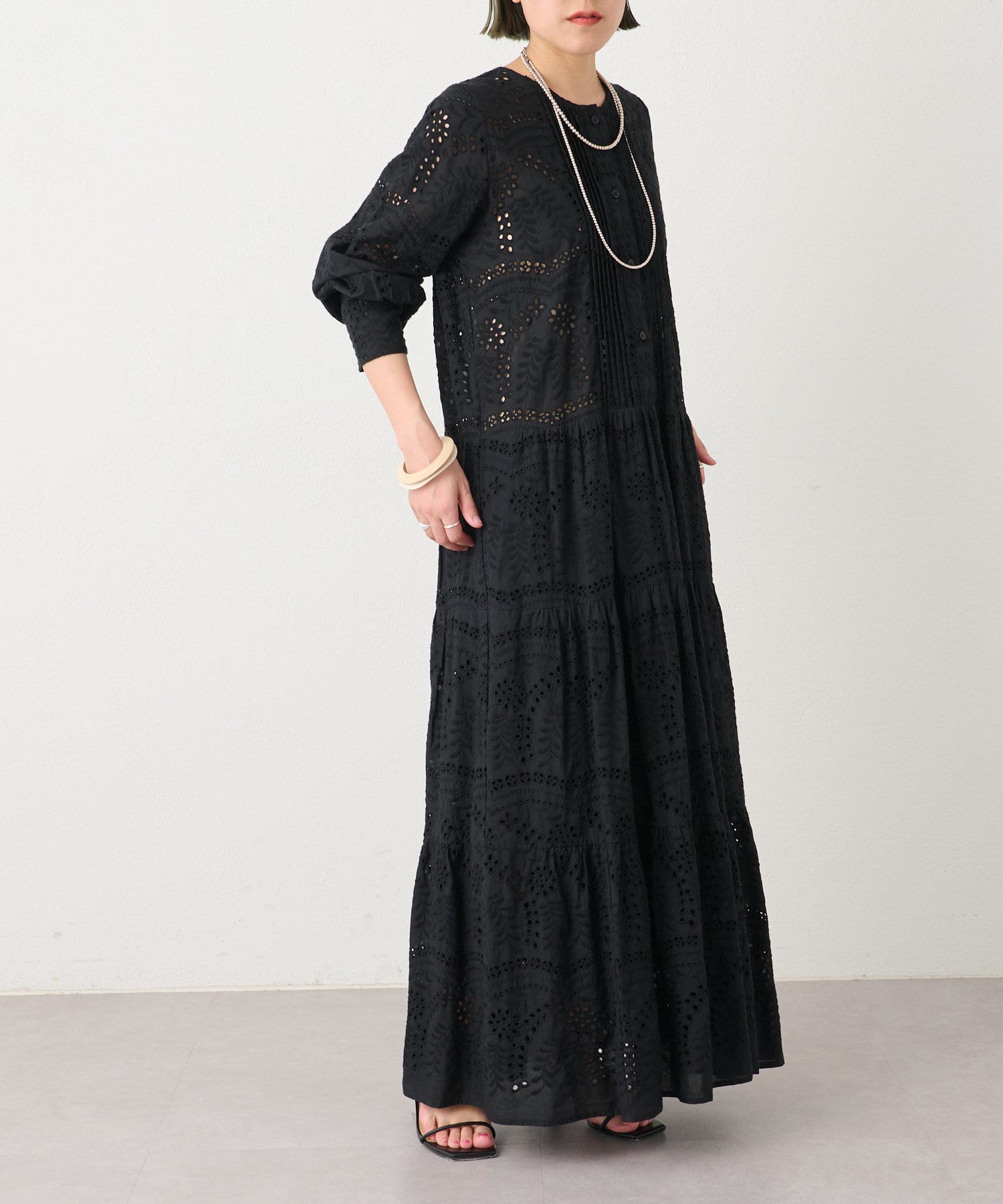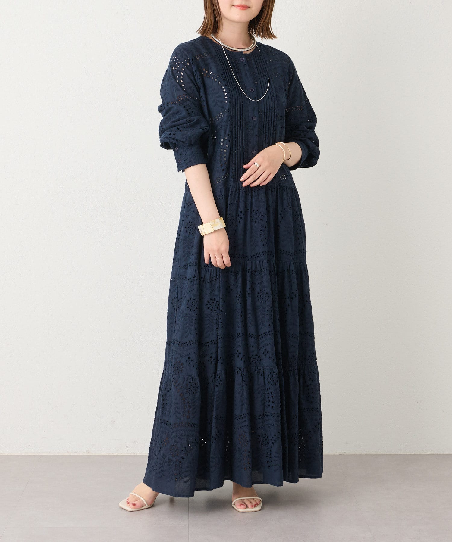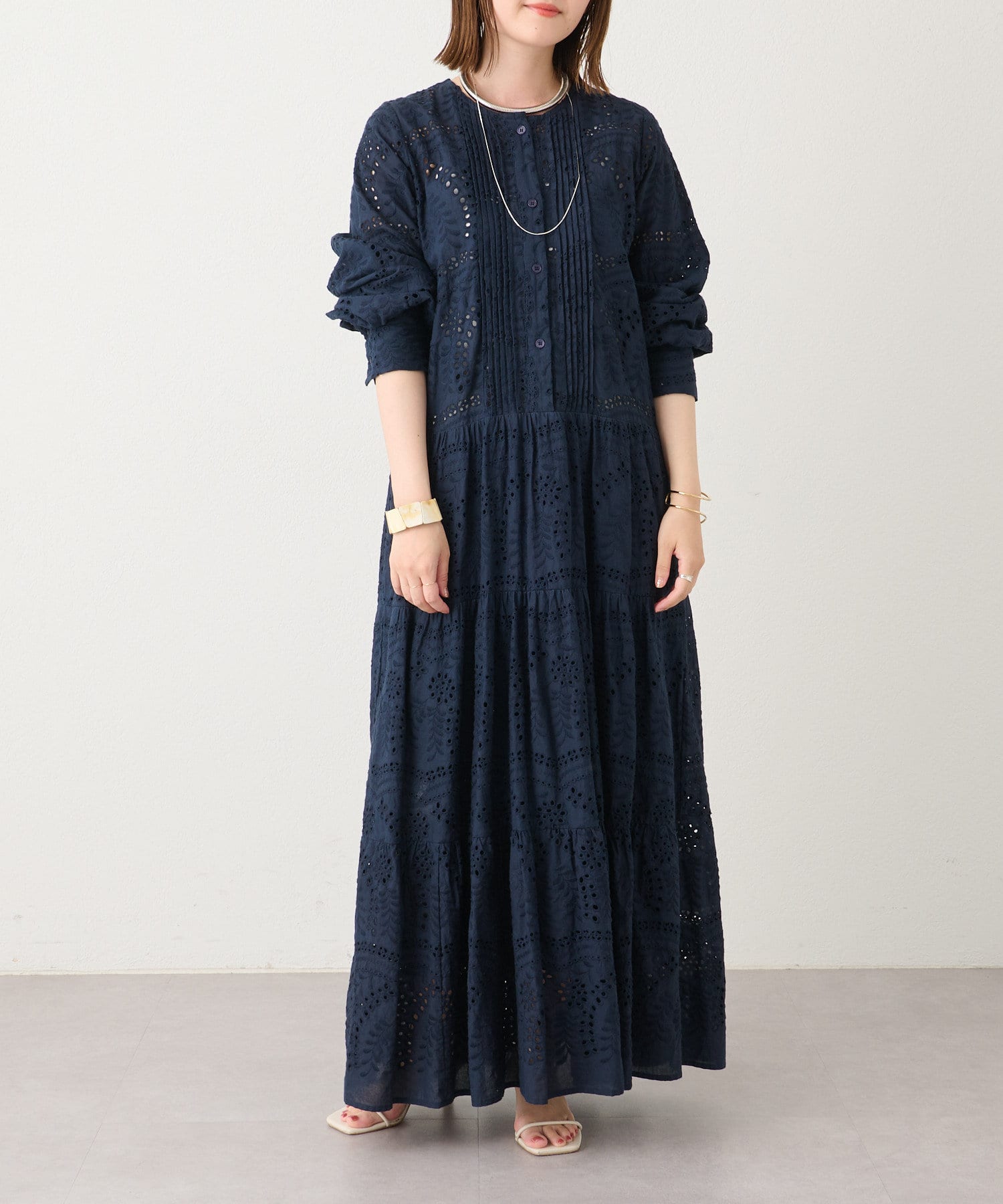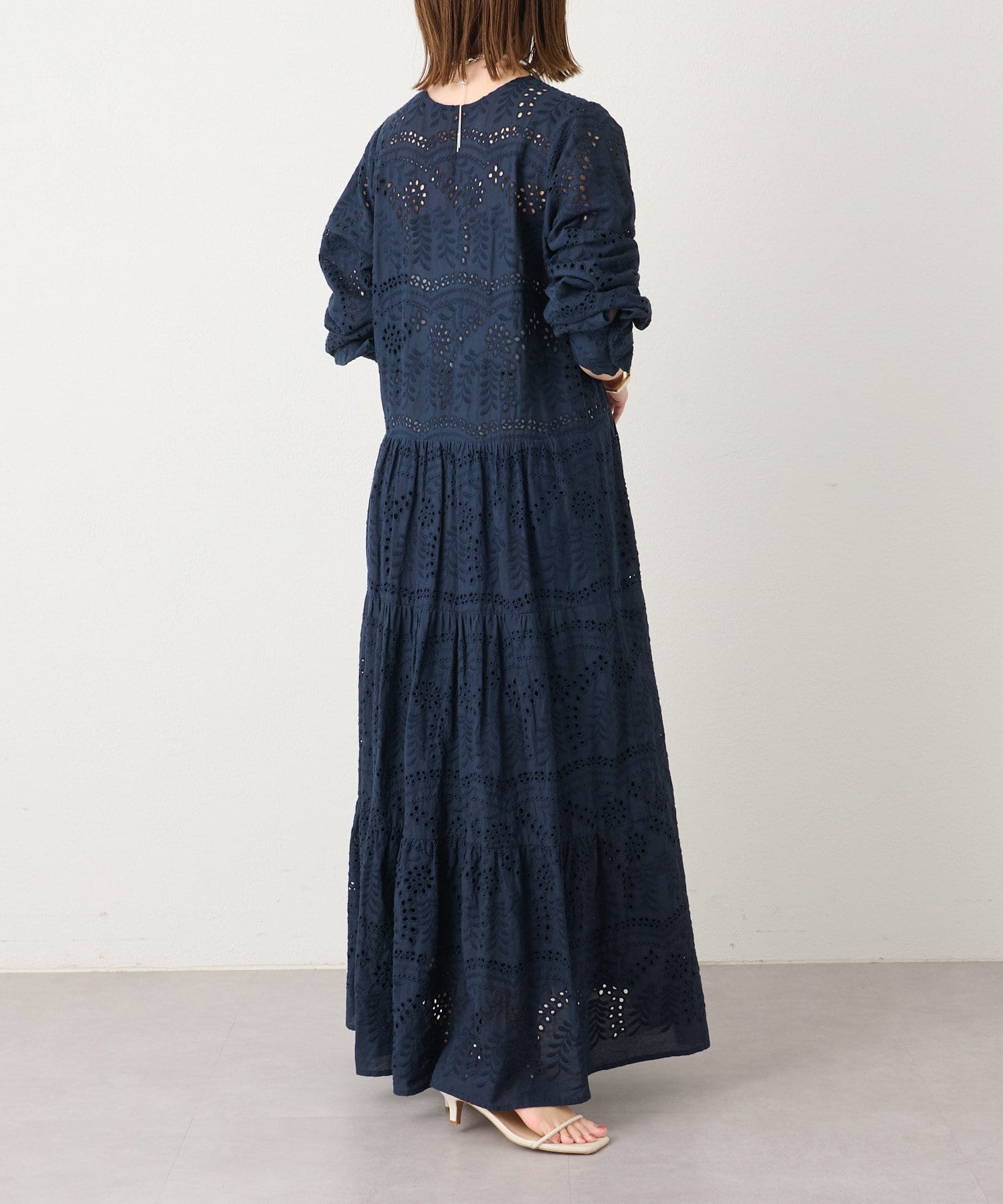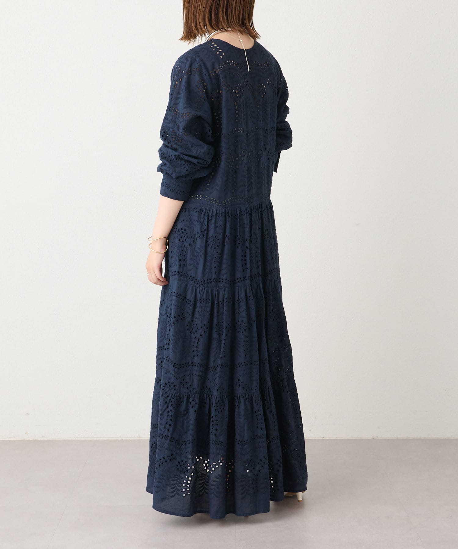 歩く度に揺れるティアードシルエットがかわいいコットンレースのワンピース