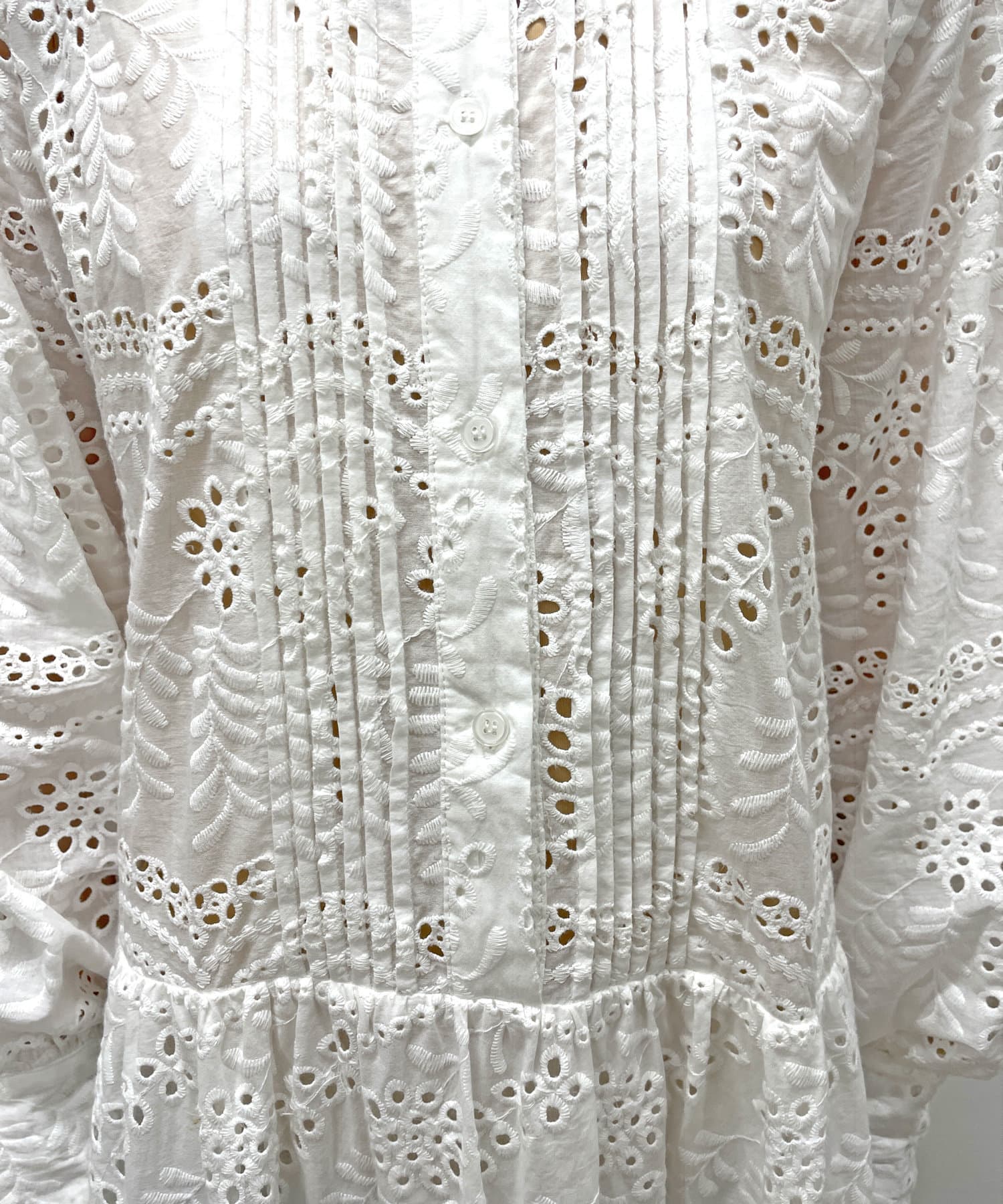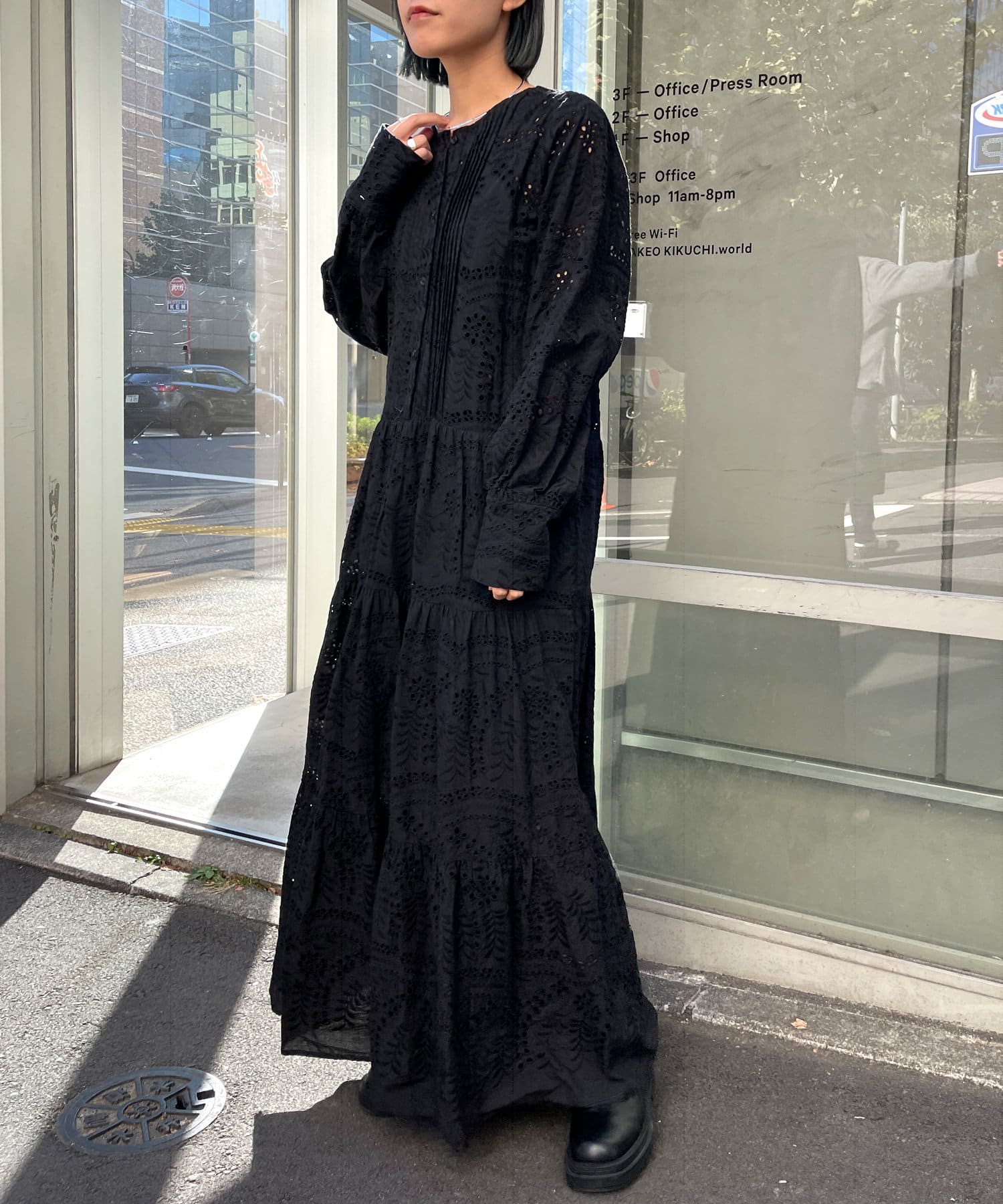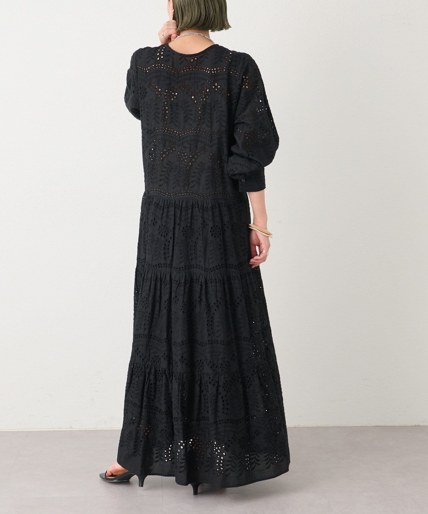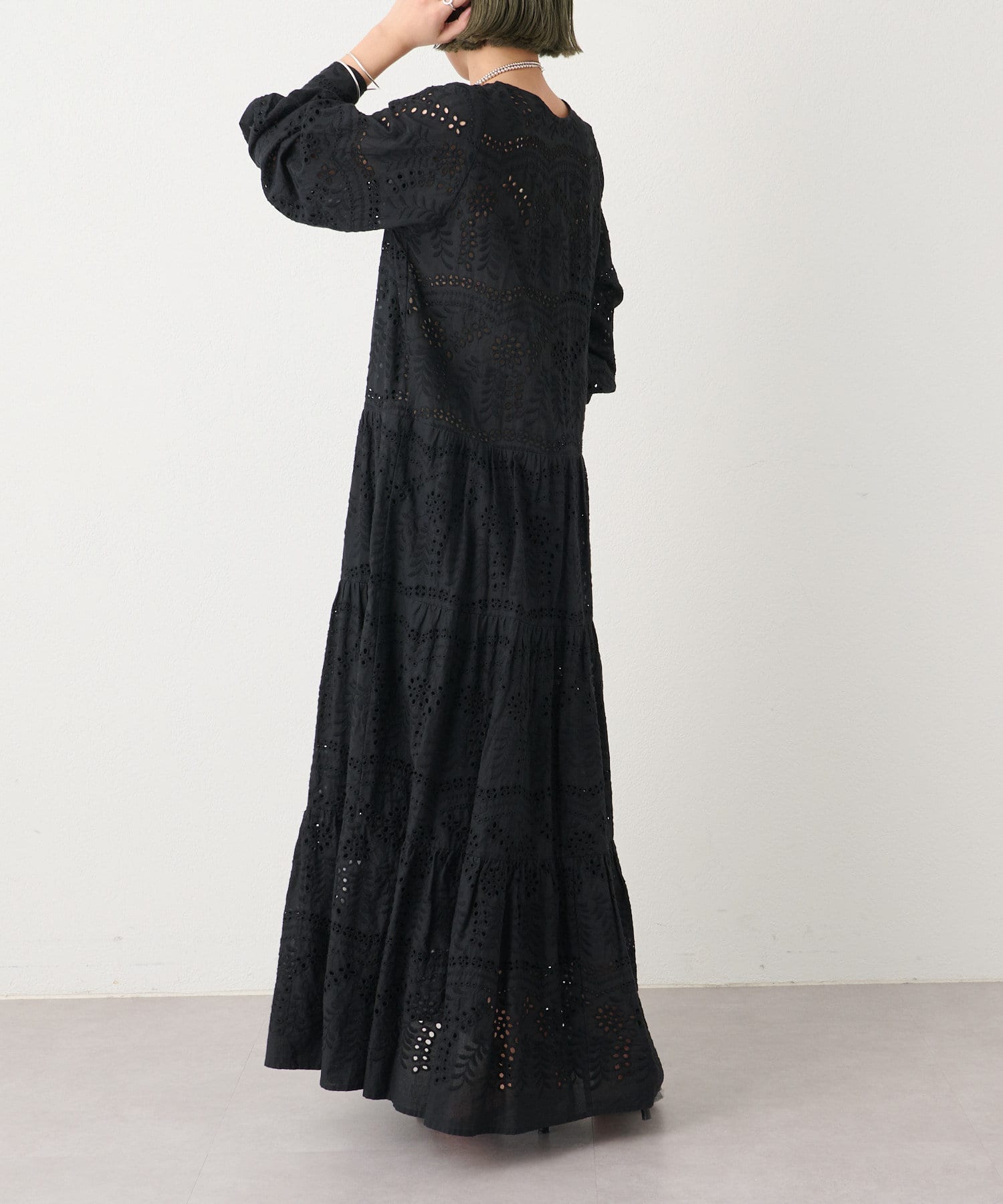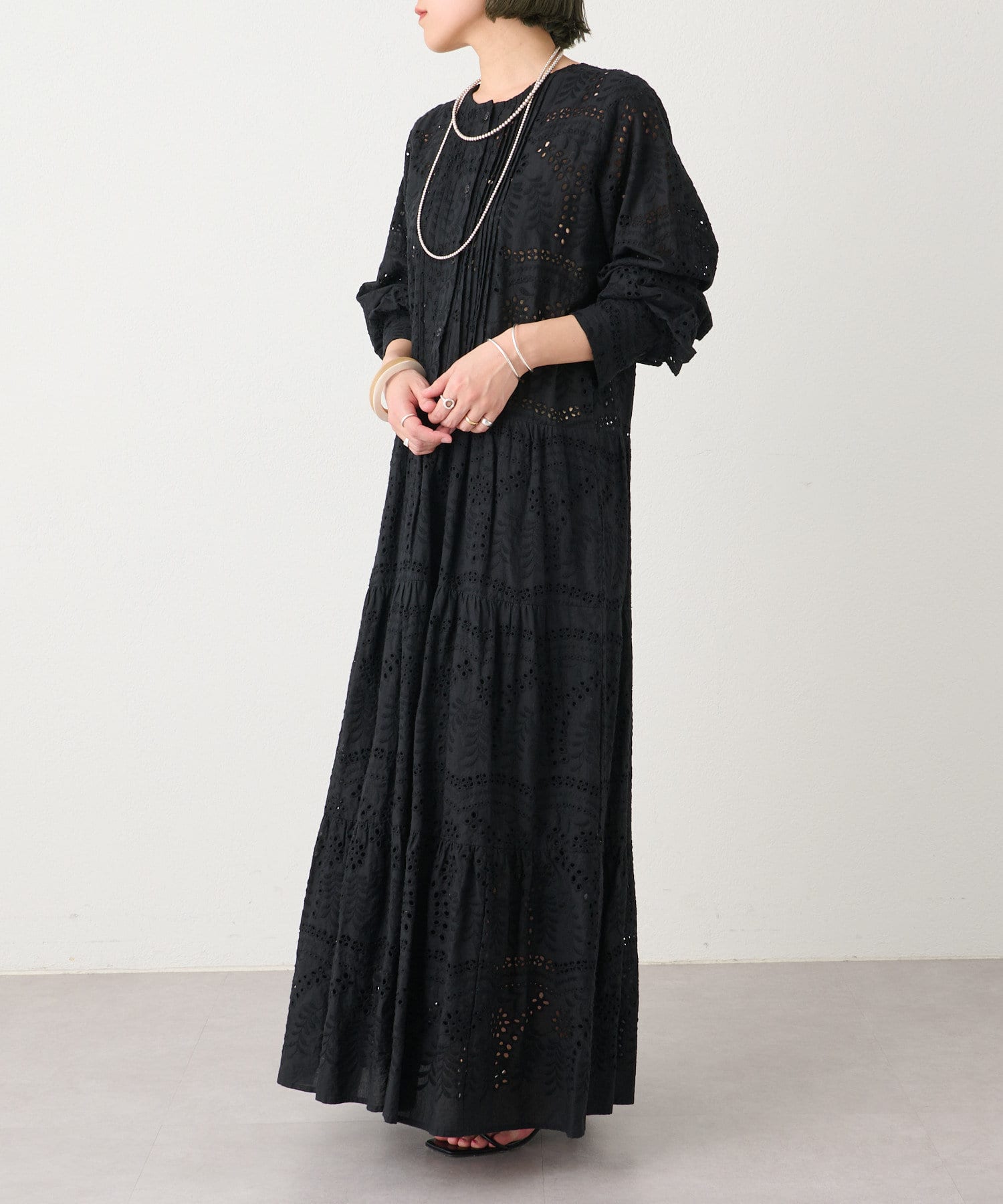 歩く度に揺れるティアードシルエットがかわいいコットンレースのワンピース