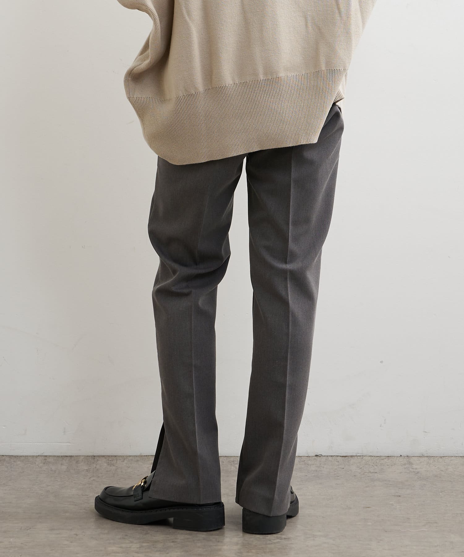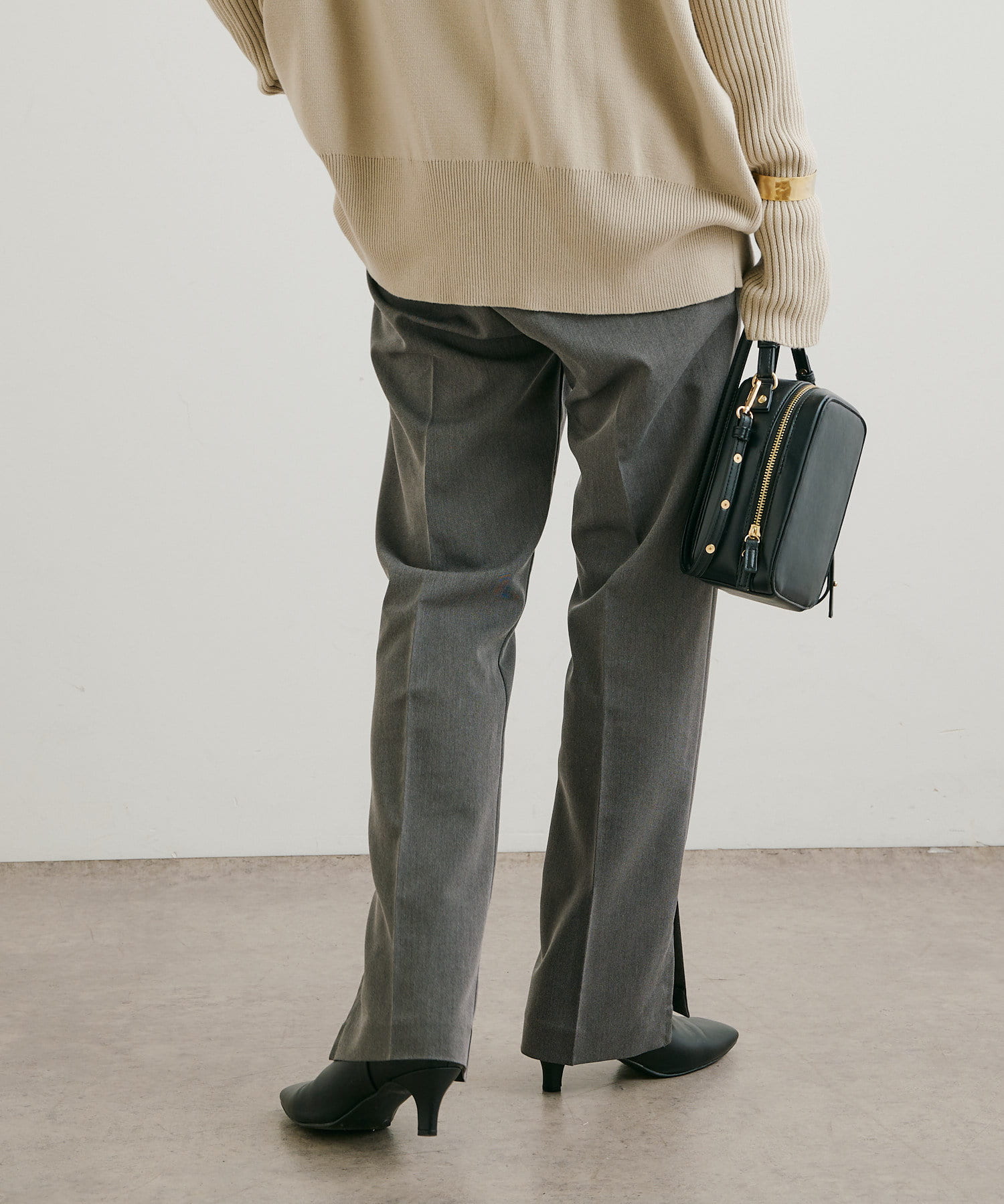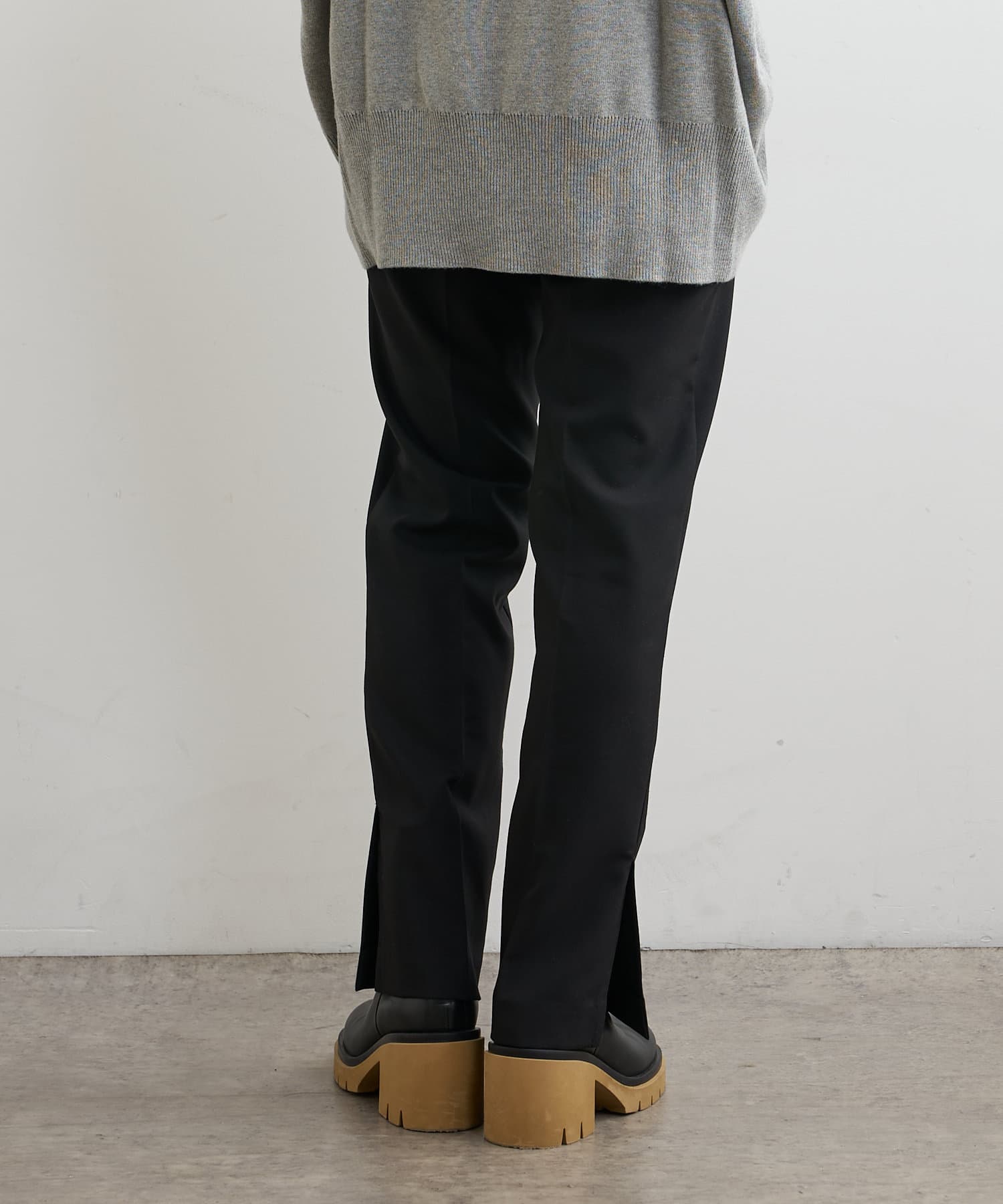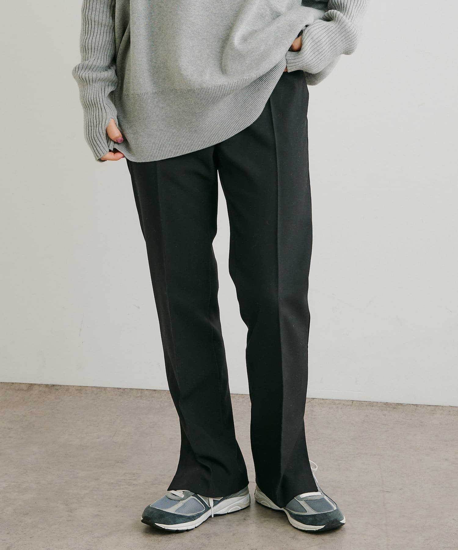 ・パンツは、裾のサイドスリットとセンタープレスのデザインが美脚に見せてくれます。