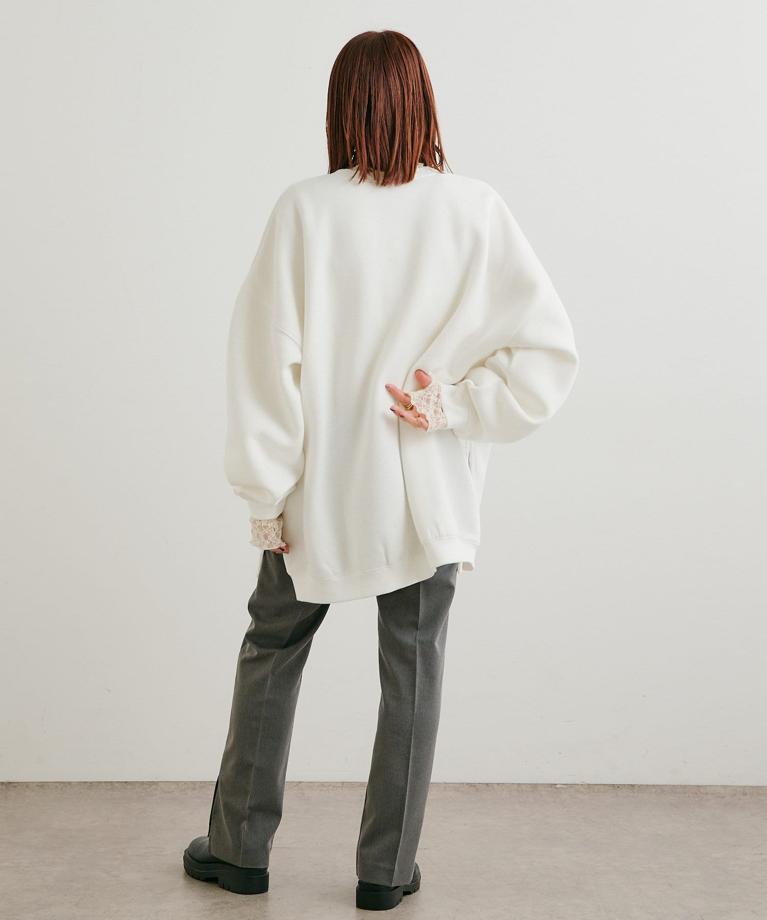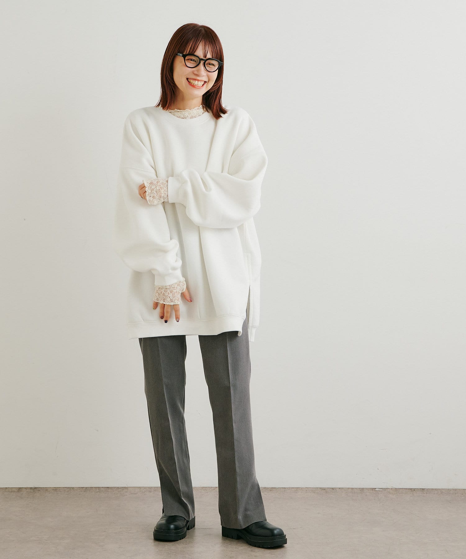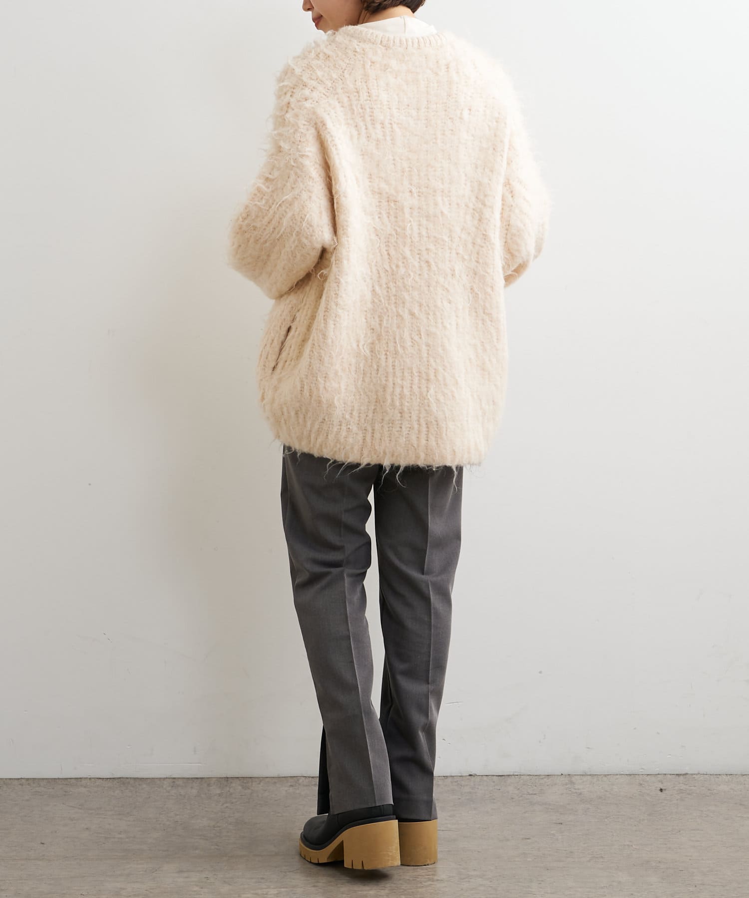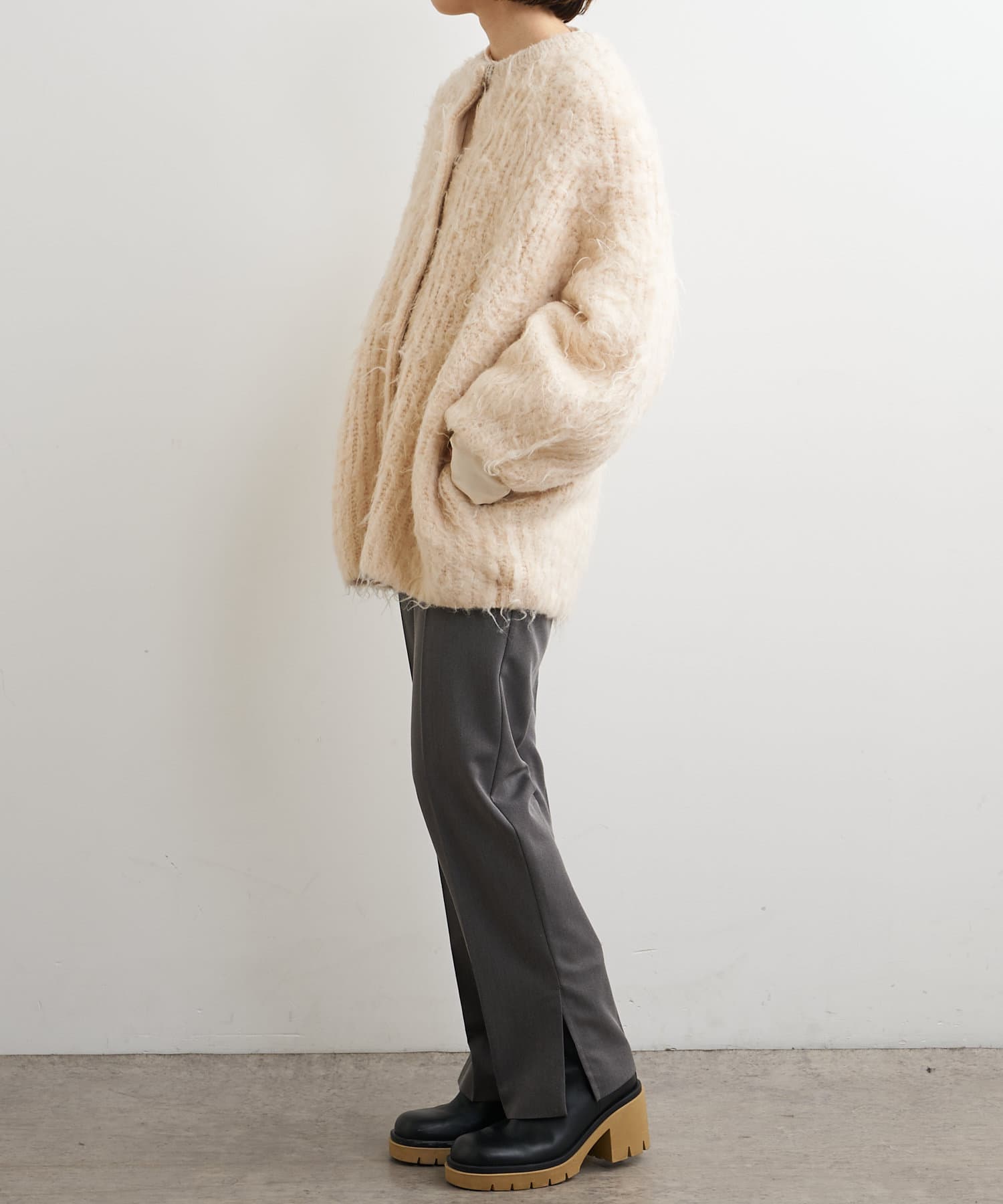 ・パンツは、裾のサイドスリットとセンタープレスのデザインが美脚に見せてくれます。