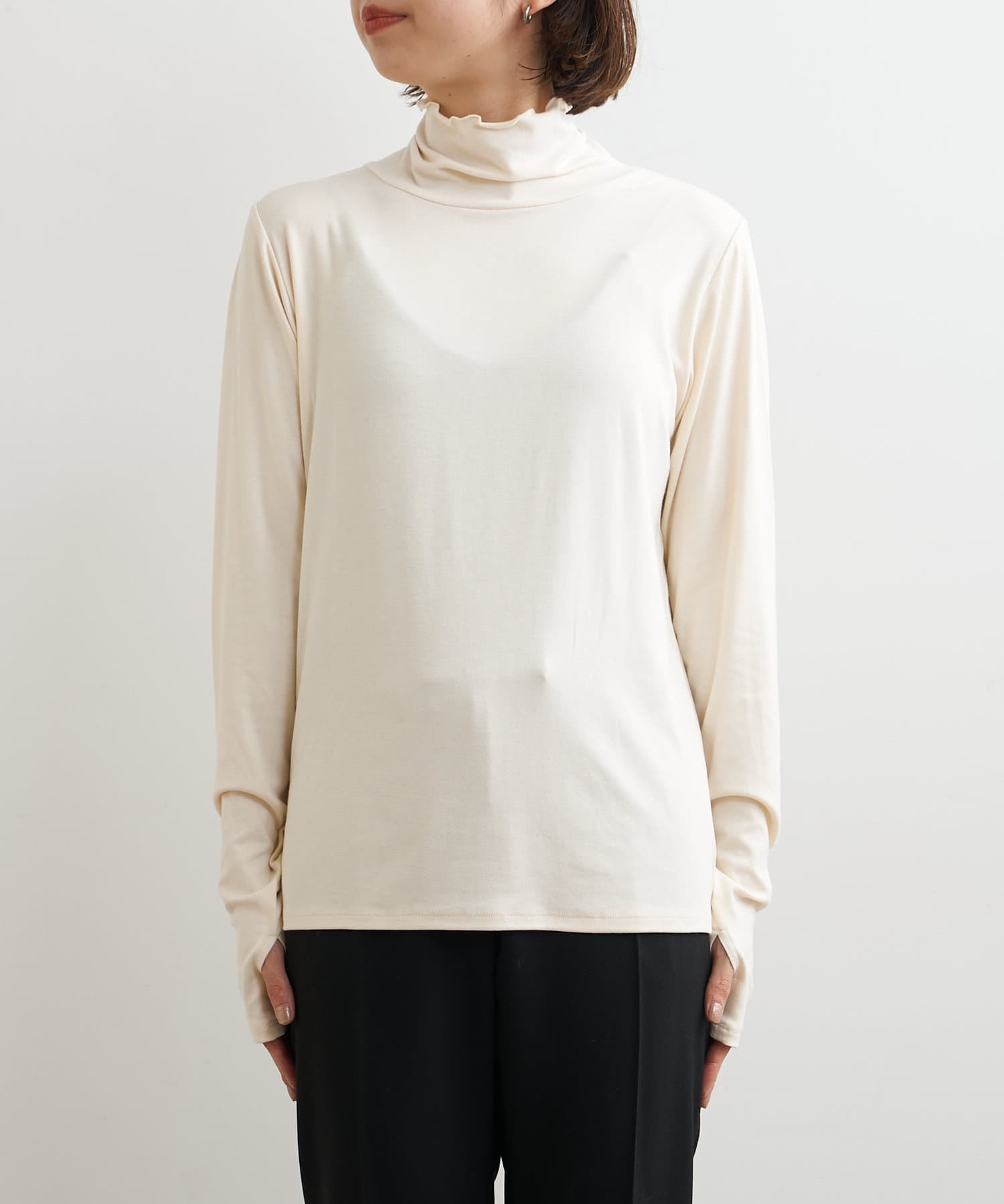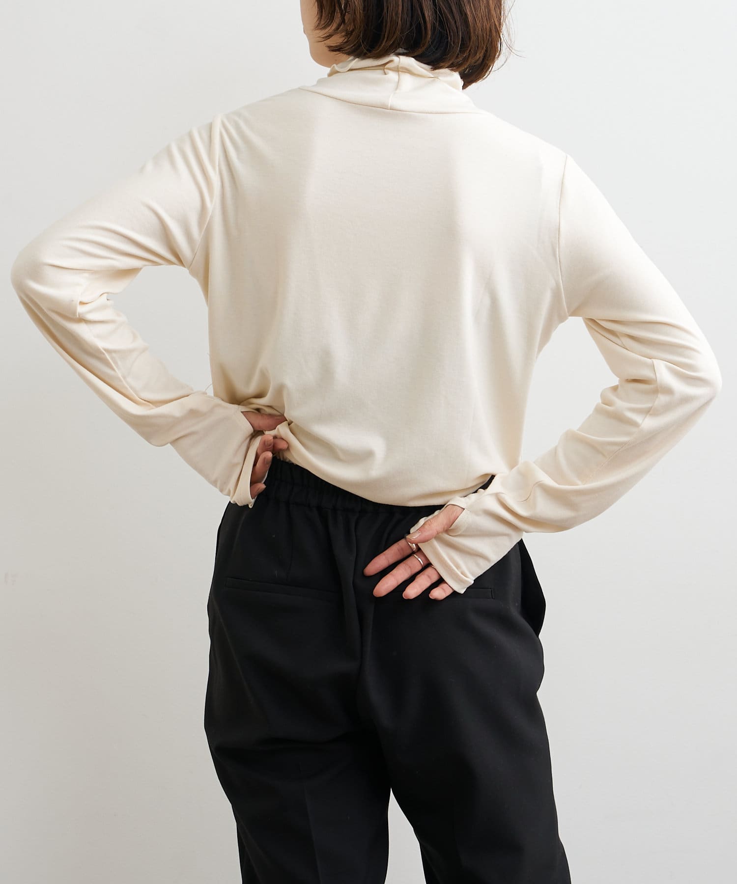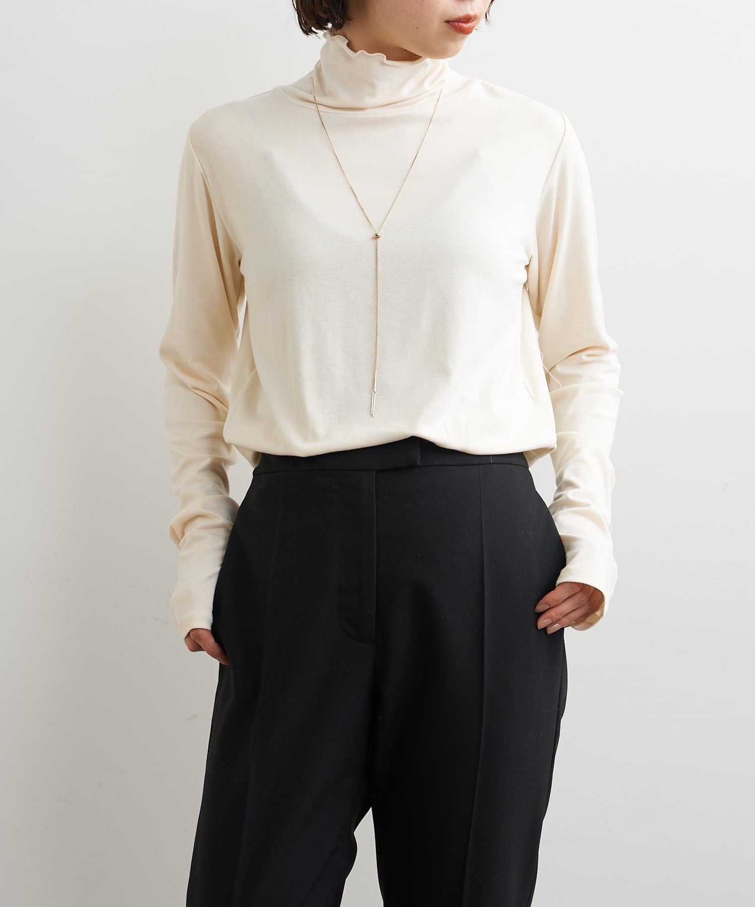 ・ハイネックプルオーバーは柔らかい素材感で今の季節インナーとしても大活躍な一枚です。