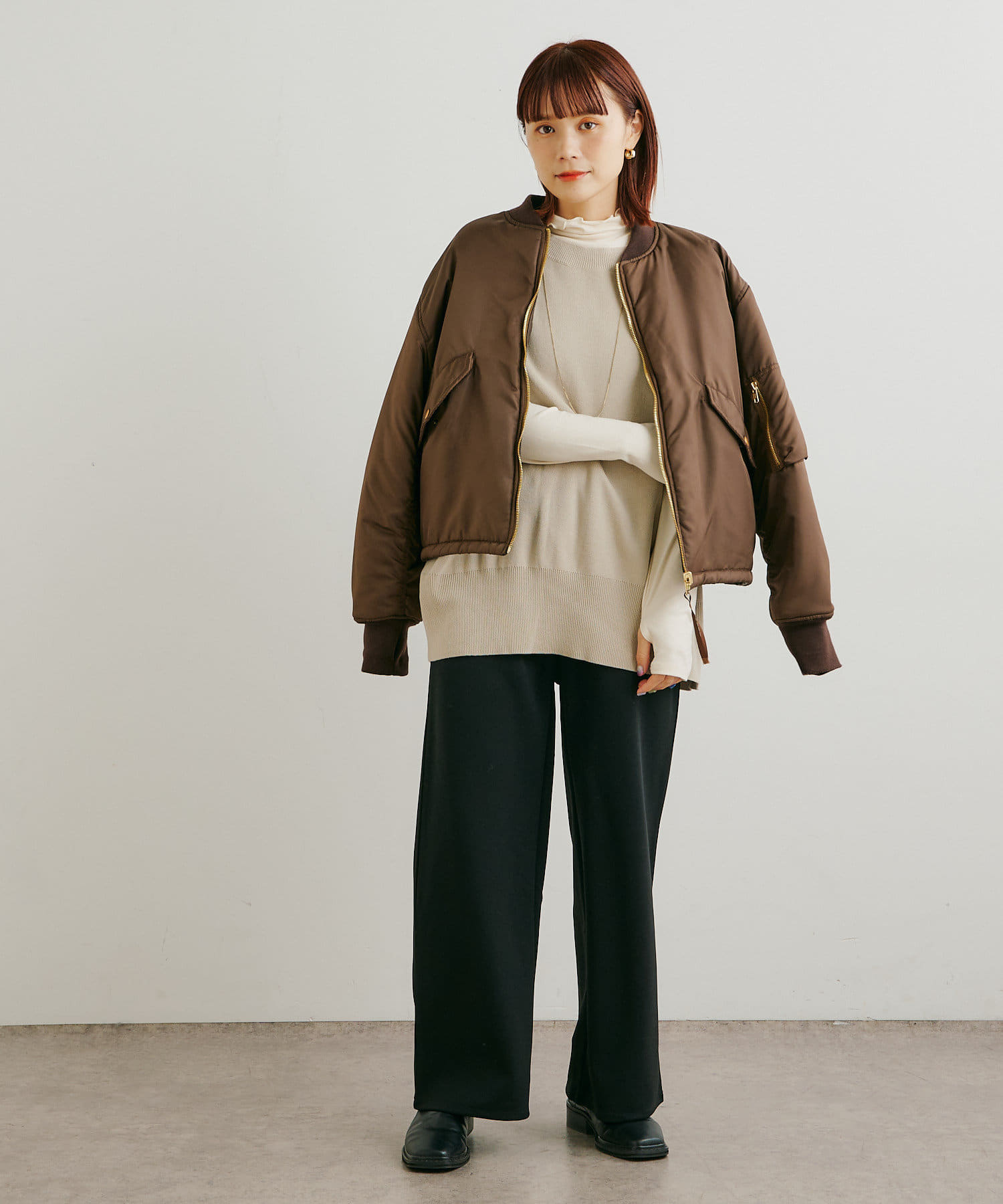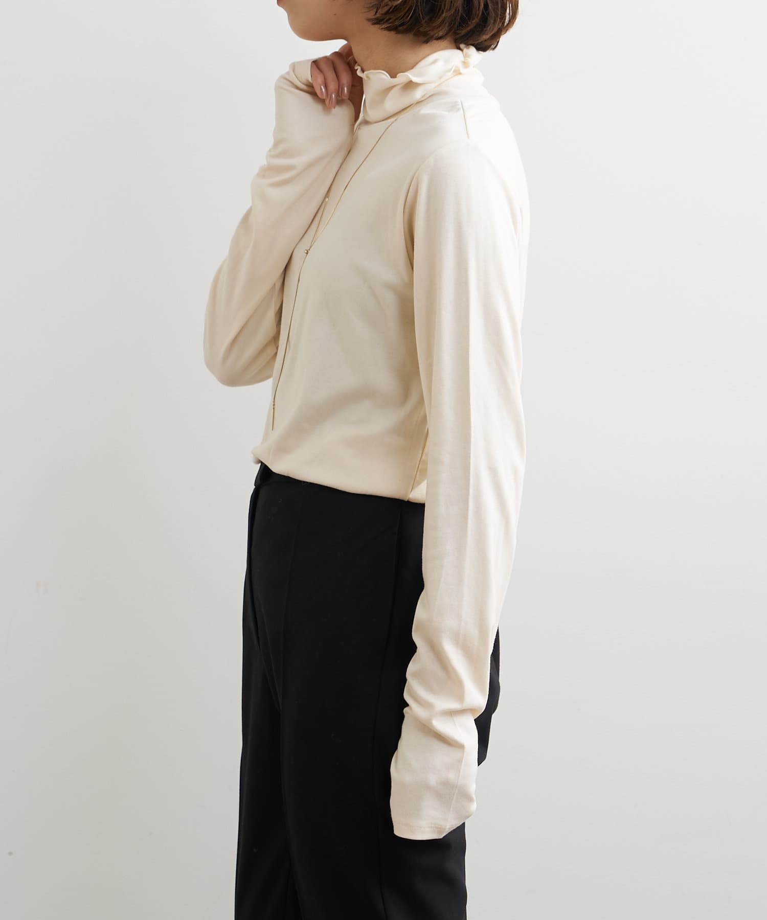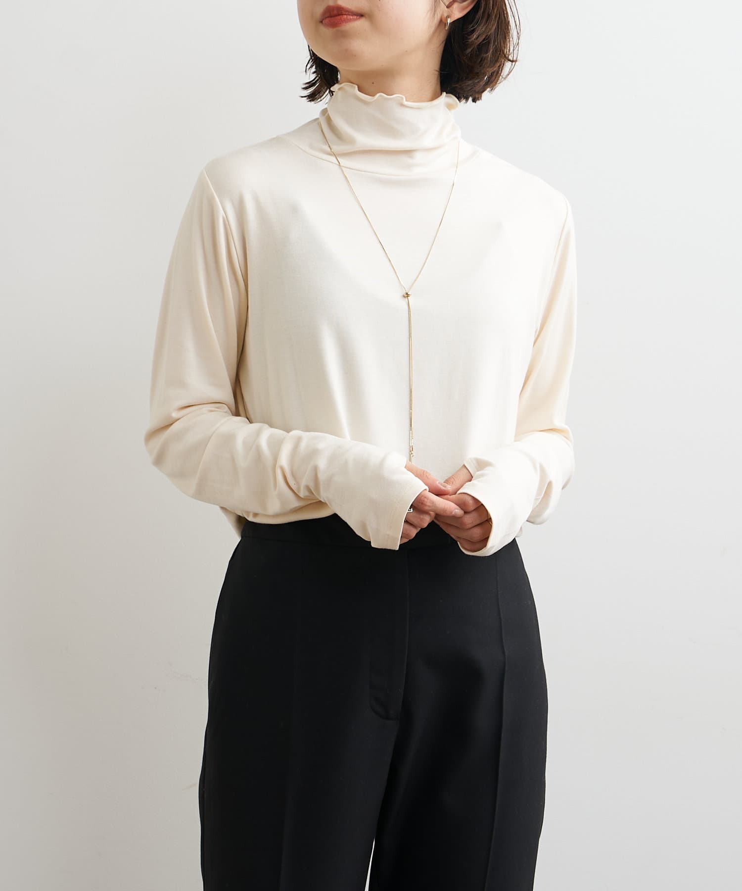 ・ハイネックプルオーバーは柔らかい素材感で今の季節インナーとしても大活躍な一枚です。