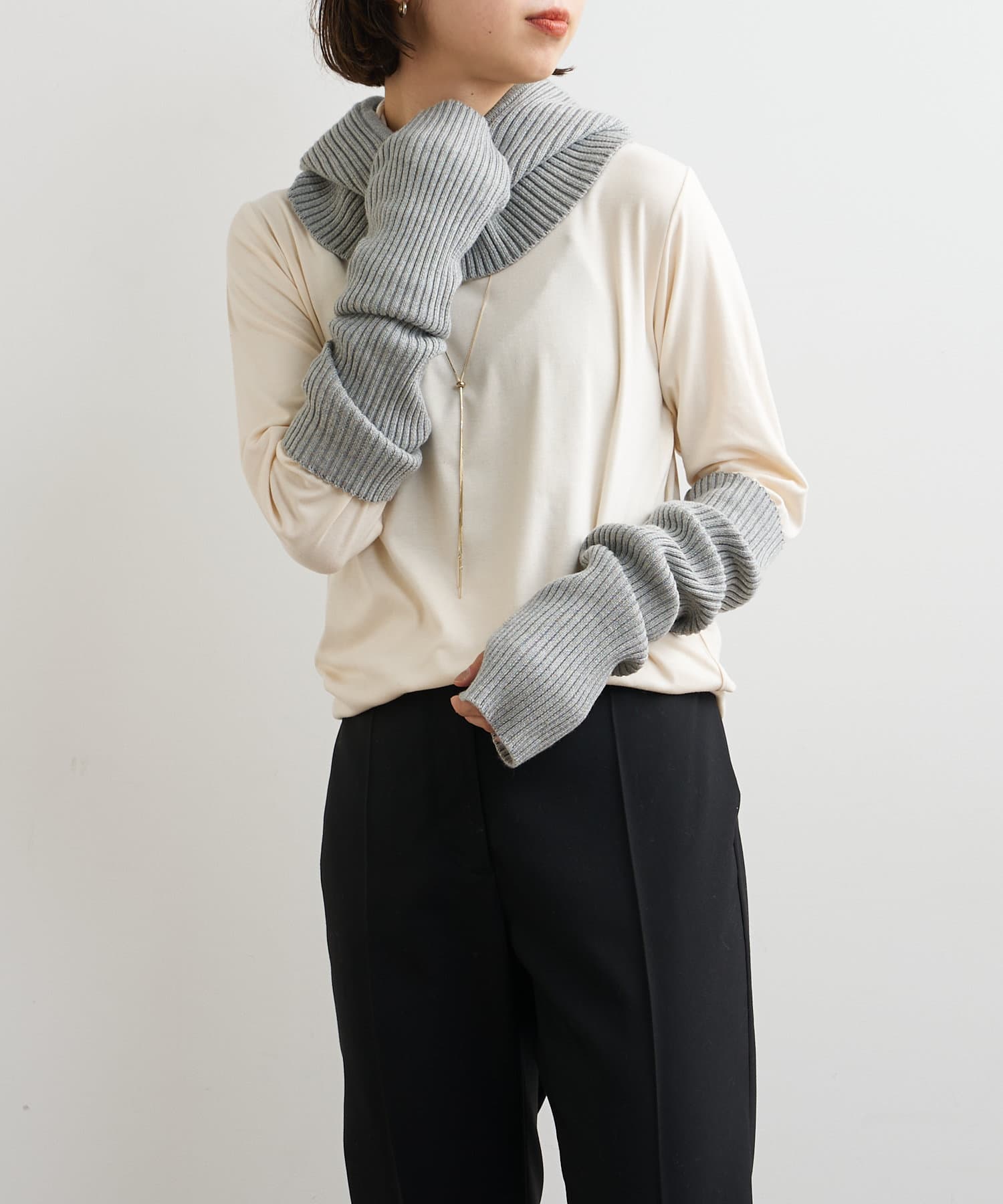 ・トレンドのバラクラバとアームウォーマーはコーディネートに合わせて頂くだけで今年らしいスタイリングが完成します。