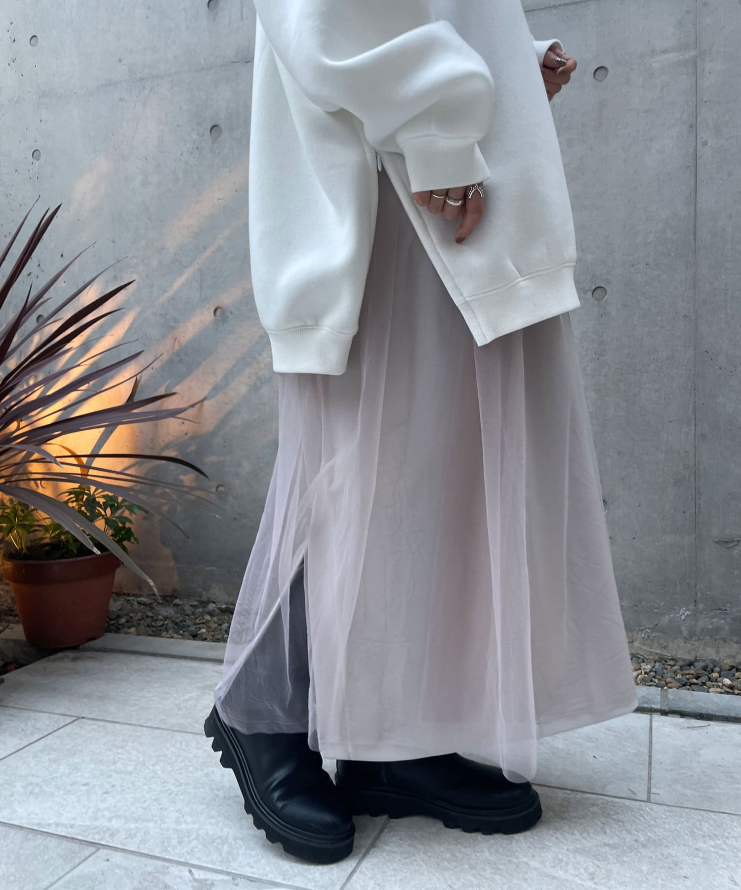 ・透け感のあるチュールが着用するだけでコーディネートの主役になるスカートです。
