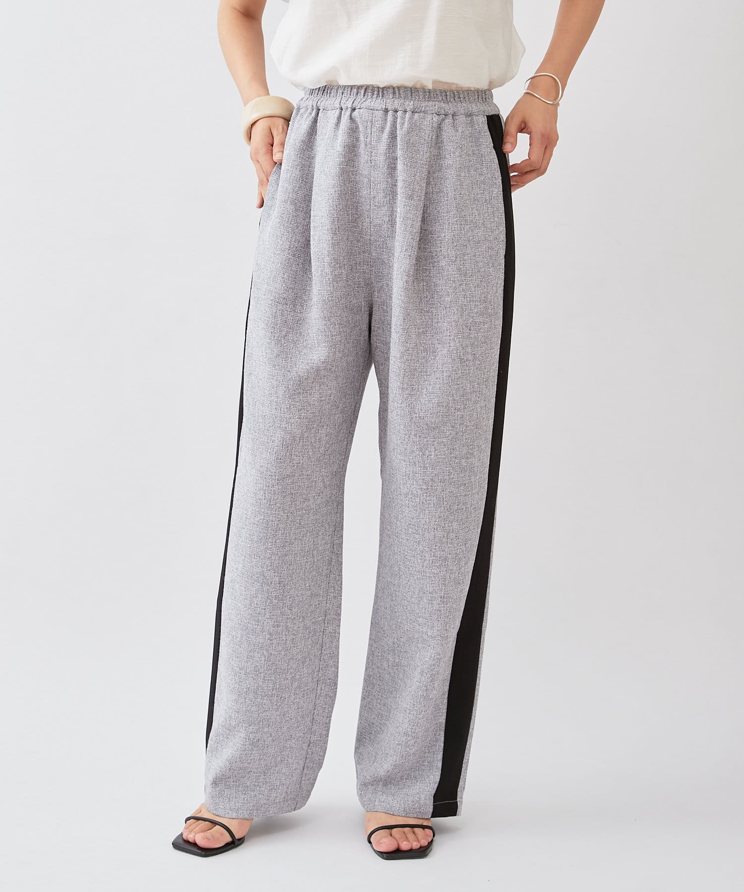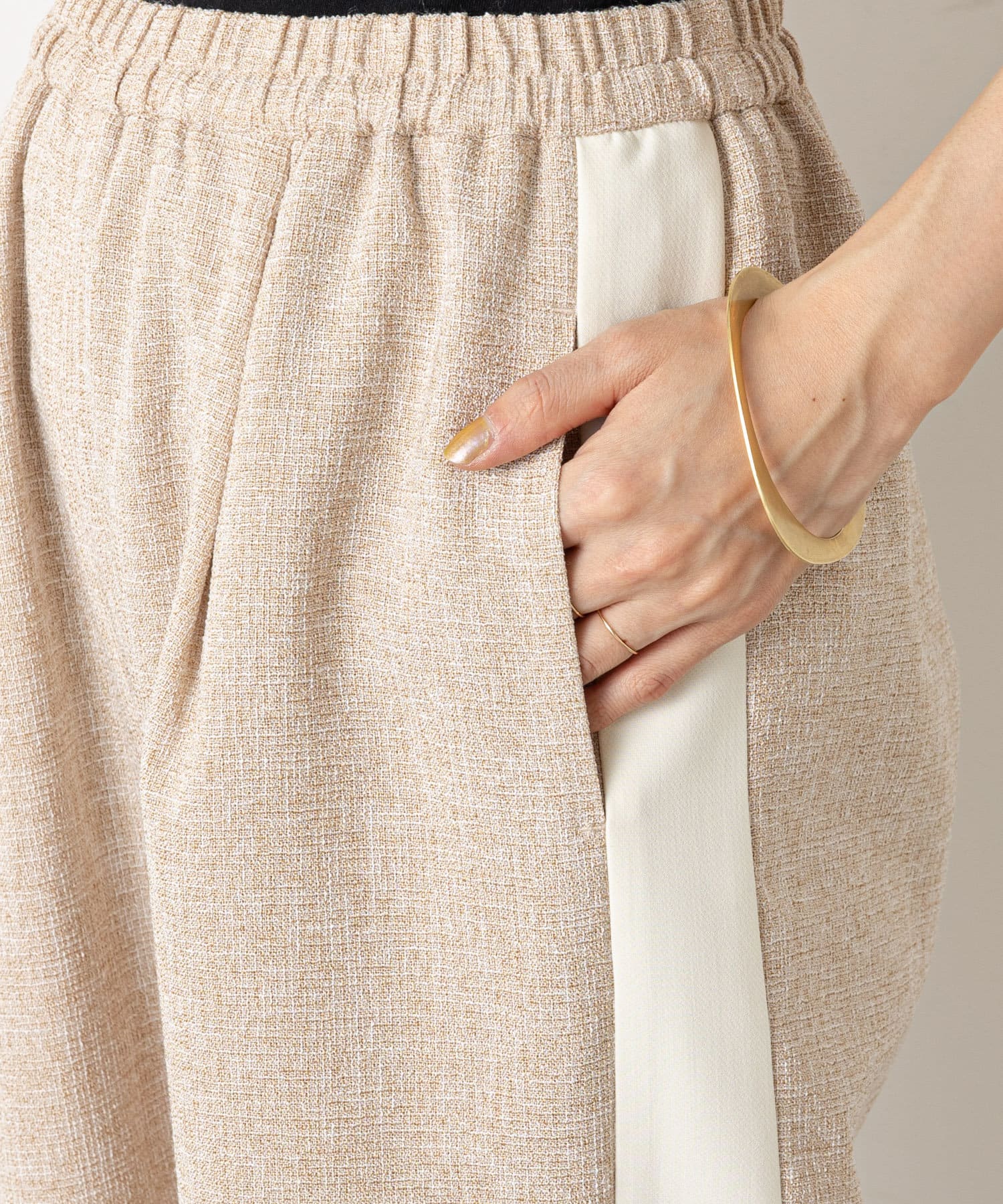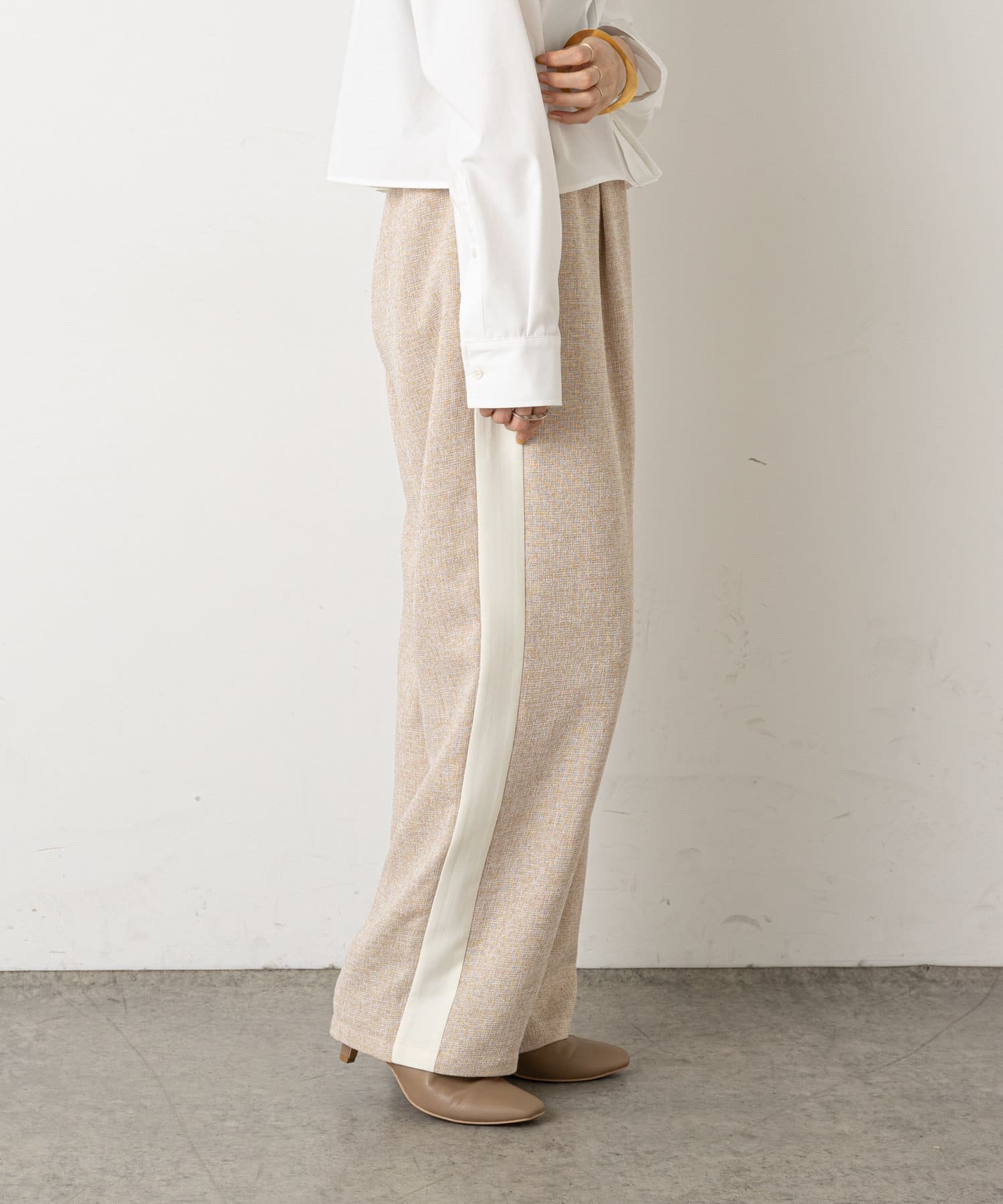 サイドラインがアクセントのツイード生地のカジュアルパンツ
