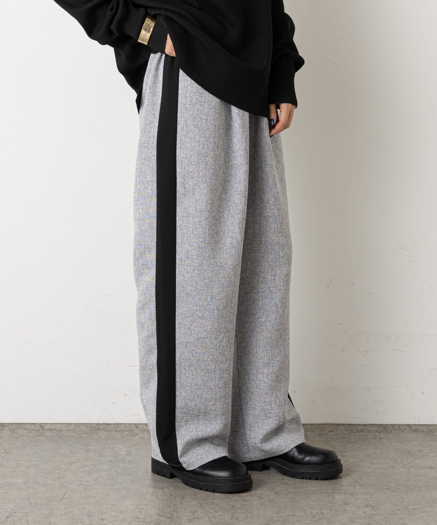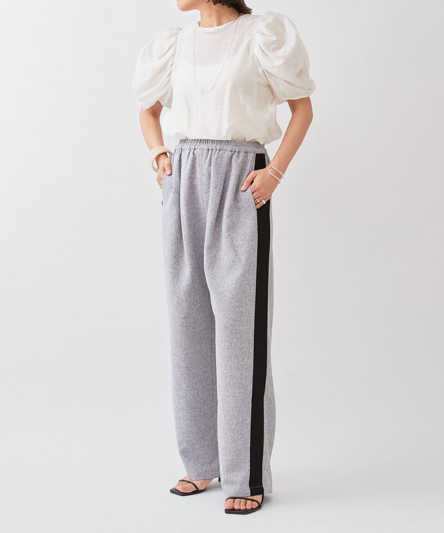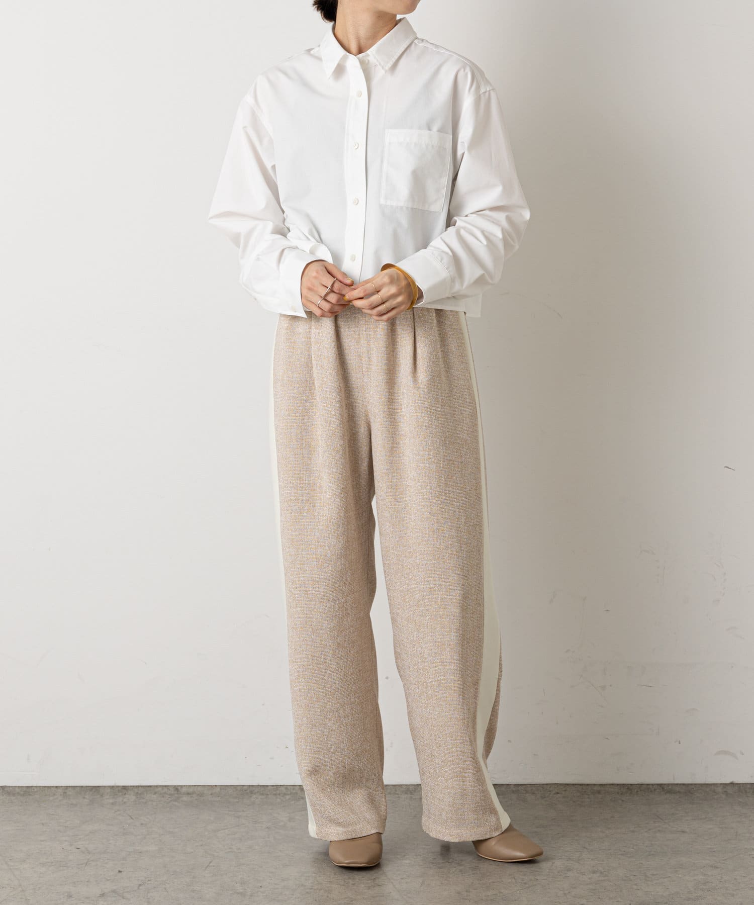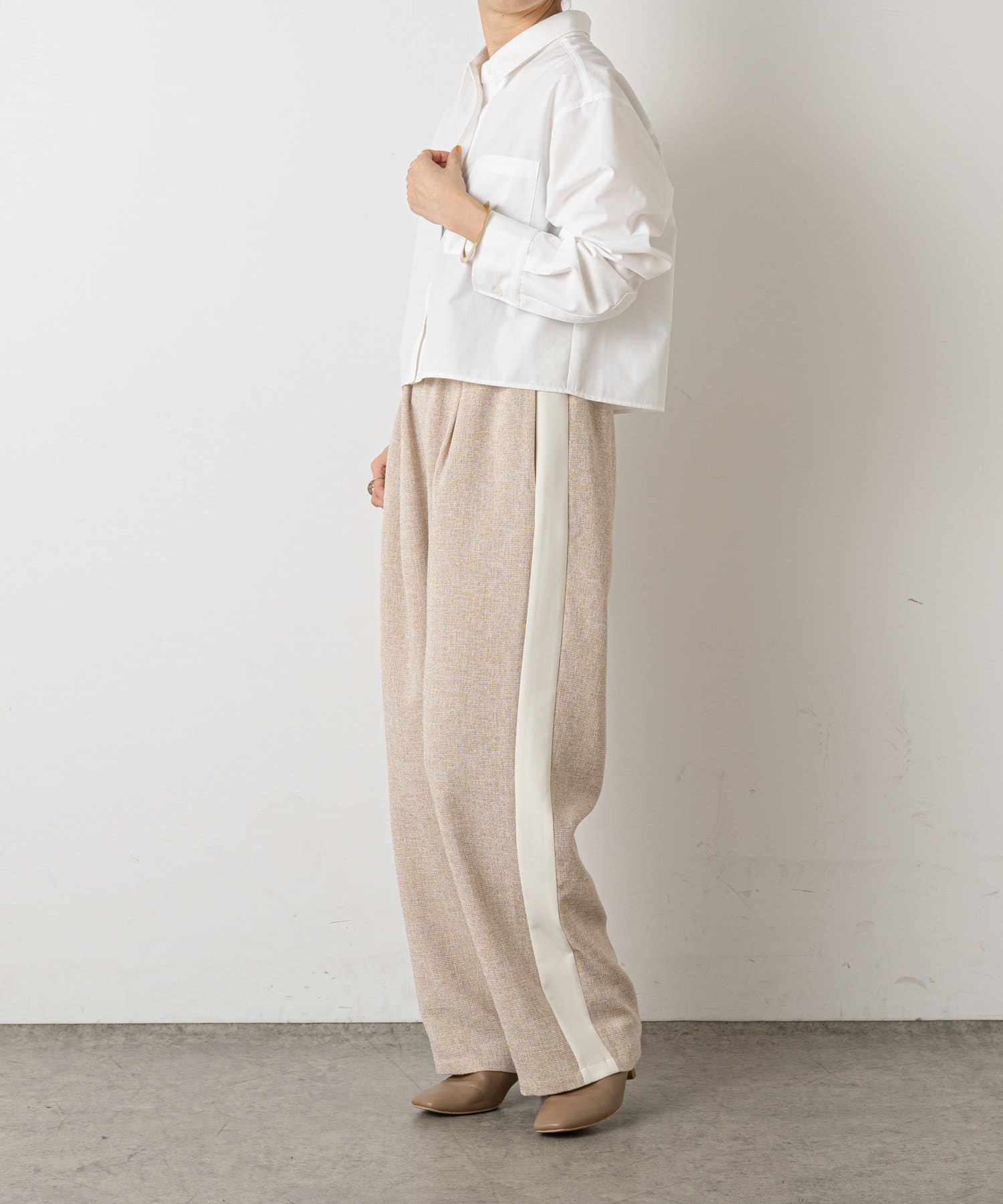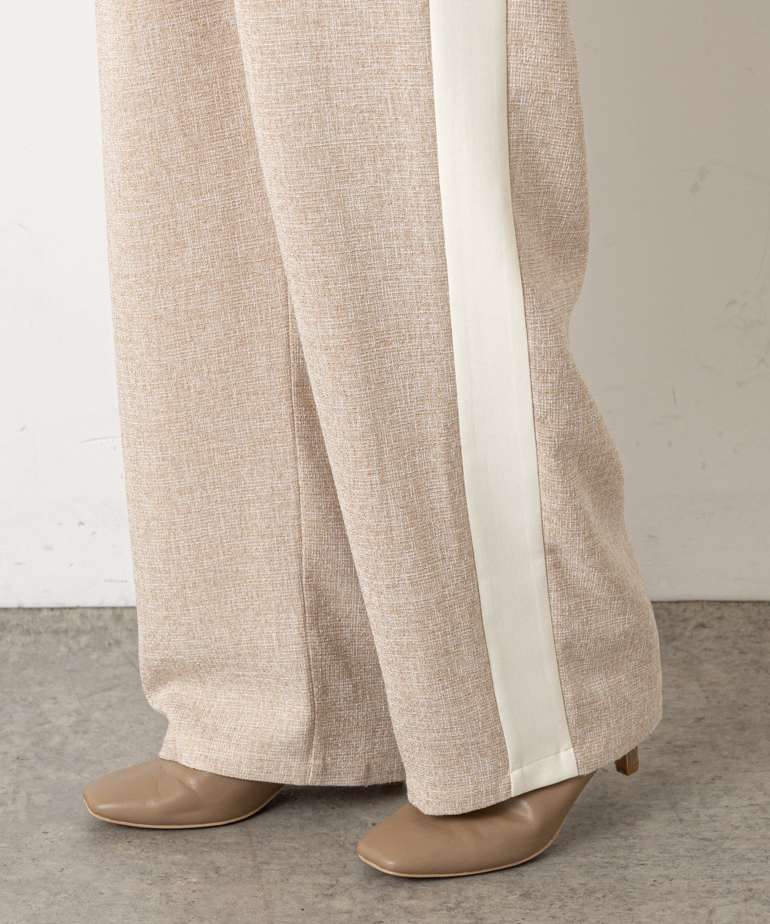 ・サイドのラインとツイード生地がコーディネートのポイントになるパンツです。