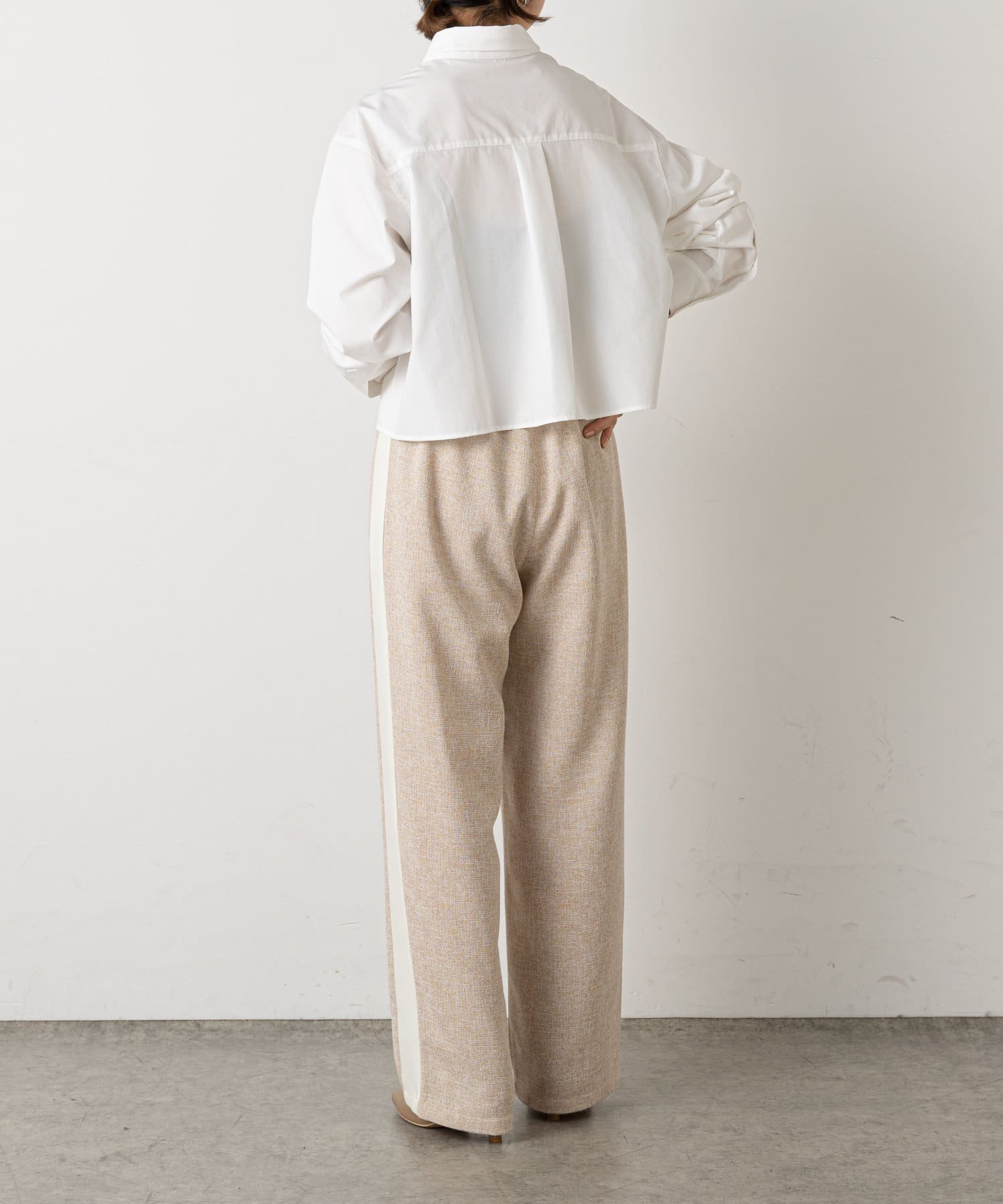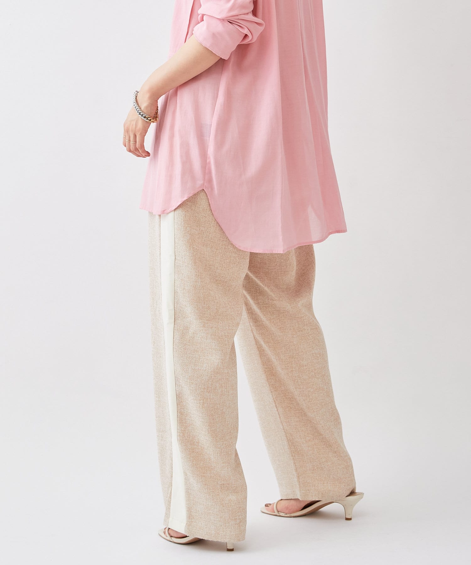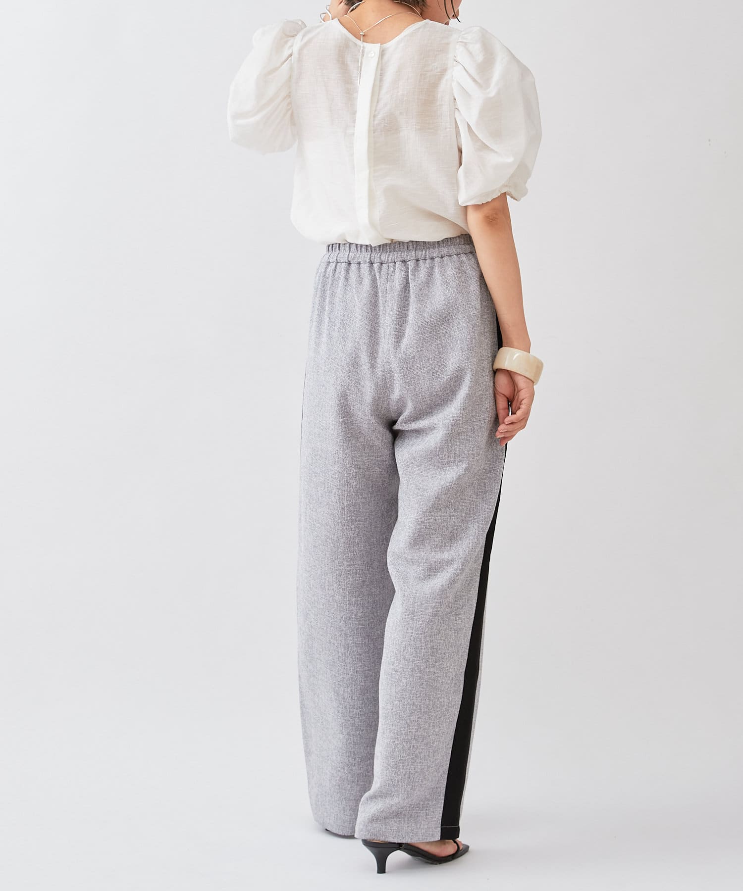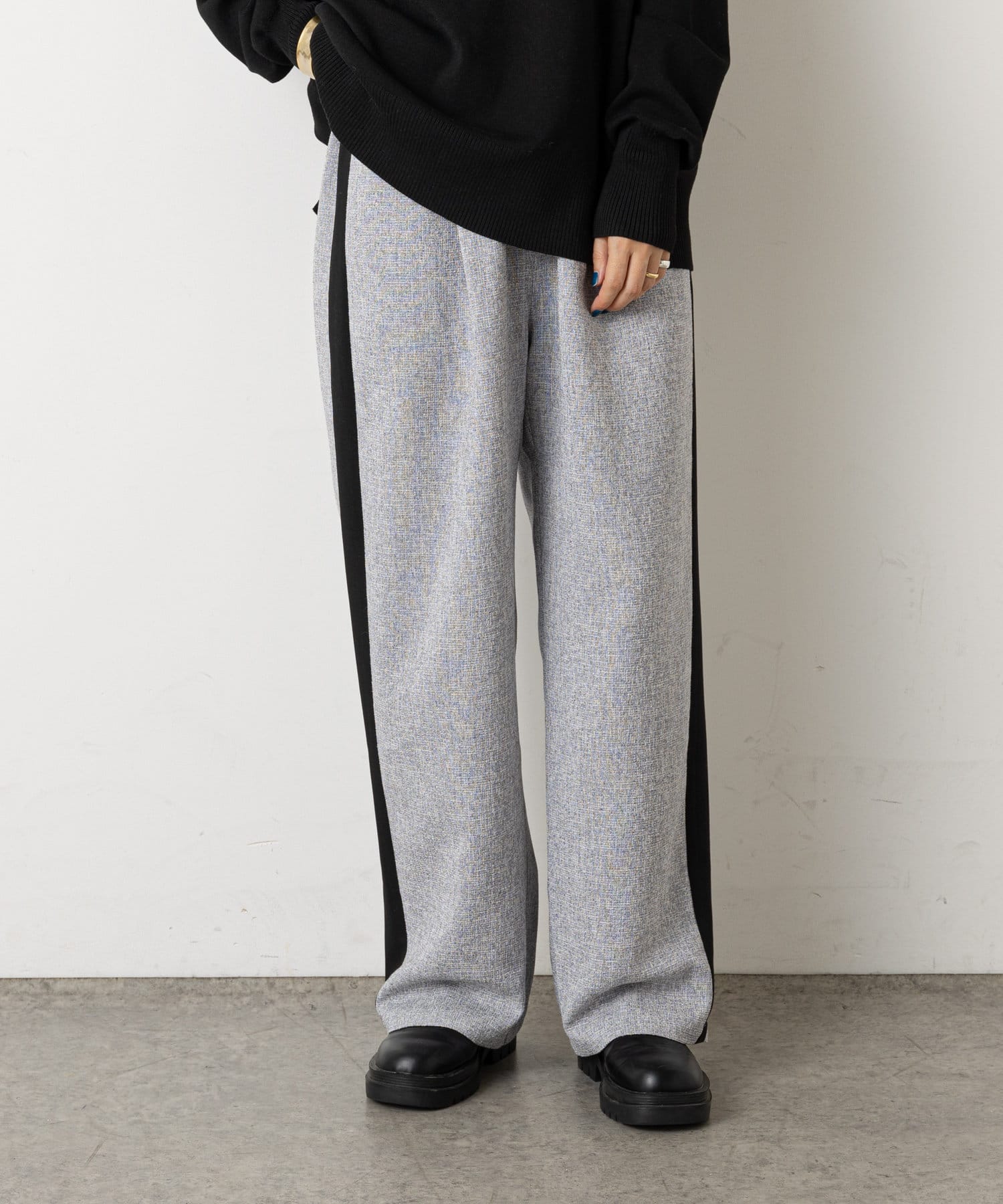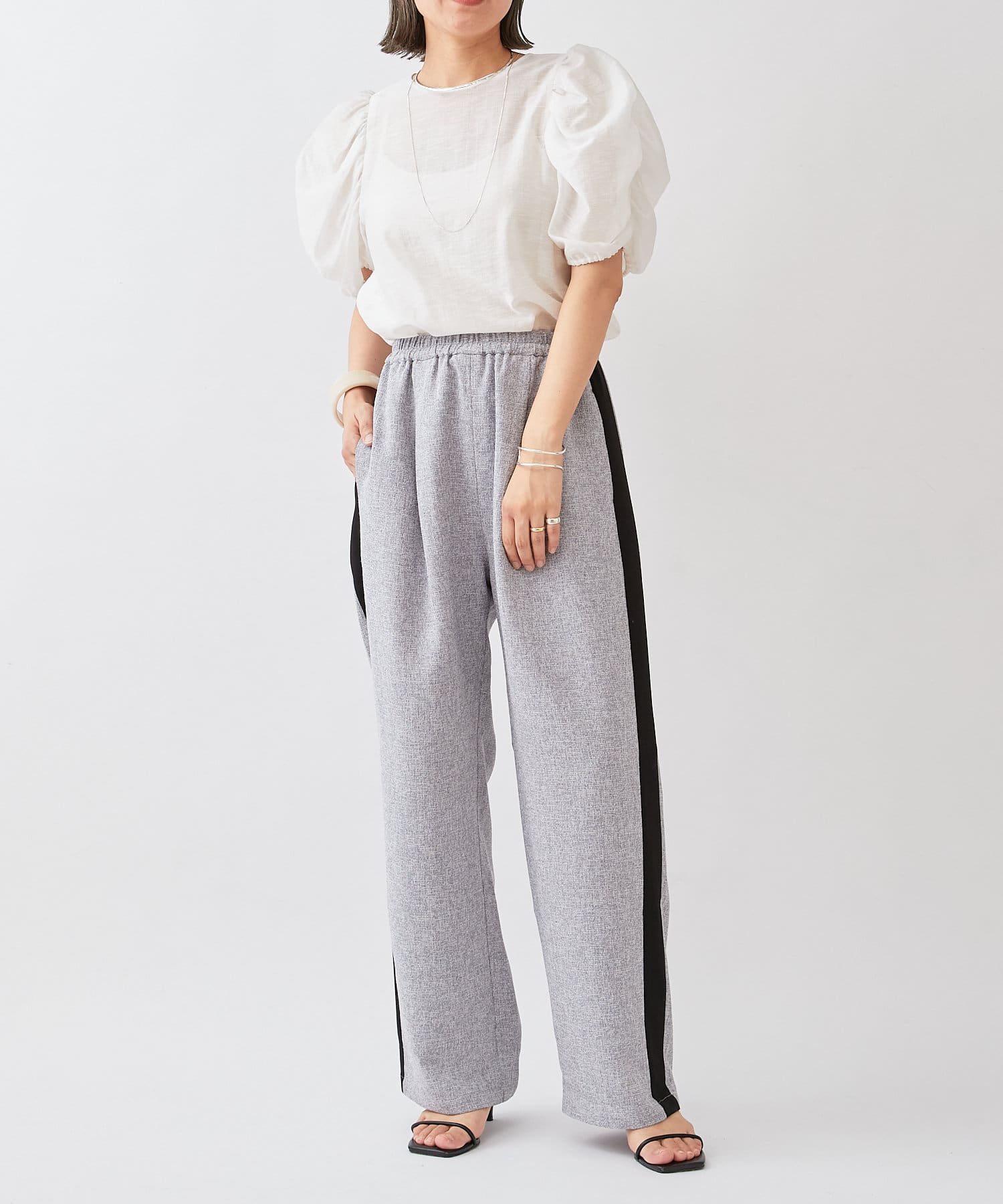 ・サイドのラインとツイード生地がコーディネートのポイントになるパンツです。