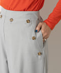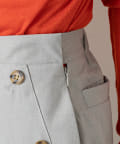 ウエストのボタンがスタイリングのポイントになるマリンパンツ