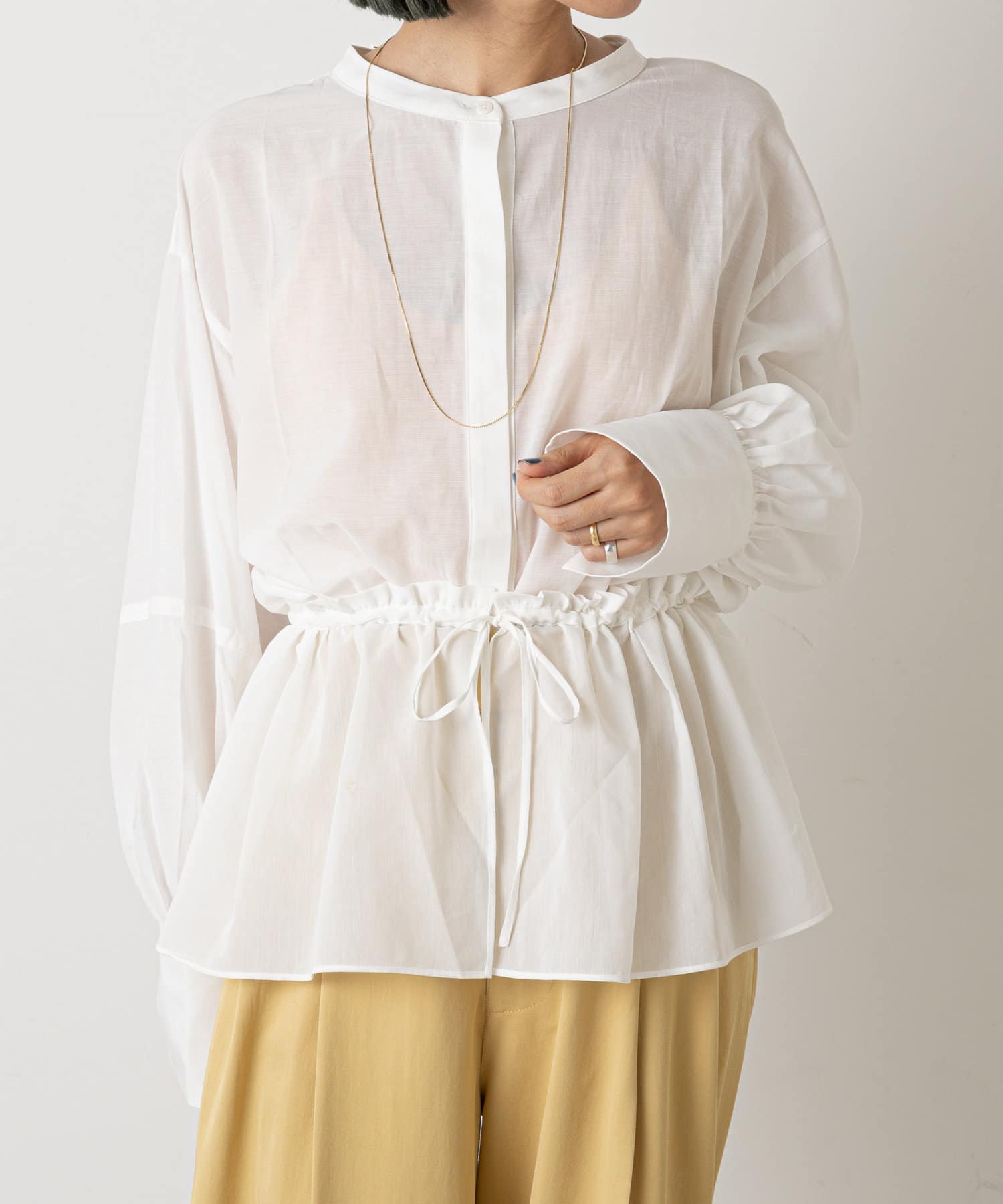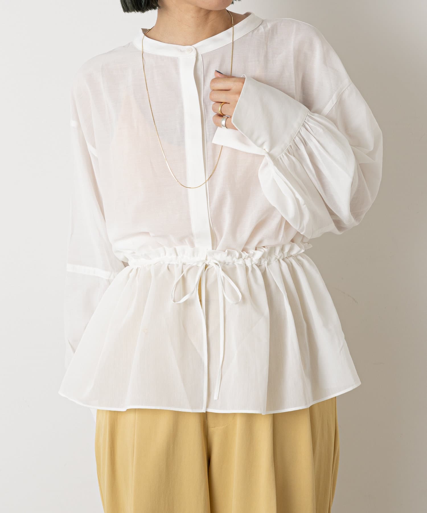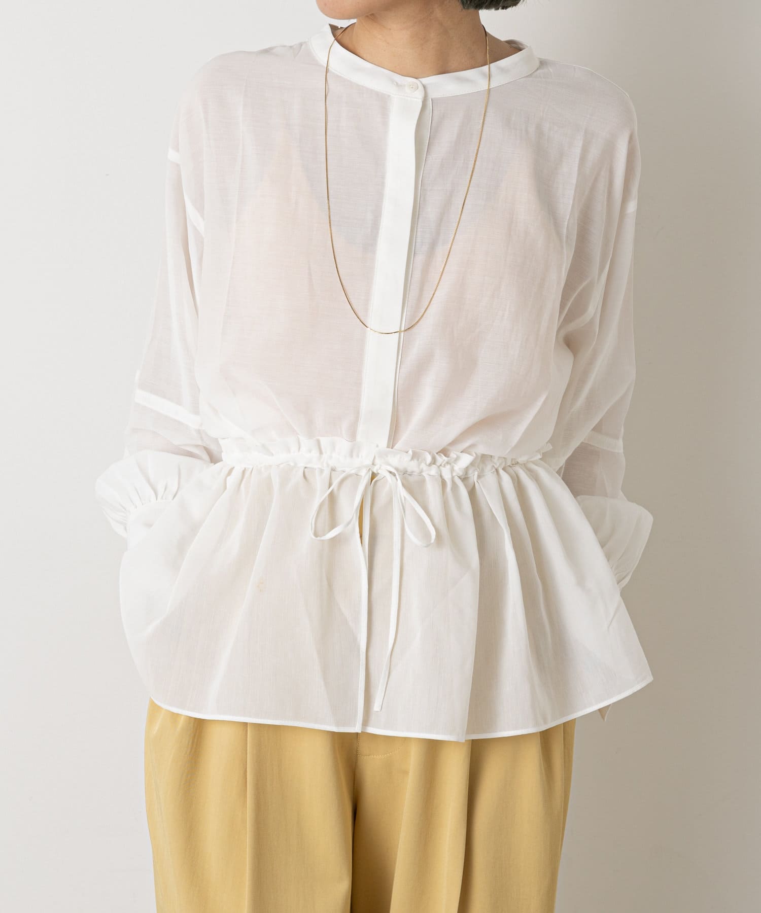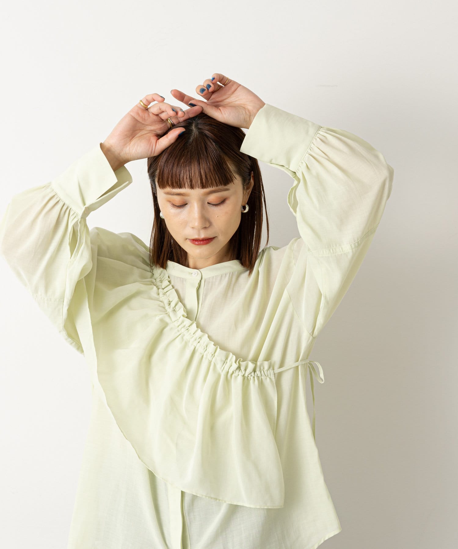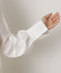 ・柔らかい素材感で一枚で春らしくなる華やかなブラウスです。