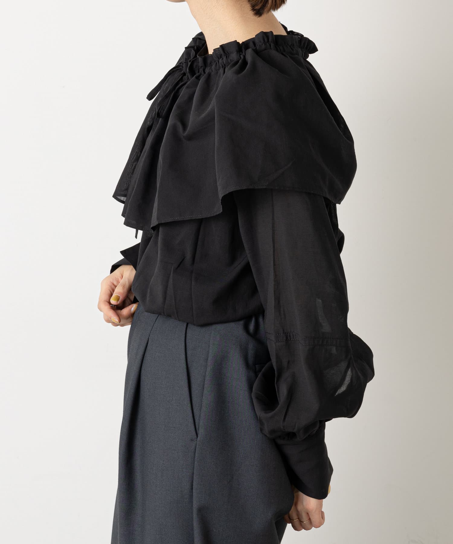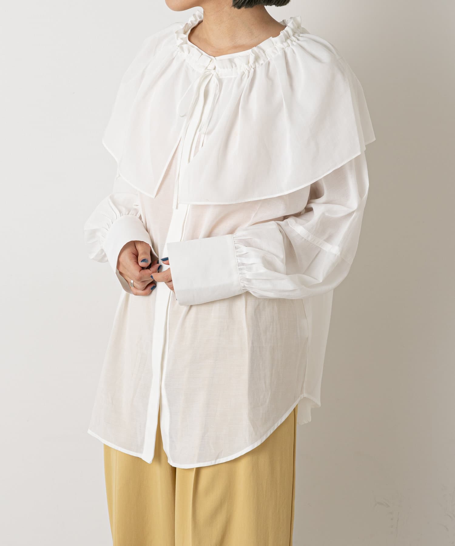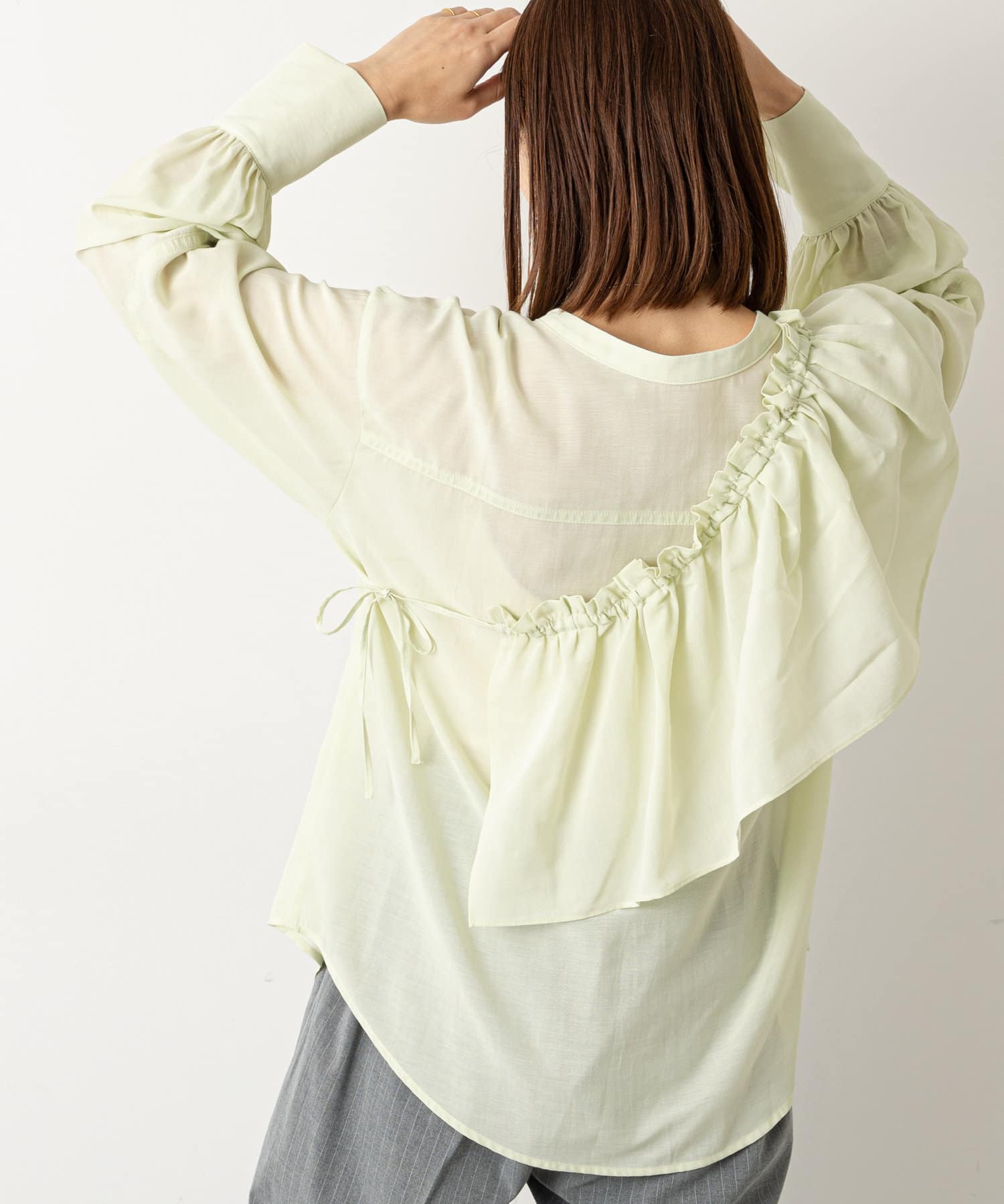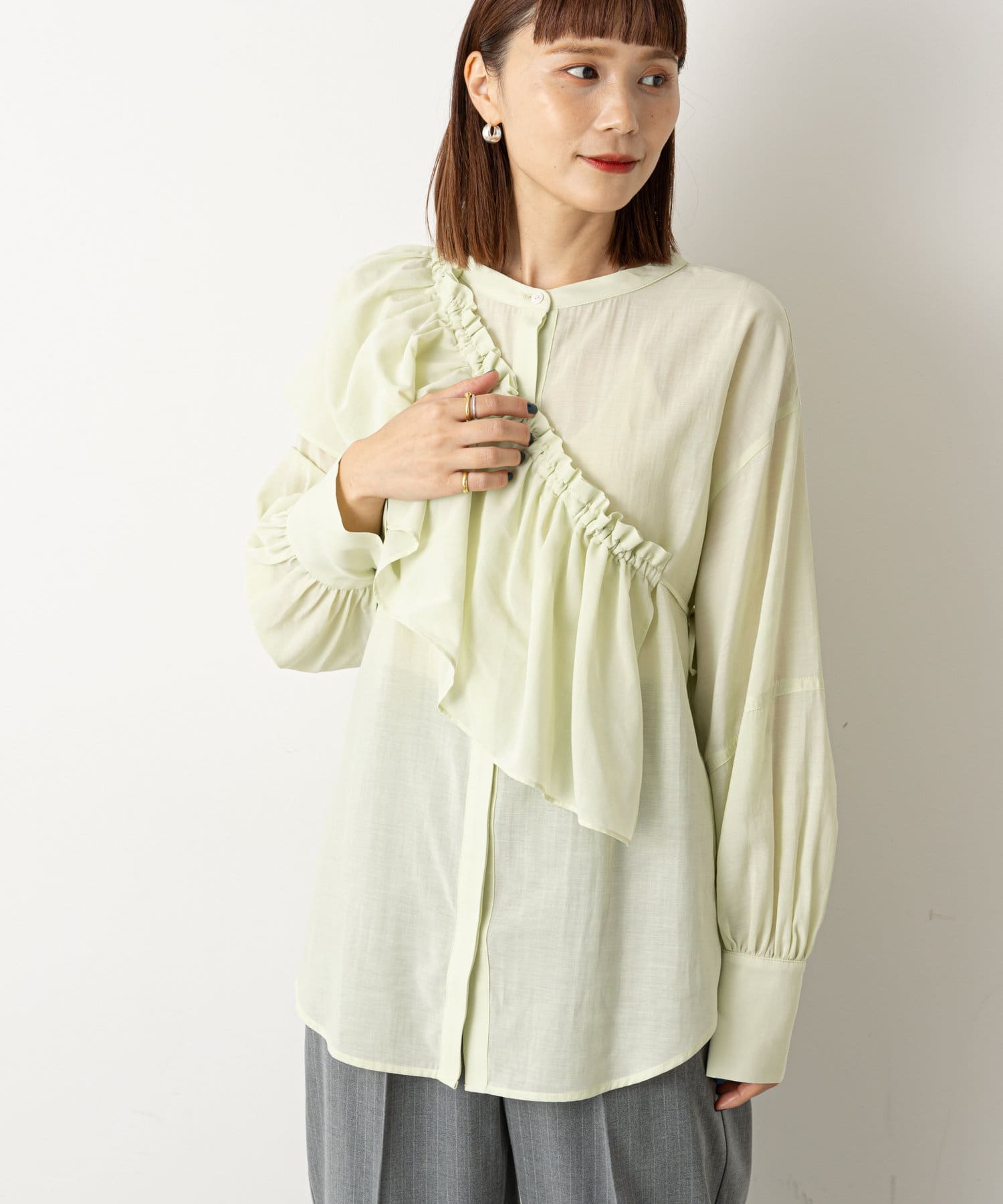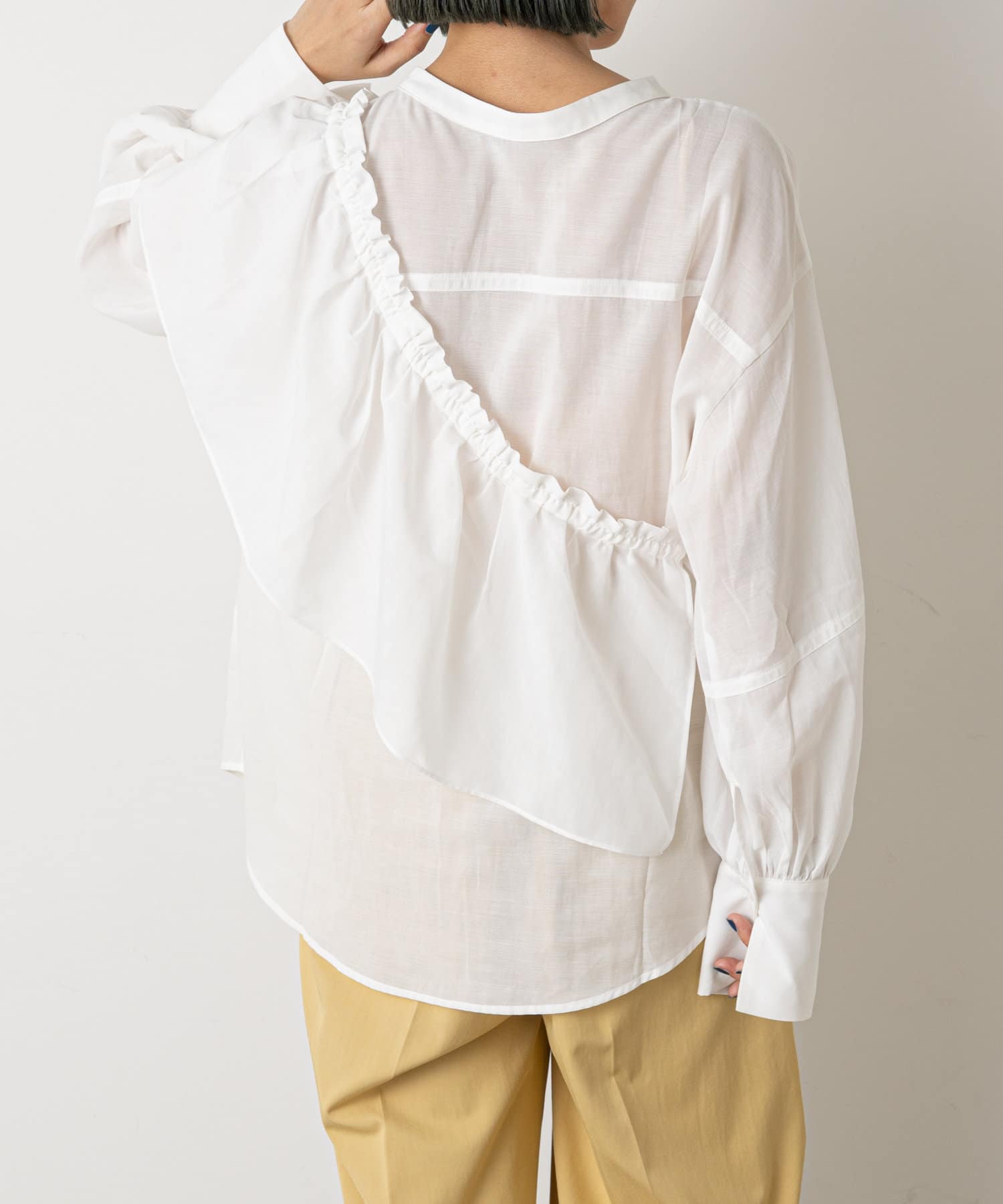 フリルがポイントのマルチに使えるブラウス