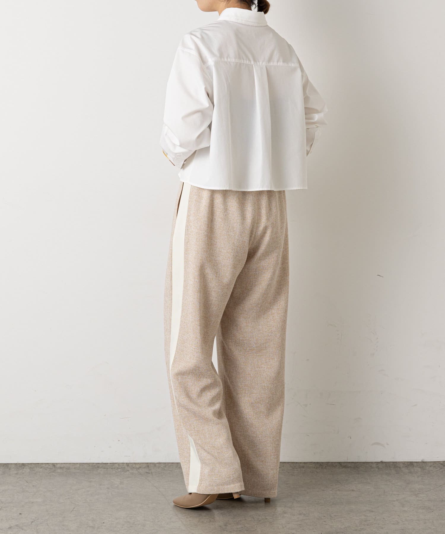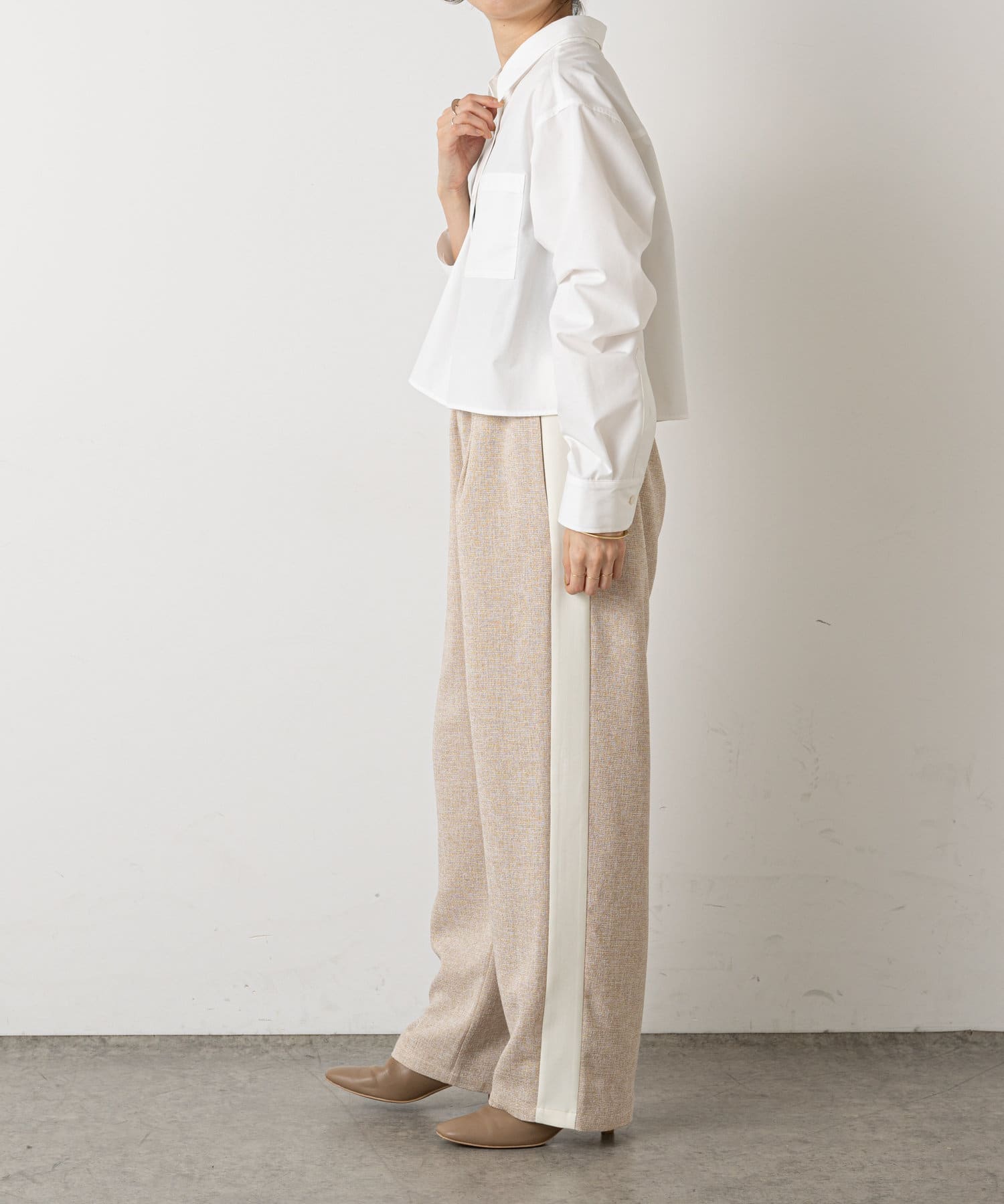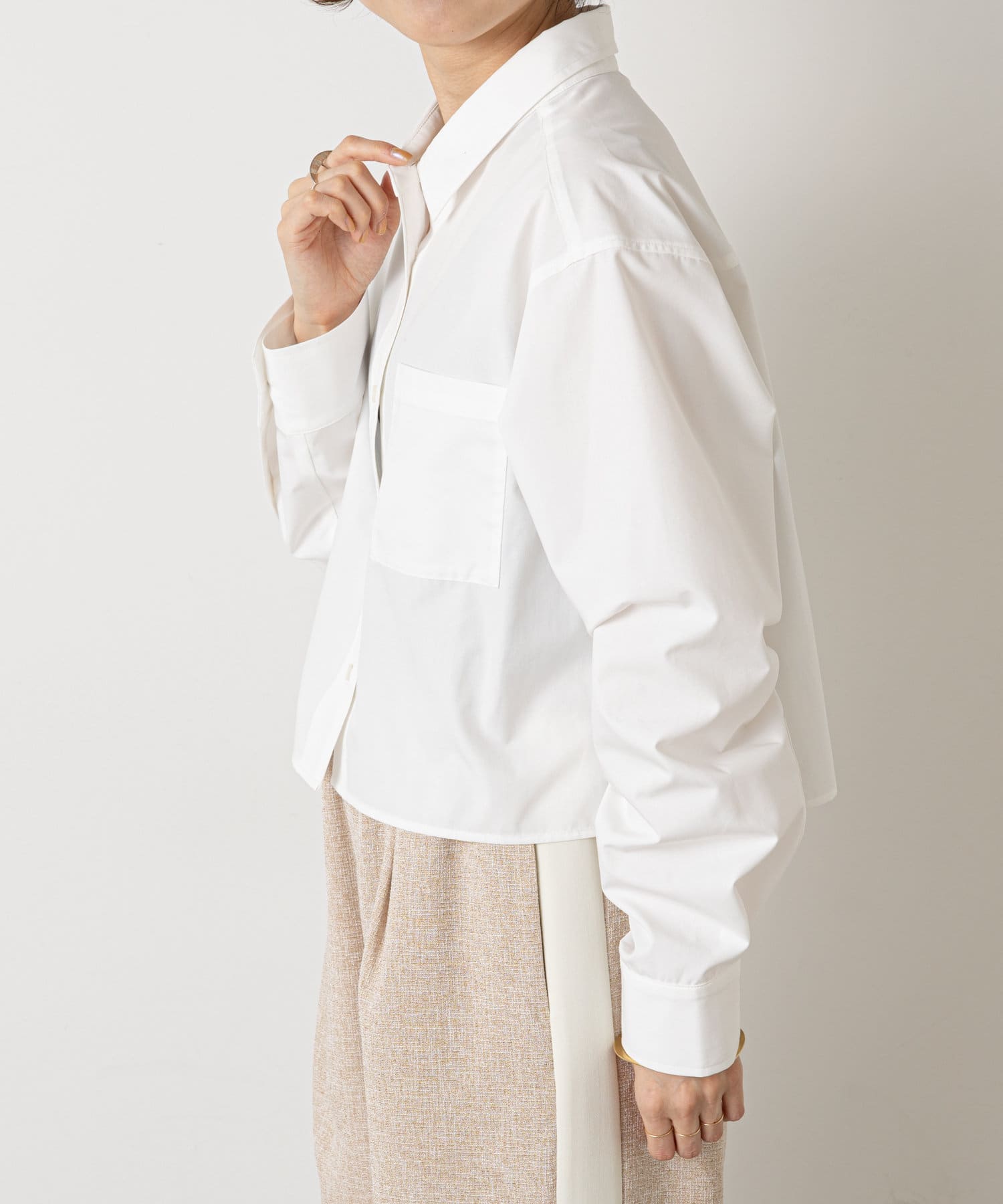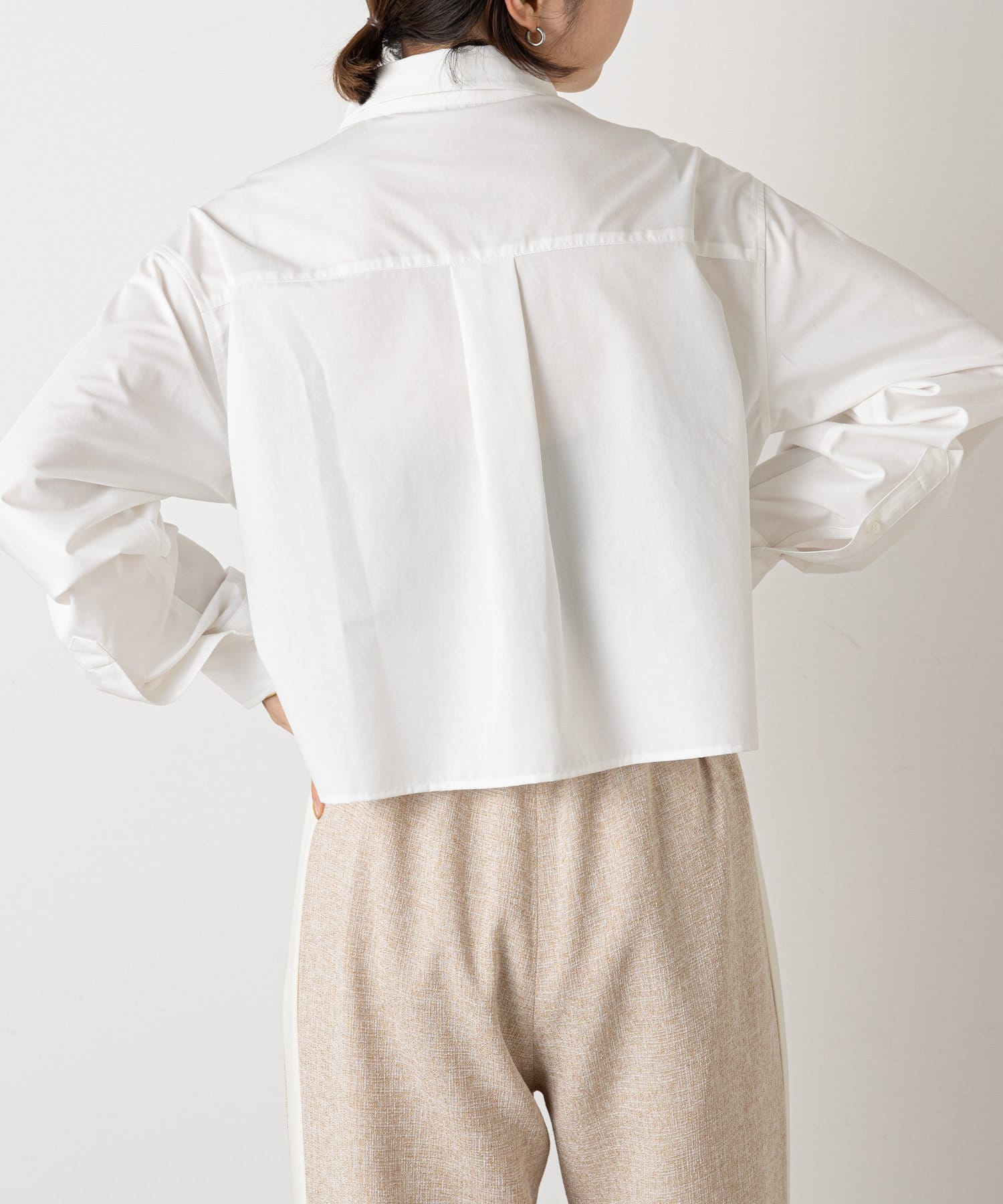 ・ショート丈なのでハイウエストのボトムスを合わせていただくと、さらにスタイルアップ効果も叶えてくれる一枚です。