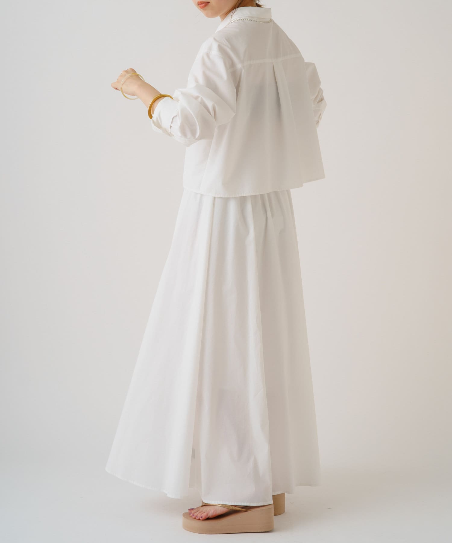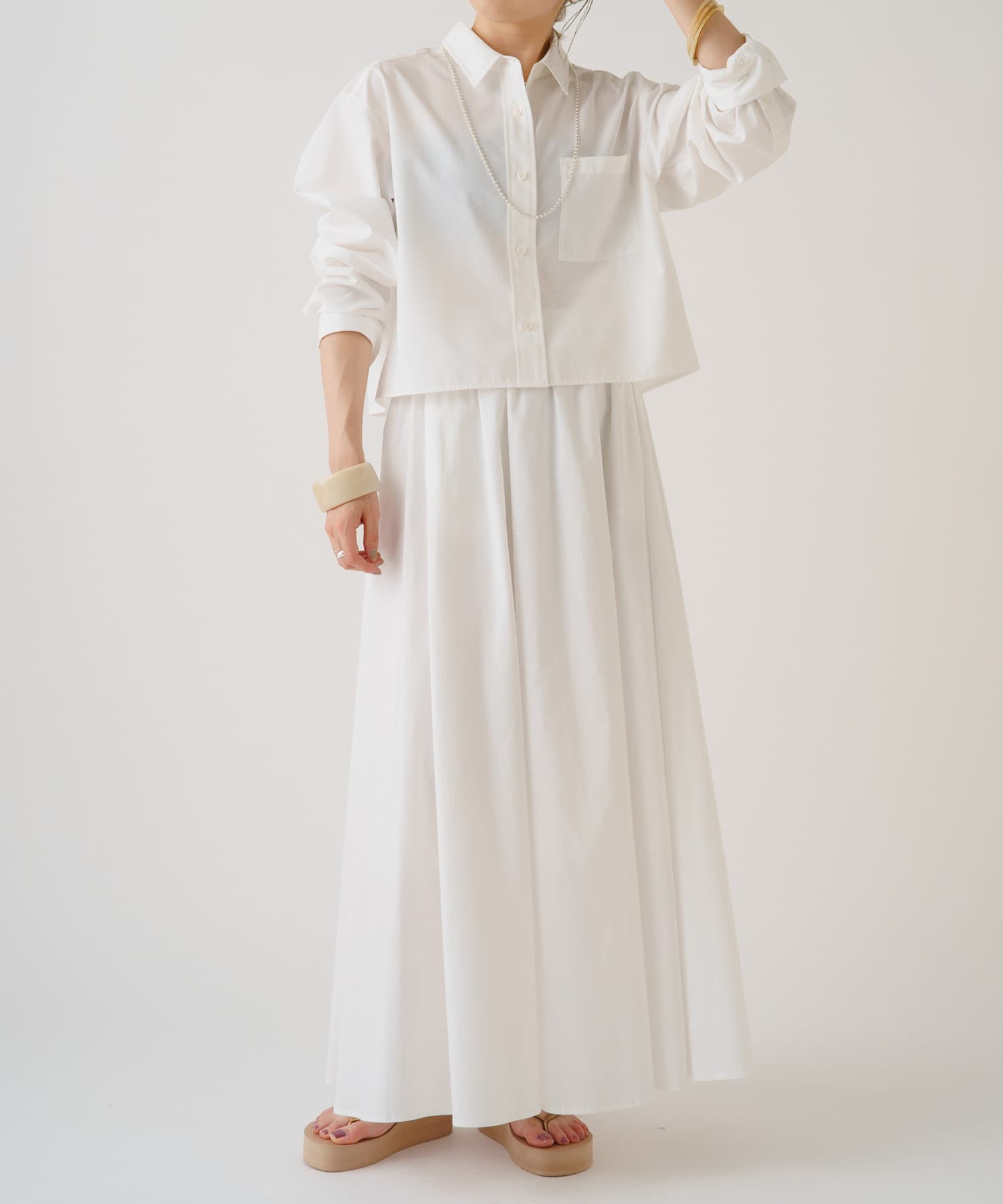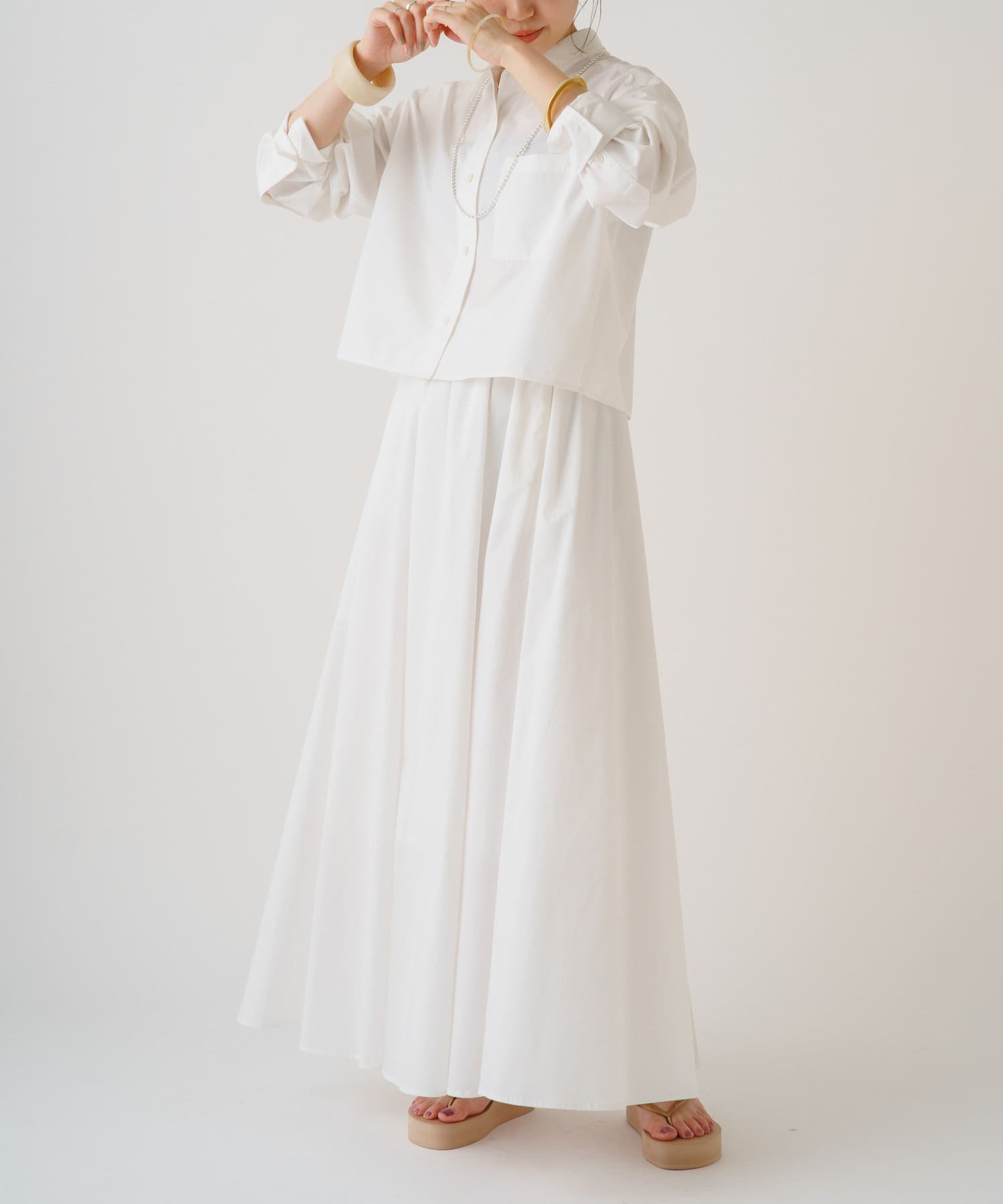 届いてから連日着てしまうほど着やすく合わせやすいです!硬いシャツではなく想像よりも柔らかく、手持ちがワンピやスカートが多いのでバランスがすごく合わせやすくて重宝してます。このシャツと合わせた日はスラっとしてると褒めてもらえることも多いです!