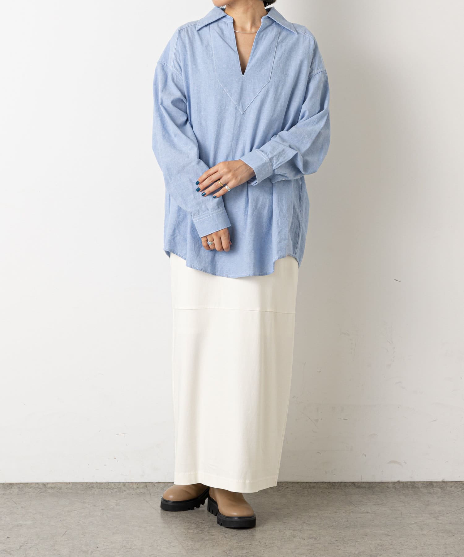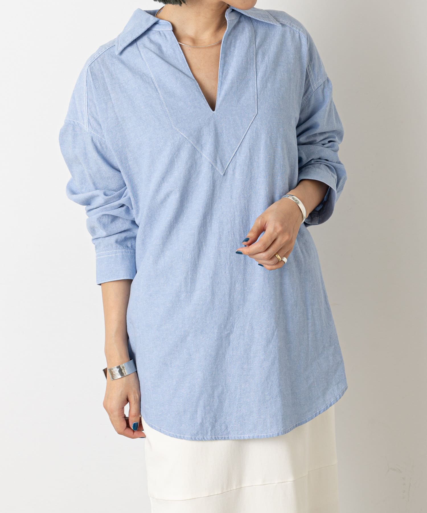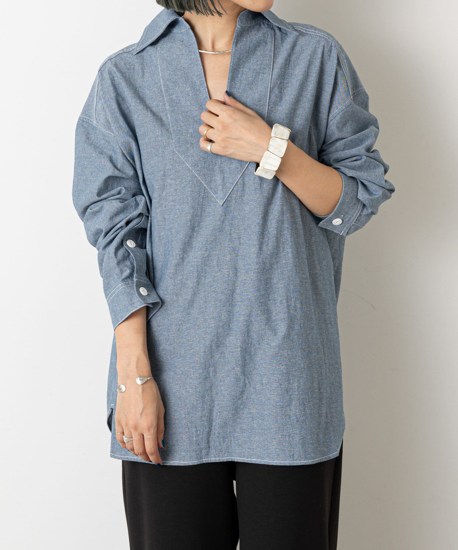 ・スッキリとしたスキッパーカラーでコーディネートに抜け感がでるシャツです。