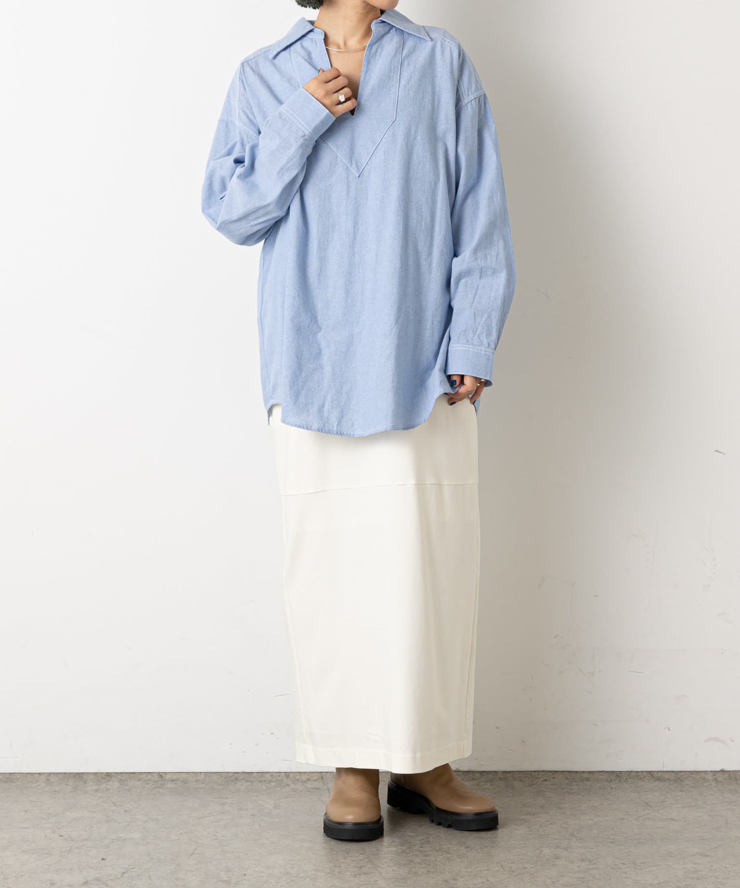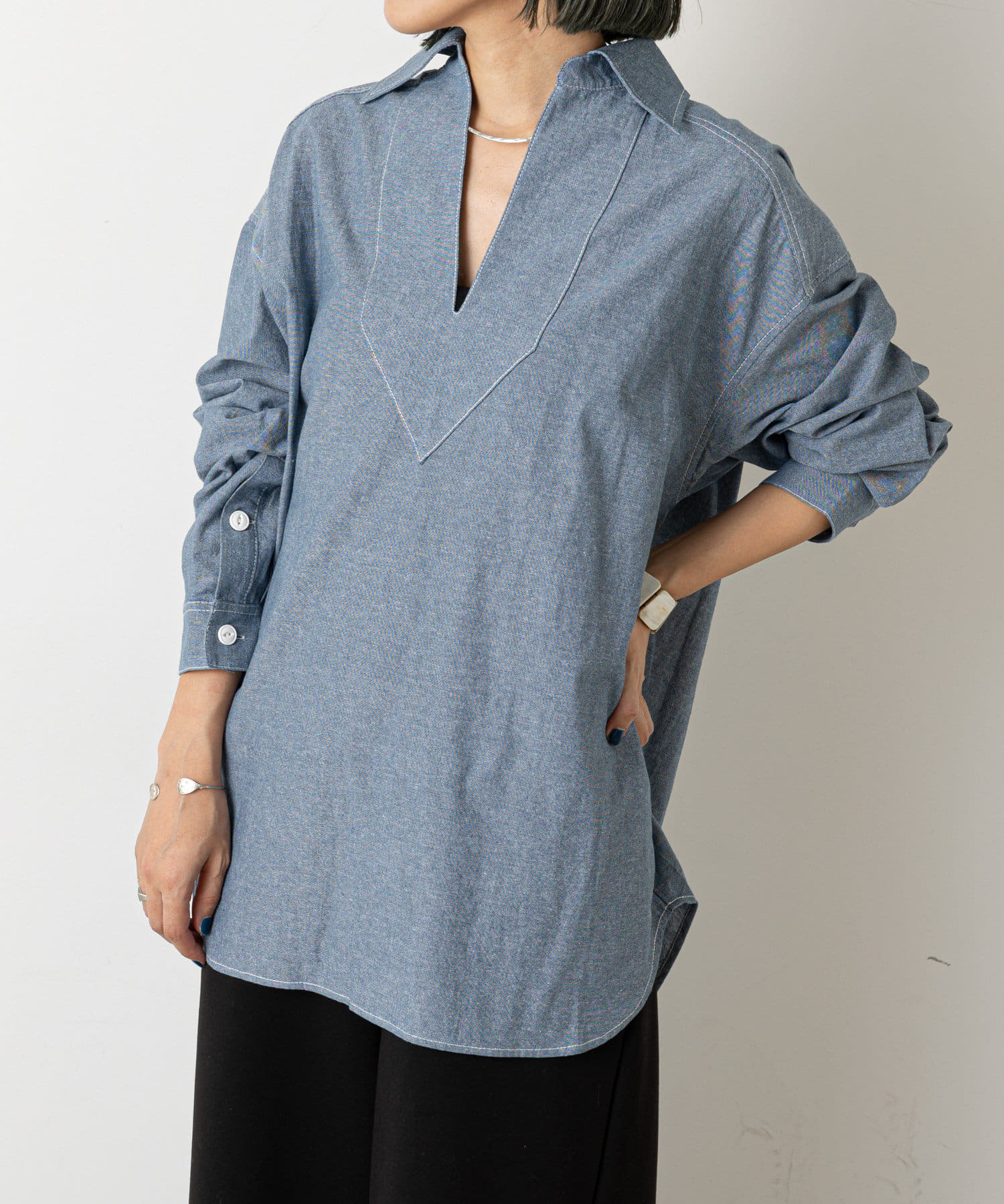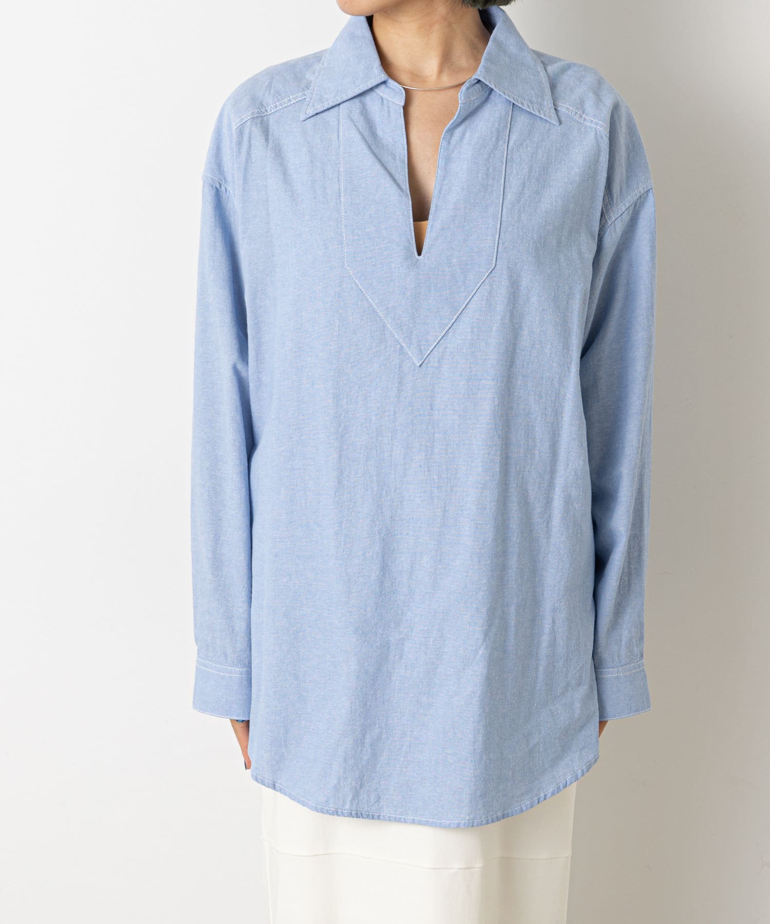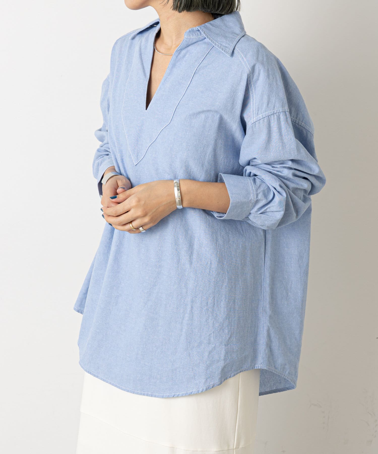 ・スッキリとしたスキッパーカラーでコーディネートに抜け感がでるシャツです。