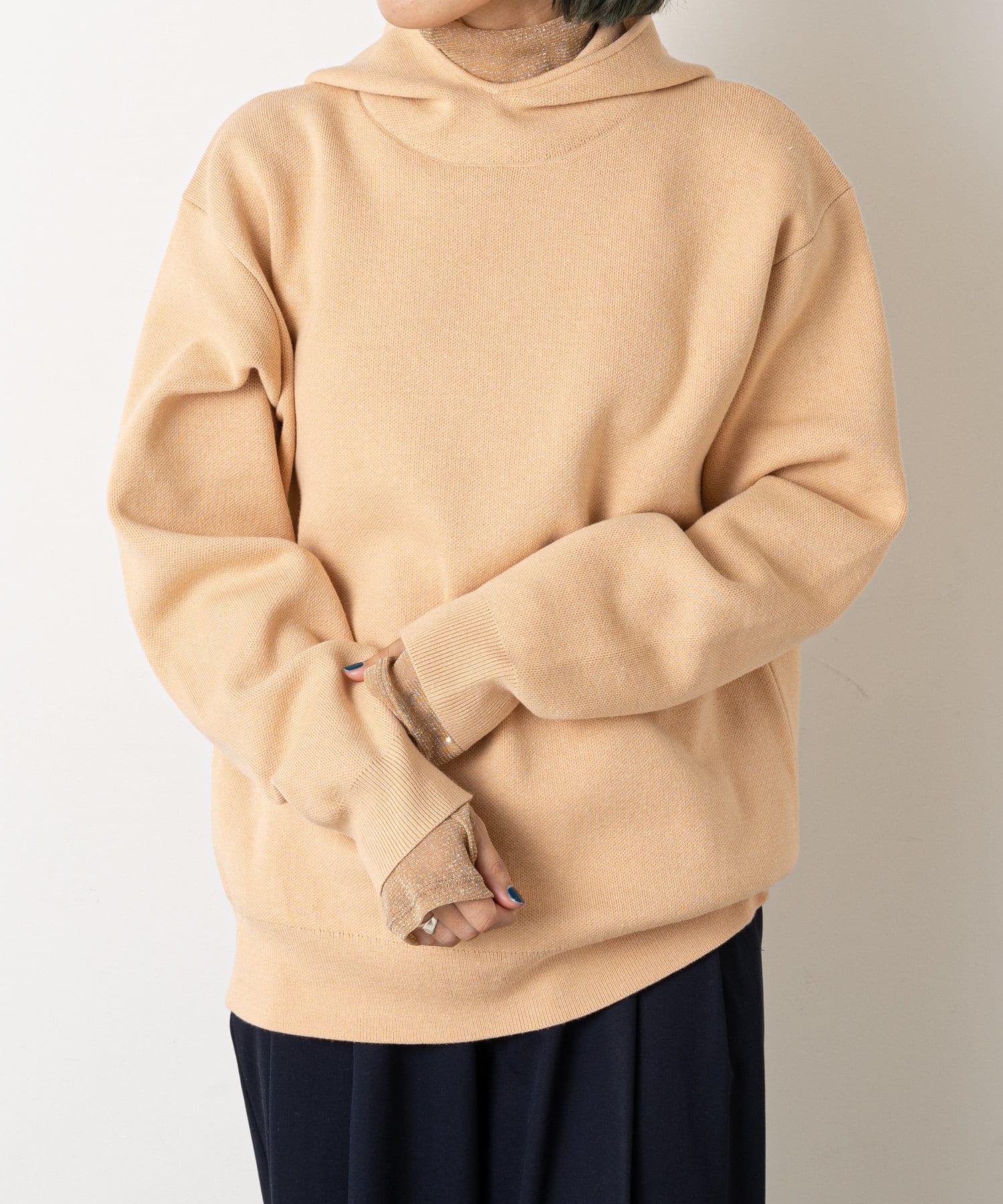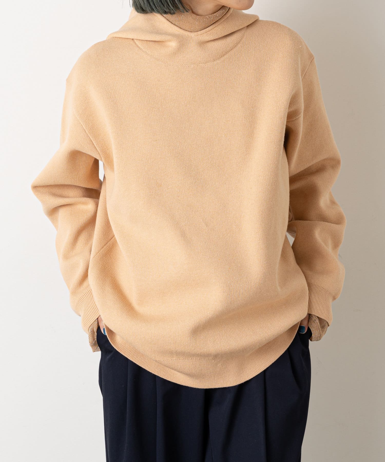 フードがポイントのスウェットライクニット
