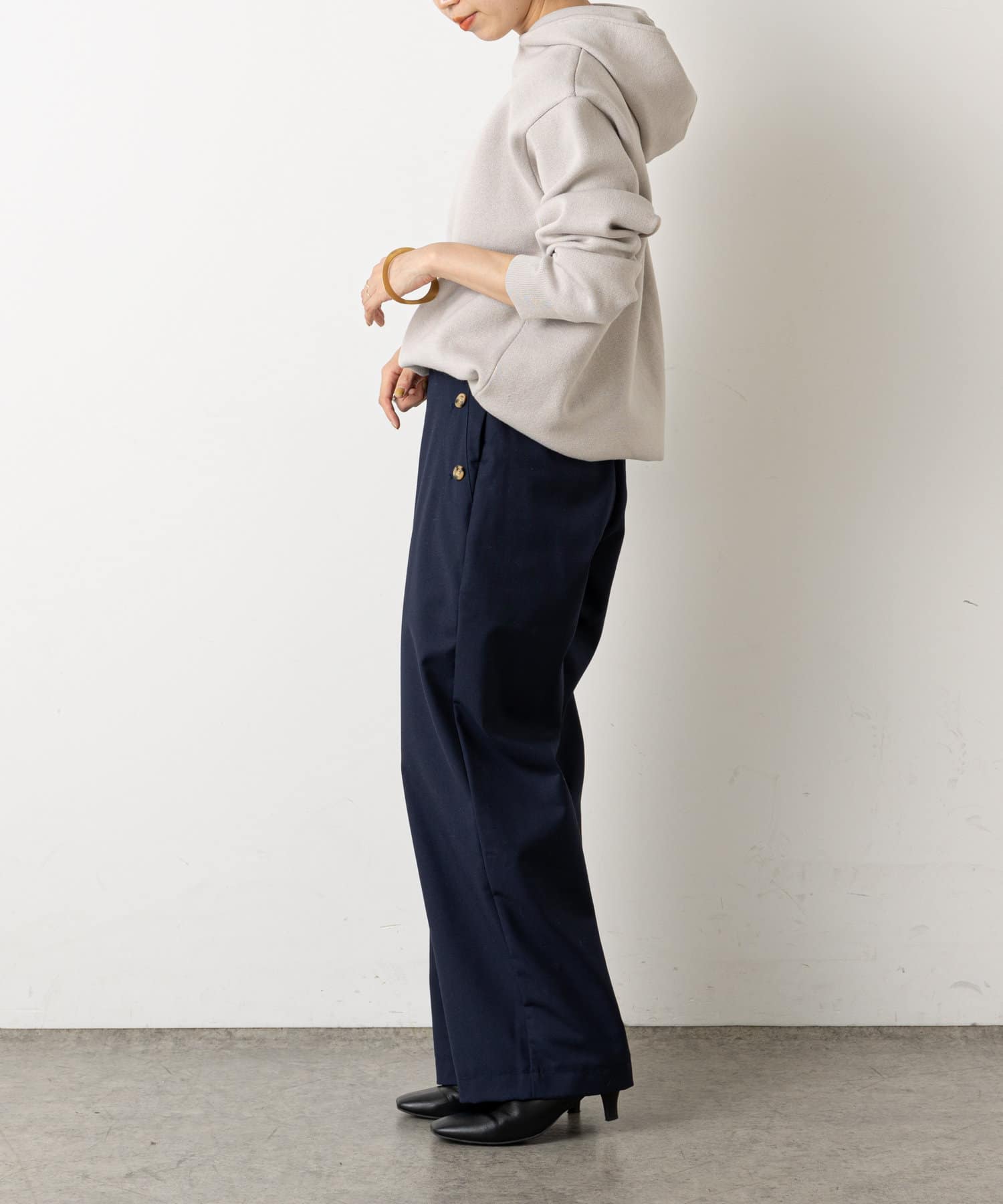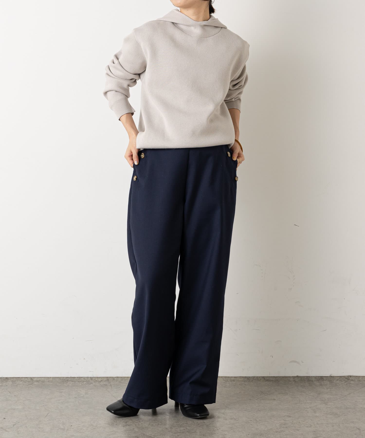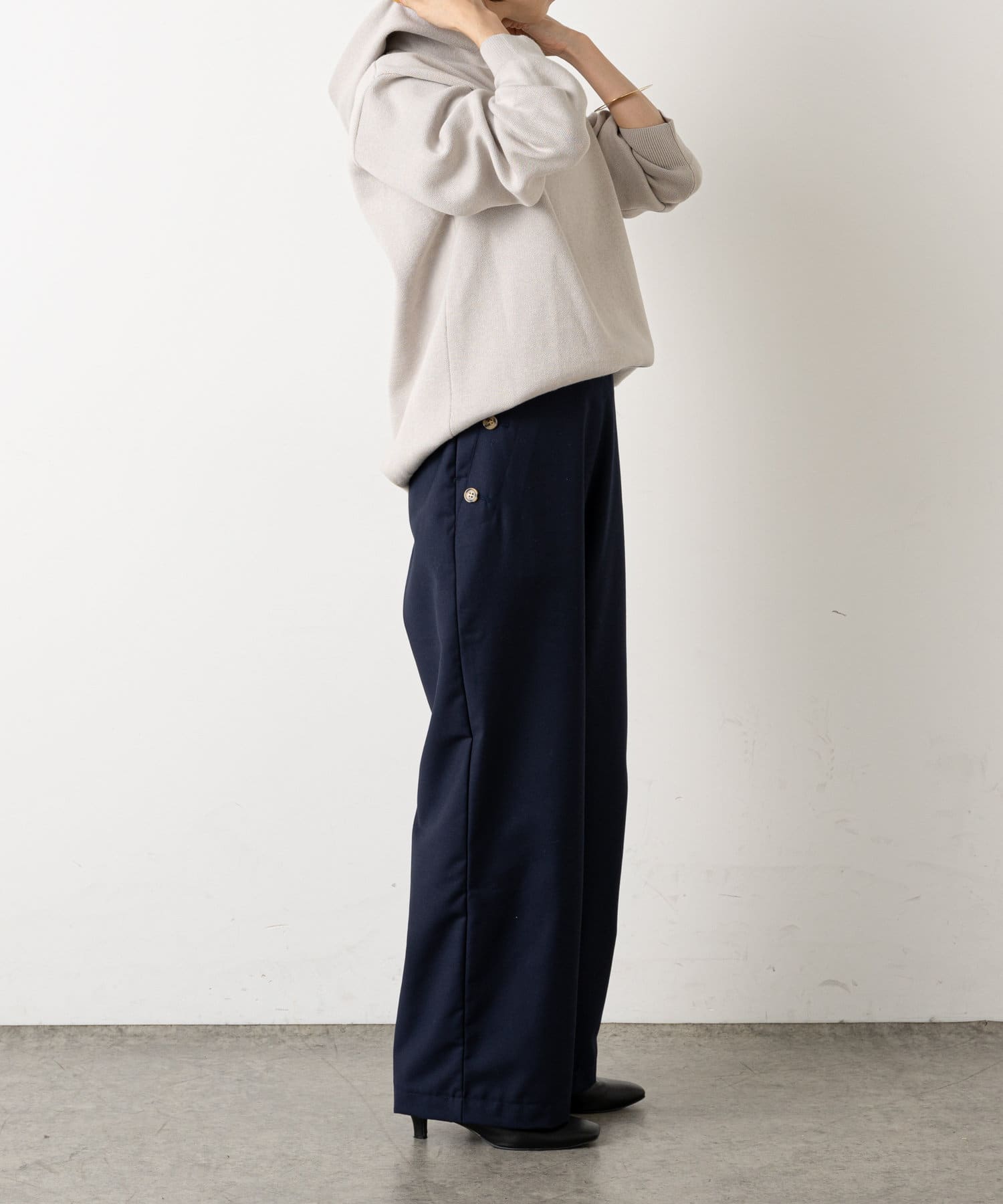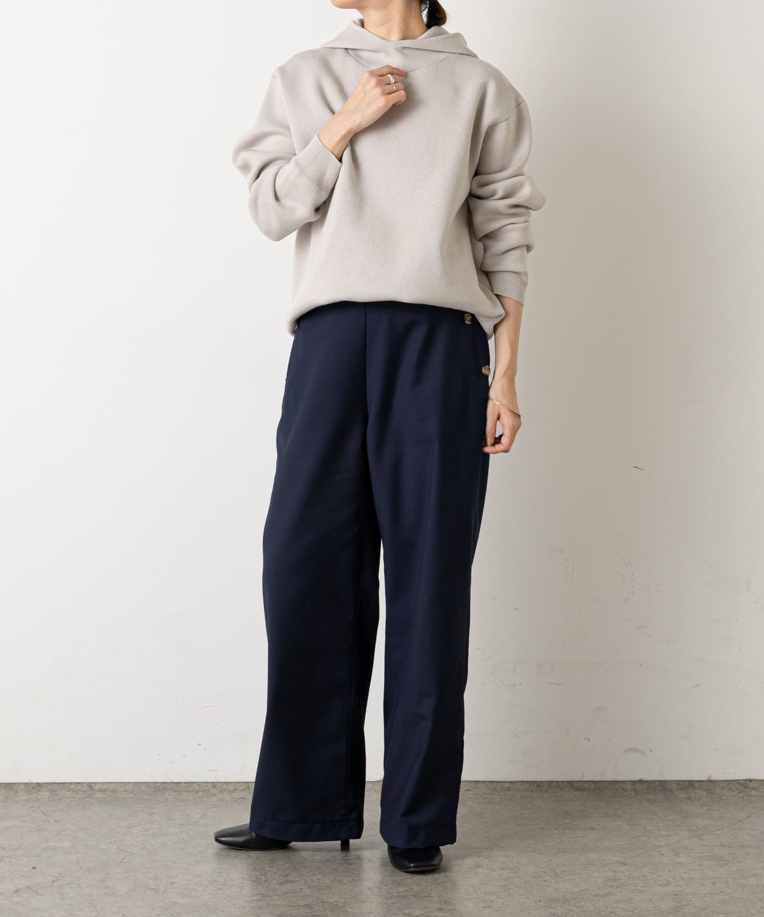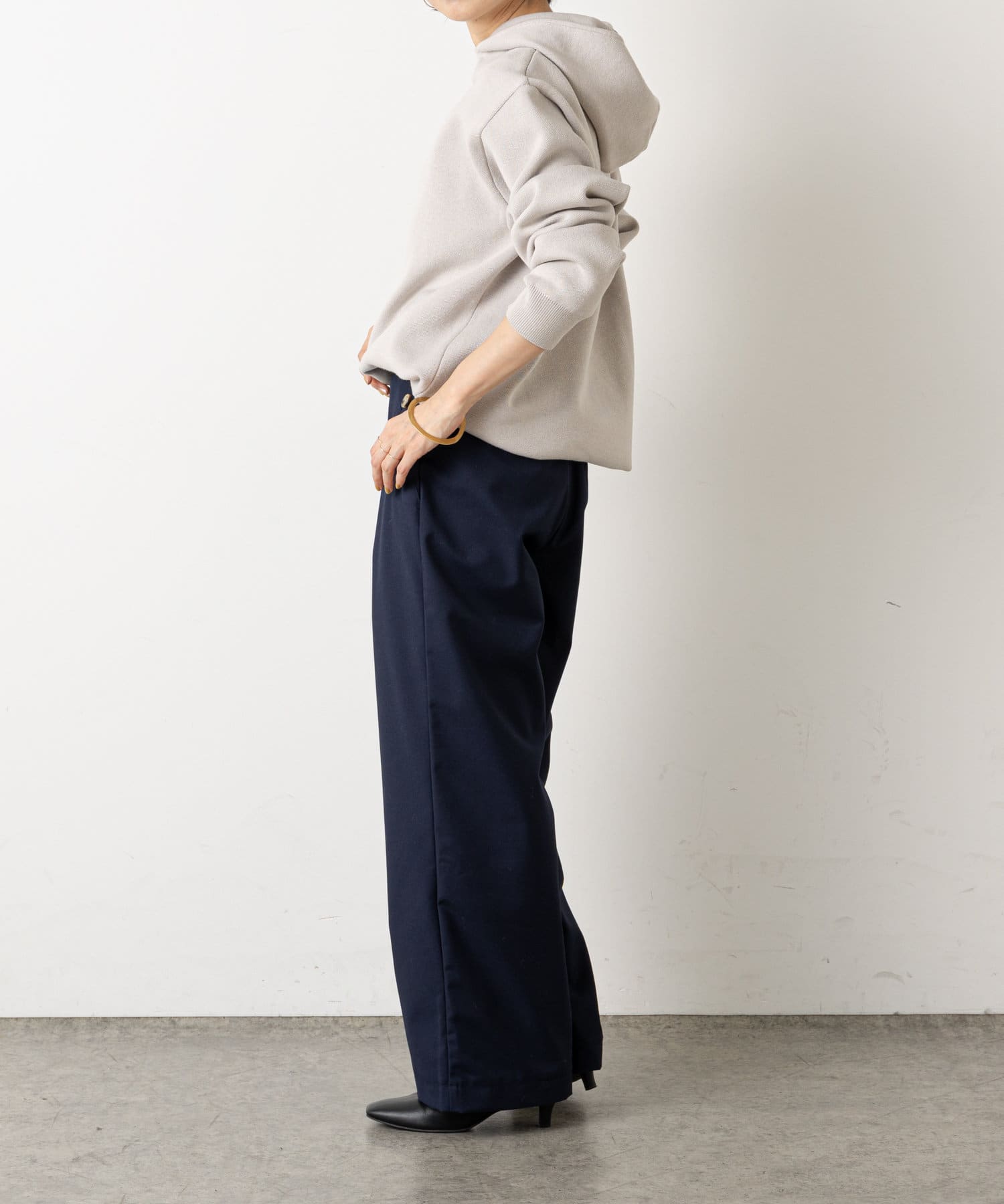 ・ニット素材ですが、スウェットの様にしっかりとしたややハリのある生地感で、季節問わずに長くお使いいただけます◎