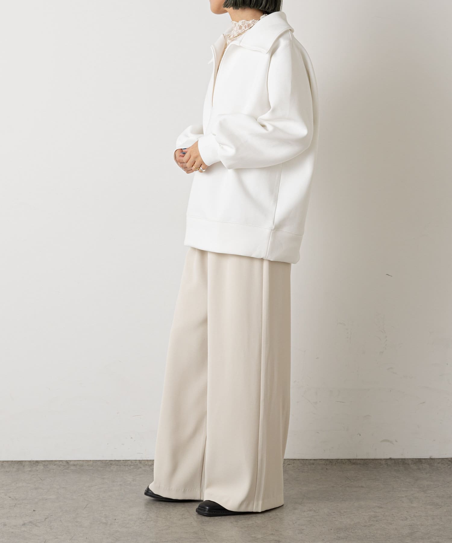 ・女性らしくも見えながら、柔らかい素材感でリラックスして着ていただけます。