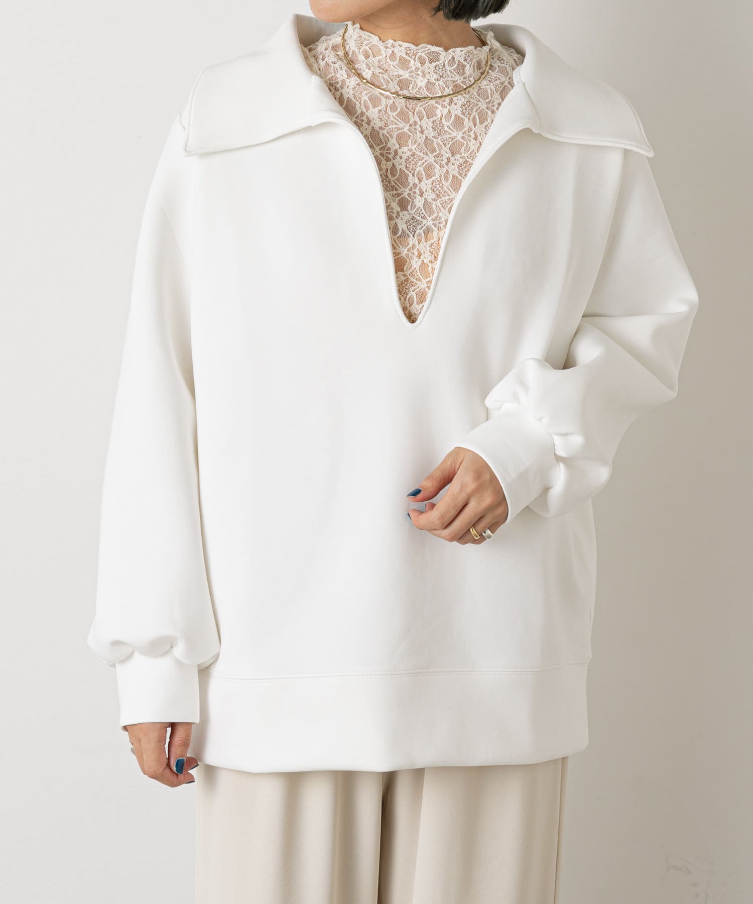 • OUTLET(アウトレット) 【Omekashi】襟付きVプルオーバー