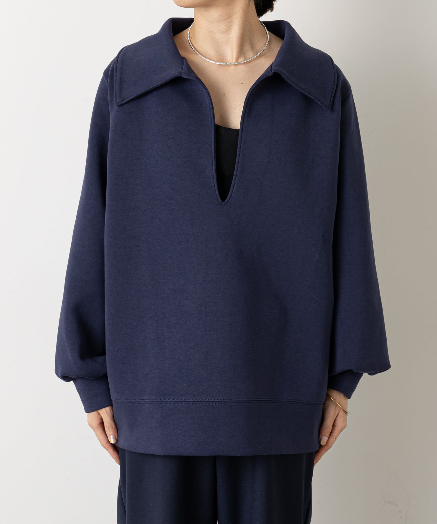 【Omekashi】襟付きVプルオーバー