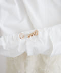 ・程よいゆとり感のオーバーサイズの身頃にゴールドの金具づかいが女性らしさを演出してくれます。