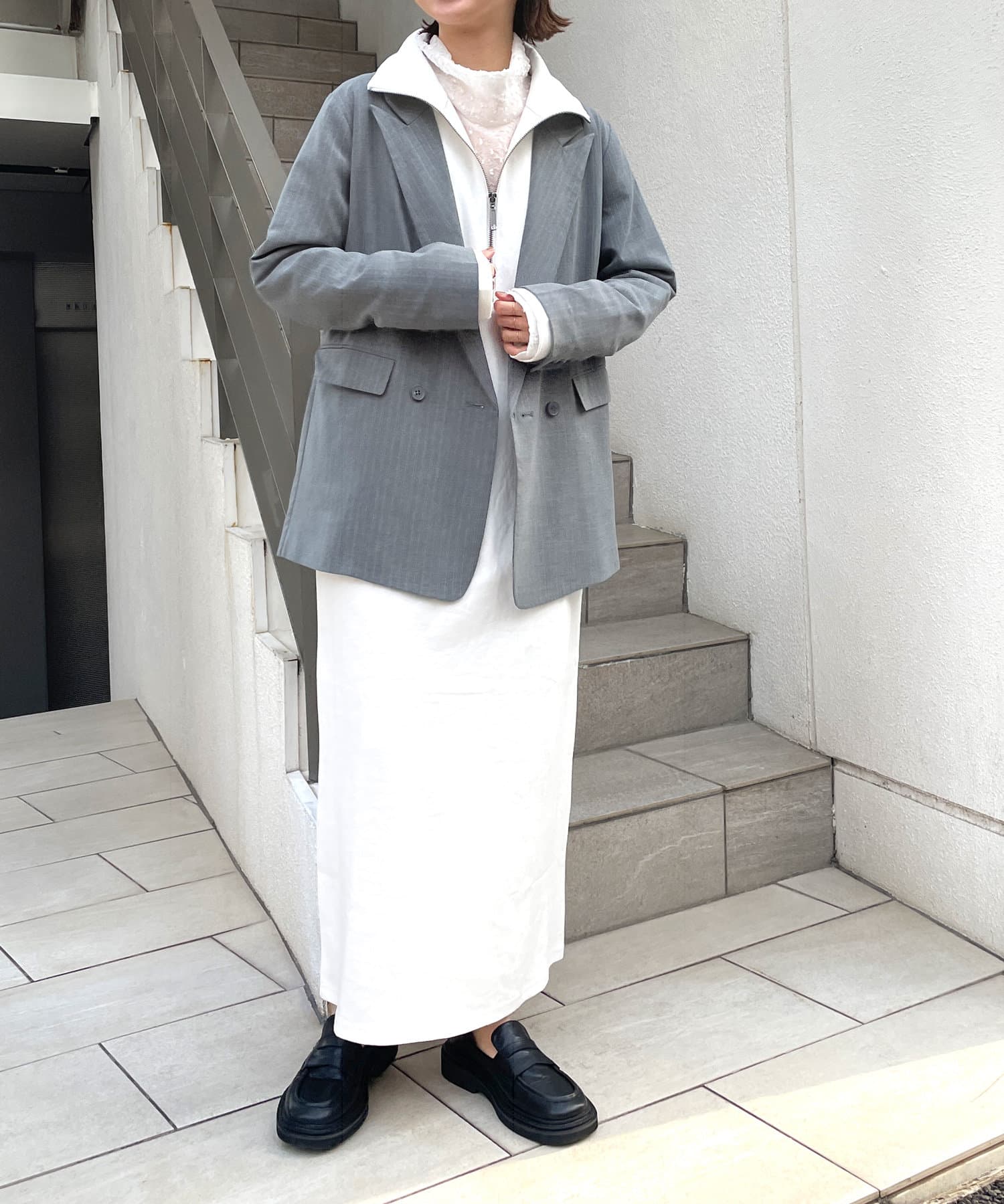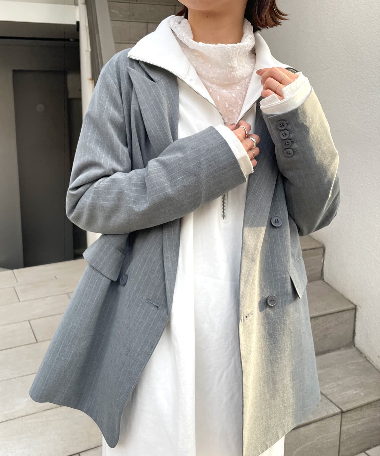 ・1枚でカジュアルに着るのはもちろん、ジャケットとのレイヤードスタイルもおすすめです!